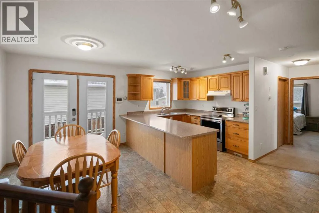 Welcome to this charming 3-bedroom home with a 3 Piece ensuite off the primary bedroom and a full main bathroom. It has an open U-shaped kitchen with a large peninsula that leads into your dining area. The dining room leads out to the deck. Or head down the stairs to the separate living room and spacious entrance. The basement is a clean slate with a laundry and mechanical room. There is a 26 x 24 garage with room to park 4 more units, easily accessible from the paved back alley. An 8 x 8 garden shed in the back yard. There is a playground, ball diamonds and schools nearby. This home blends everyday convenience with long-term potential. A great opportunity to add your personal touches and make it yours. (id:27476)