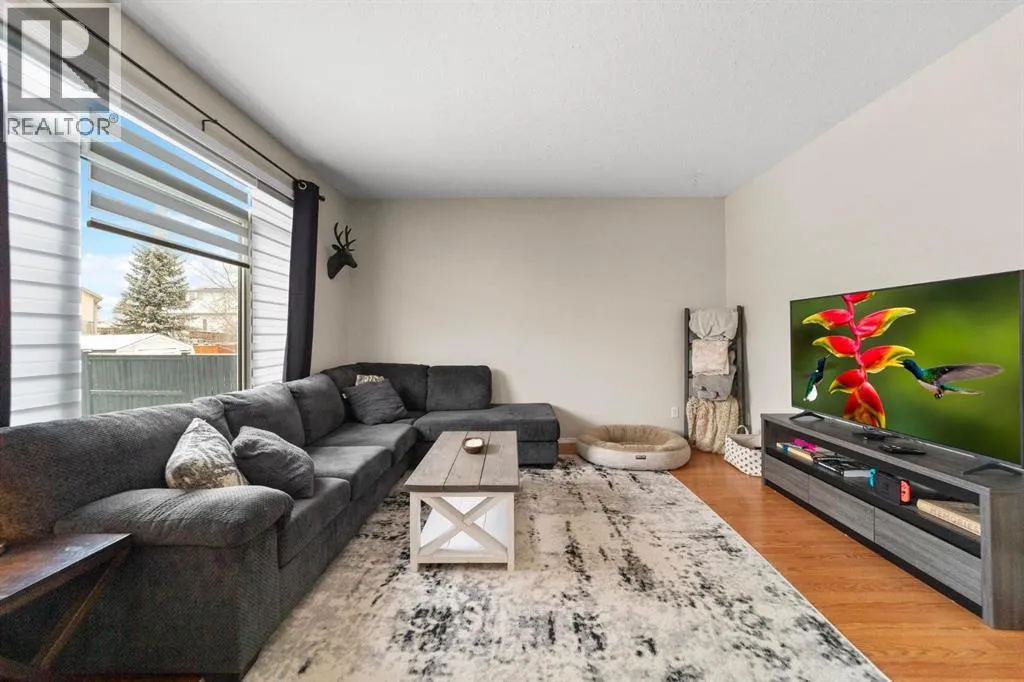 Welcome to this beautiful 2-storey home nestled in the desirable Century Meadows community, close to Jack Stuart School. Designed with an open floor plan and filled with natural light, this home offers both comfort and style. The kitchen is a true centerpiece, featuring a walk-in pantry, a functional island with breakfast bar, and a spacious dining area, while garden doors lead seamlessly to the back deck. The main floor is thoughtfully laid out with a convenient 2-piece bathroom and main floor laundry. Upstairs, the spacious primary bedroom has its own 4-piece ensuite, alongside two additional generously sized bedrooms and another full bathroom. The fully finished basement provides the perfect space to unwind, boasting a large family room with a cozy gas fireplace and an additional 3-piece bathroom. Outside, the fully landscaped backyard with back alley access creates a private outdoor oasis, ideal for relaxing or entertaining. Other features include; Hot water tank-2023, new furnace and A/C, new washer and dryer, new fridge, sink and counter tops in kitchen. (id:27476)