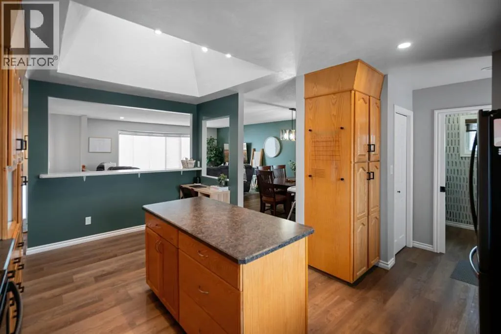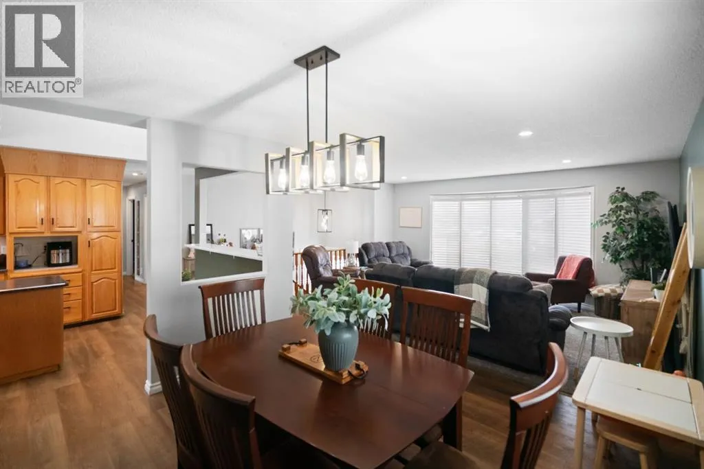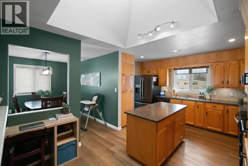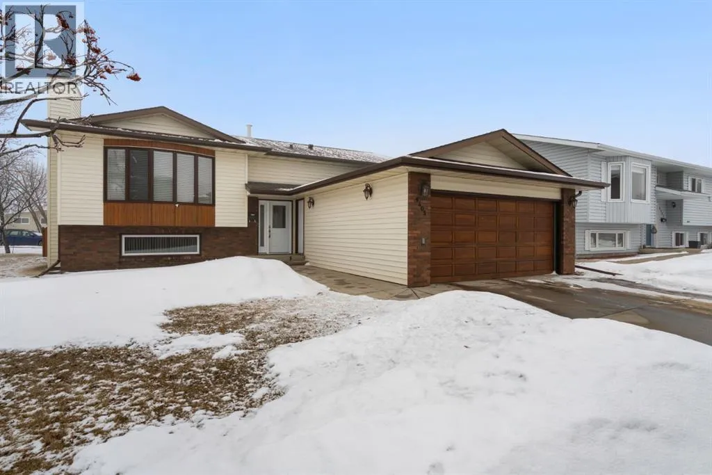 Welcome to this beautifully maintained bi-level home, perfectly situated just steps from the golf course, the Mirror Lake walking trails and close to all the conveniences of west-end amenities. This 1,400 + sq. ft. 3+1 bedroom home features numerous recent upgrades and an inviting, open concept layout. The main floor showcases brand new vinyl plank flooring, a bright and spacious living room with a charming bay window, and a dining areaâideal for entertaining. The kitchen is both functional and stylish, complete with plenty of cabinetry, a large kitchen island and easy access to the new deckâperfect for summer BBQs and relaxing evenings. Convenient main floor laundry adds to the homeâs appeal. The primary bedroom offers custom wardrobe closets and a private 3 pc ensuite. The fully developed basement is filled with natural light from large windows and features a warm and inviting family room with a gorgeous brick fireplace, a generous games area, an additional bedroom, a hobby room with built-in storage, and a utility space. Outside, youâll find an oversized landscaped yardâfully fenced and complete with a deck, alley access, and RV parking potential. The attached double garage provides added convenience. The most recent upgrades include a HWT, Shingles,, Flooring, Paint, Trim, Wall opening in Kitchen, Kitchen island, Phantom Screens, and deck. This home truly offers the perfect blend of comfort, space, and location. A peaceful setting, exceptional features, and a lifestyle youâll loveâthis is one you wonât want to miss. (id:27476)