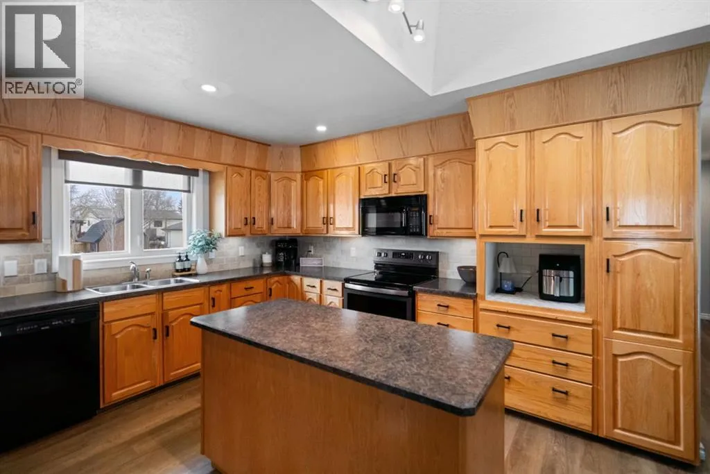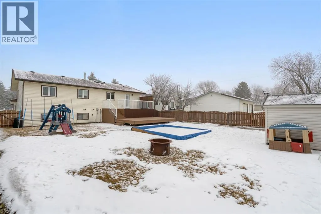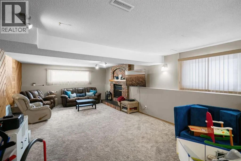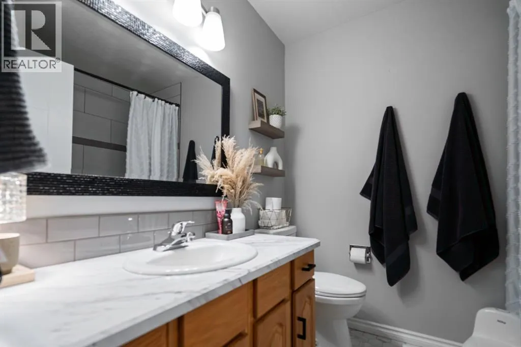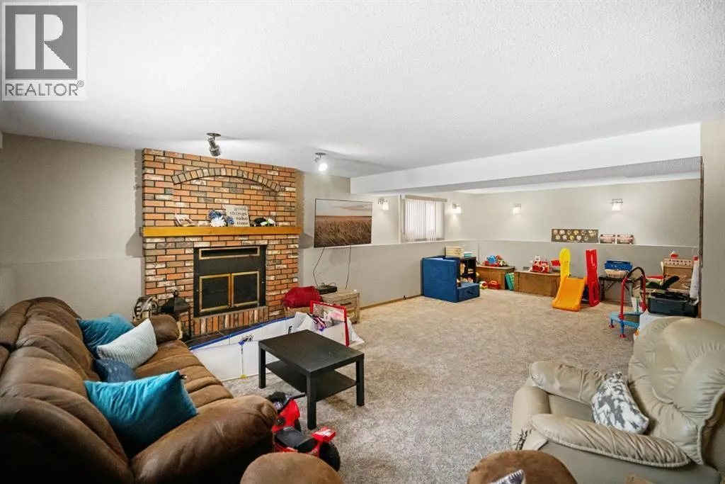 Welcome to this beautifully maintained bi-level home, perfectly situated just steps from the golf course, the Mirror Lake walking trails and close to all the conveniences of west-end amenities. This 1,400 + sq. ft. 3+1 bedroom home features numerous recent upgrades and an inviting, open concept layout. The main floor showcases brand new vinyl plank flooring, a bright and spacious living room with a charming bay window, and a dining areaâideal for entertaining. The kitchen is both functional and stylish, complete with plenty of cabinetry, a large kitchen island and easy access to the new deckâperfect for summer BBQs and relaxing evenings. Convenient main floor laundry adds to the homeâs appeal. The primary bedroom offers custom wardrobe closets and a private 3 pc ensuite. The fully developed basement is filled with natural light from large windows and features a warm and inviting family room with a gorgeous brick fireplace, a generous games area, an additional bedroom, a hobby room with built-in storage, and a utility space. Outside, youâll find an oversized landscaped yardâfully fenced and complete with a deck, alley access, and RV parking potential. The attached double garage provides added convenience. The most recent upgrades include a HWT, Shingles,, Flooring, Paint, Trim, Wall opening in Kitchen, Kitchen island, Phantom Screens, and deck. This home truly offers the perfect blend of comfort, space, and location. A peaceful setting, exceptional features, and a lifestyle youâll loveâthis is one you wonât want to miss. (id:27476)