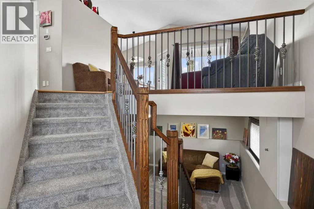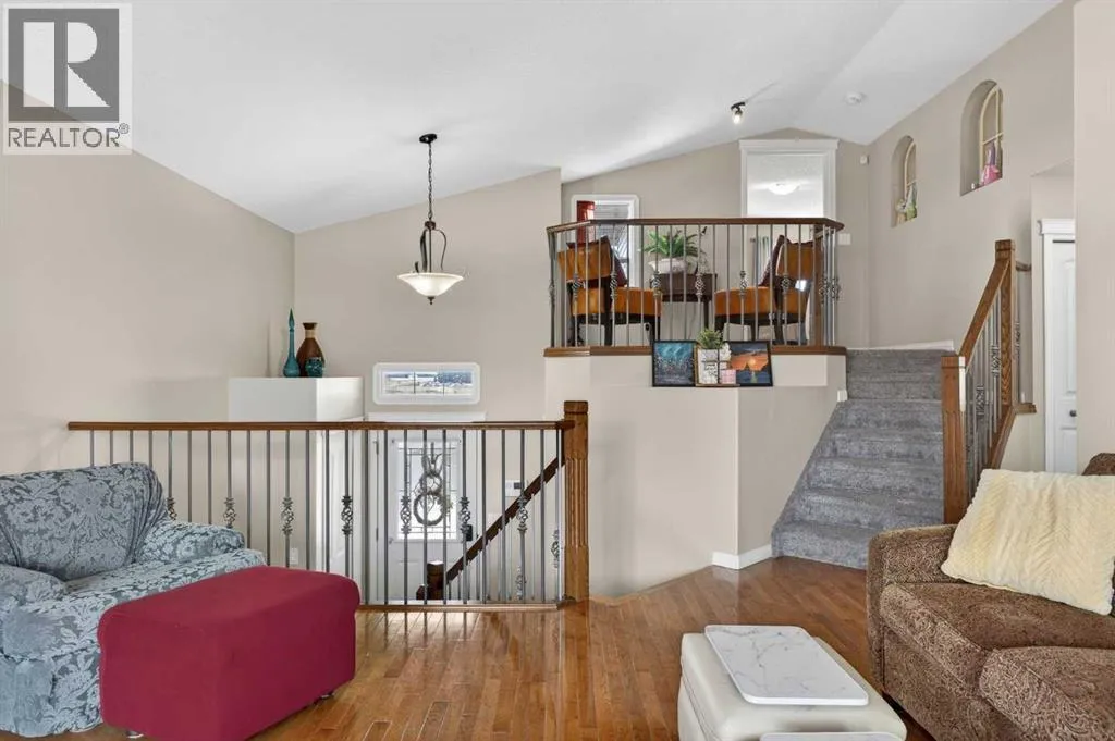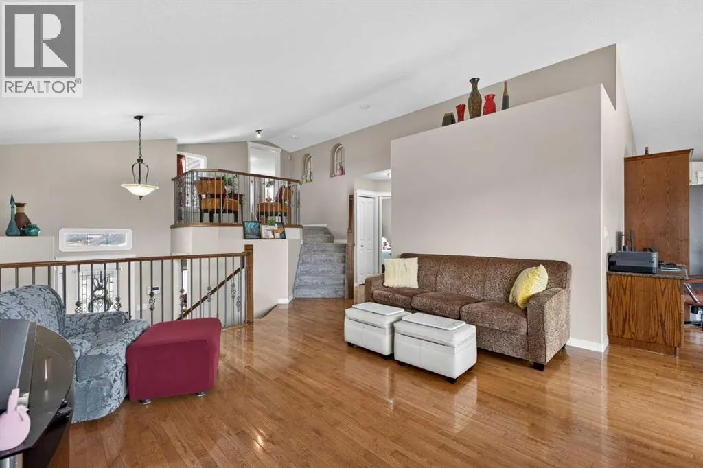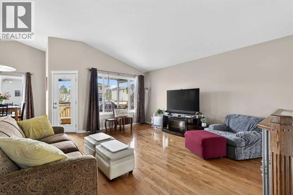 Beautiful Bi-Level in Victoria Park with 4 bedrooms, 3 bathrooms, large pie shaped yard, & RV Parking! This home has been proudly maintained by long term owners and has recently been updated with brand new carpet and fresh paint throughout! You will love the main level with vaulted ceilings, hardwood flooring, & open concept living/dining/kitchen area. Bedrooms 2 & 3 are a nice size and located next to the main floor 4-piece bathroom. Primary bedroom is on the upper loft level with large walk-in closet and 4-piece ensuite (with in floor heat!). Lower level is bright and welcoming with large windows, spacious rec-room, and massive 4th bedroom (flooring and ceiling has not been finished in 4th bedroom) with a beautiful 4-piece ensuite bathroom. Step outside and enjoy the sunny West backyard with covered deck, RV Parking (double gate), & 8x10 storage shed. A convenient double attached garage completes this stunning property. Ideally located within walking distance to Victoria Park. (id:27476)