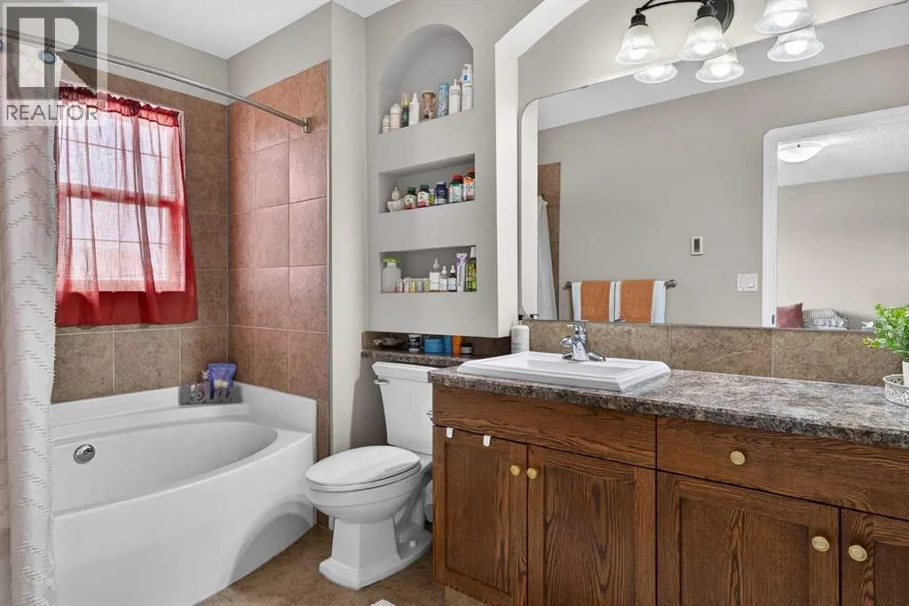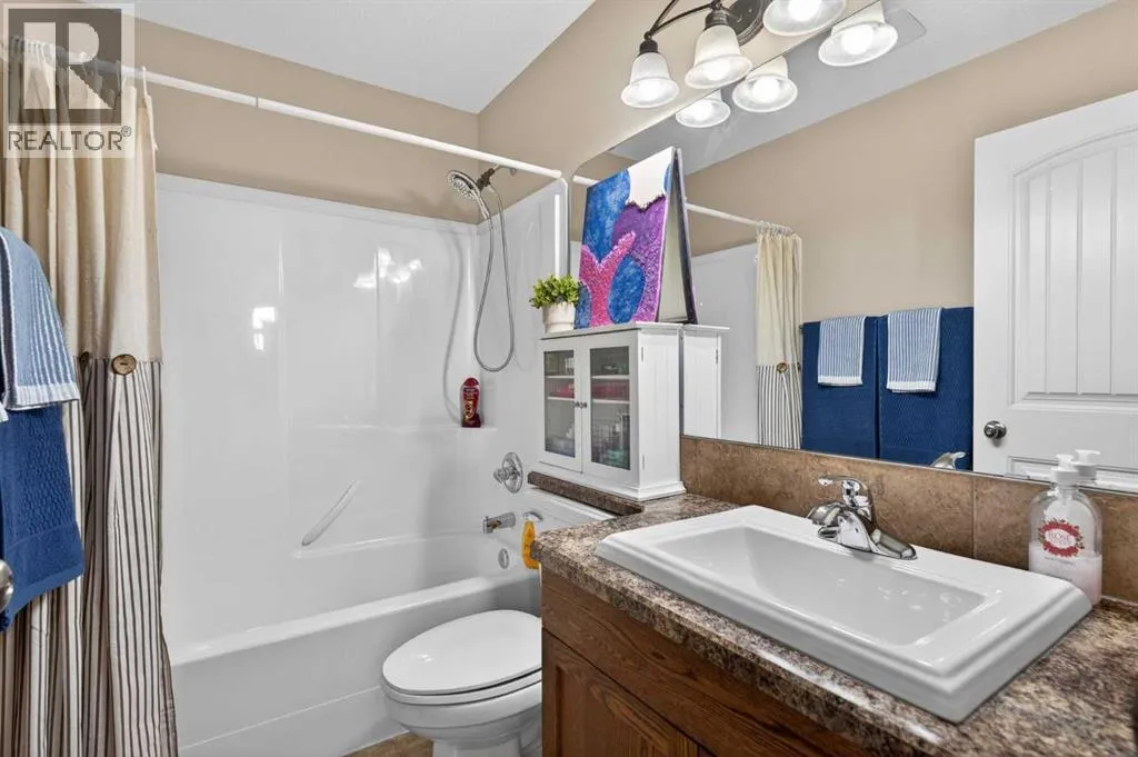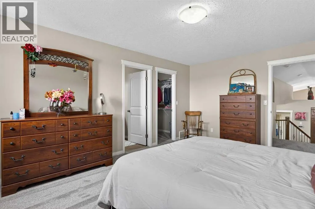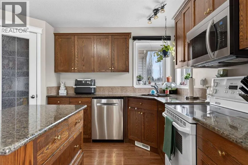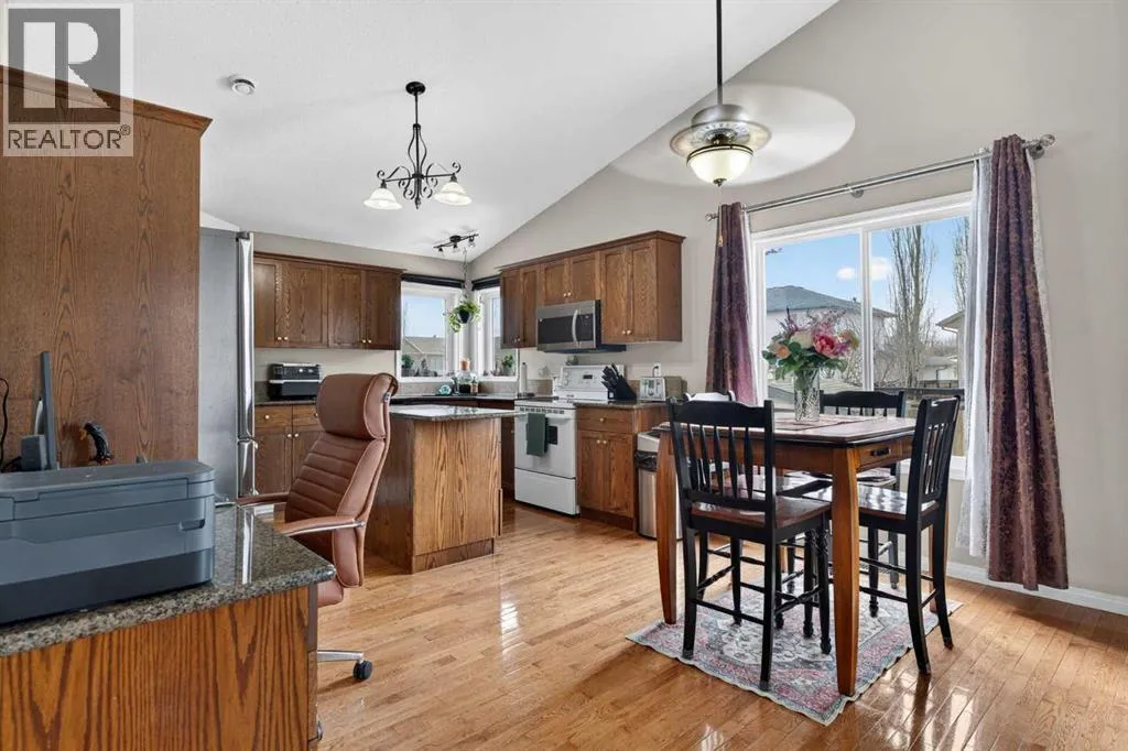Beautiful Bi-Level in Victoria Park with 4 bedrooms, 3 bathrooms, large pie shaped yard, & RV Parking! This home has been proudly maintained by long term owners and has recently been updated with brand new carpet and fresh paint throughout! You will love the main level with vaulted ceilings, hardwood flooring, & open concept living/dining/kitchen area. Bedrooms 2 & 3 are a nice size and located next to the main floor 4-piece bathroom. Primary bedroom is on the upper loft level with large walk-in closet and 4-piece ensuite (with in floor heat!). Lower level is bright and welcoming with large windows, spacious rec-room, and massive 4th bedroom (flooring and ceiling has not been finished in 4th bedroom) with a beautiful 4-piece ensuite bathroom. Step outside and enjoy the sunny West backyard with covered deck, RV Parking (double gate), & 8x10 storage shed. A convenient double attached garage completes this stunning property. Ideally located within walking distance to Victoria Park. (id:27476)