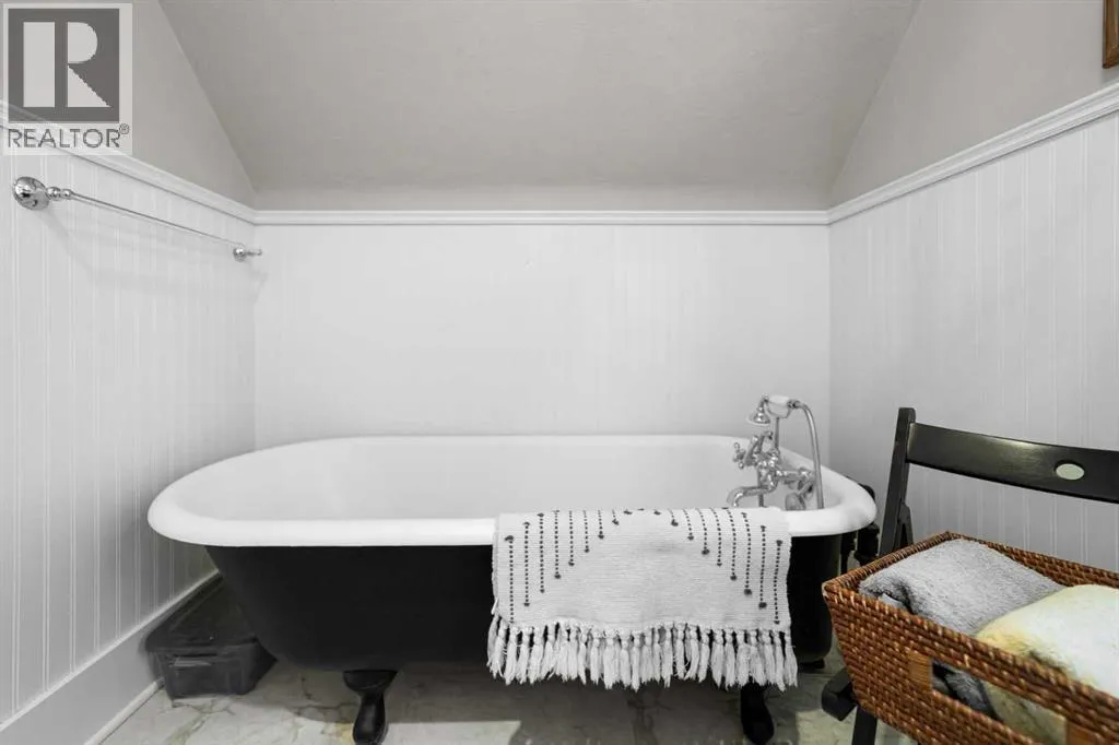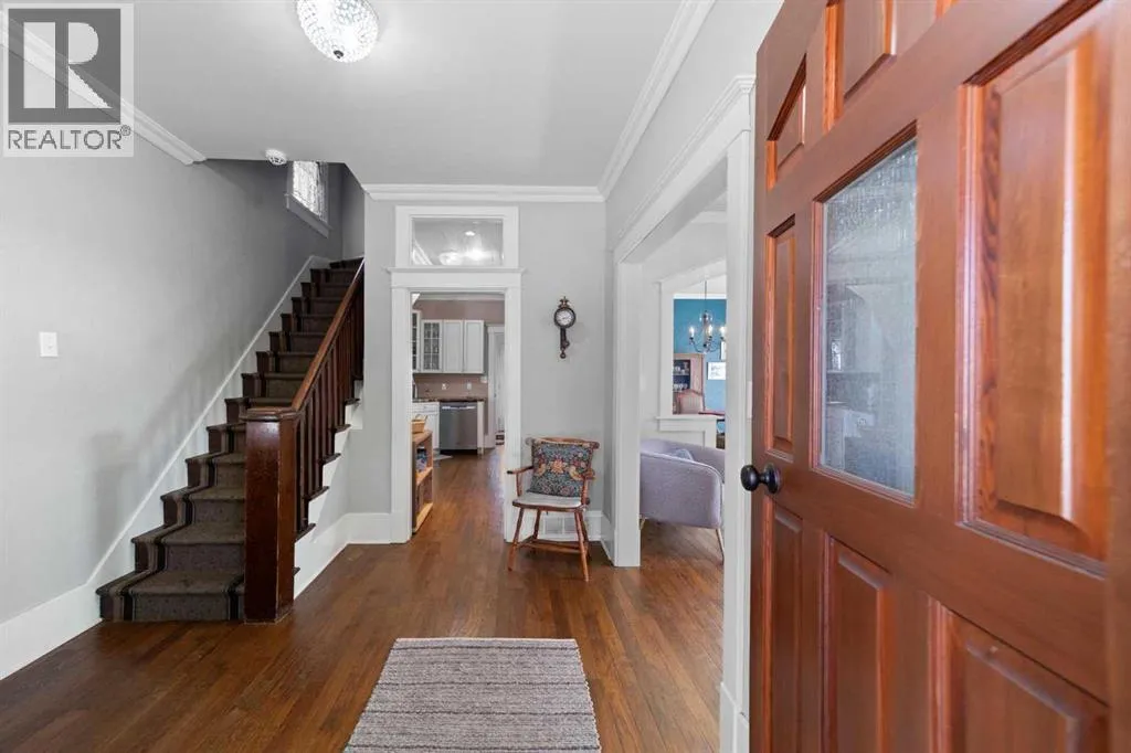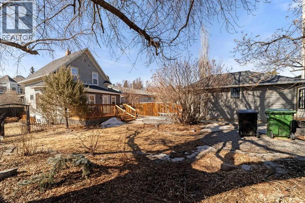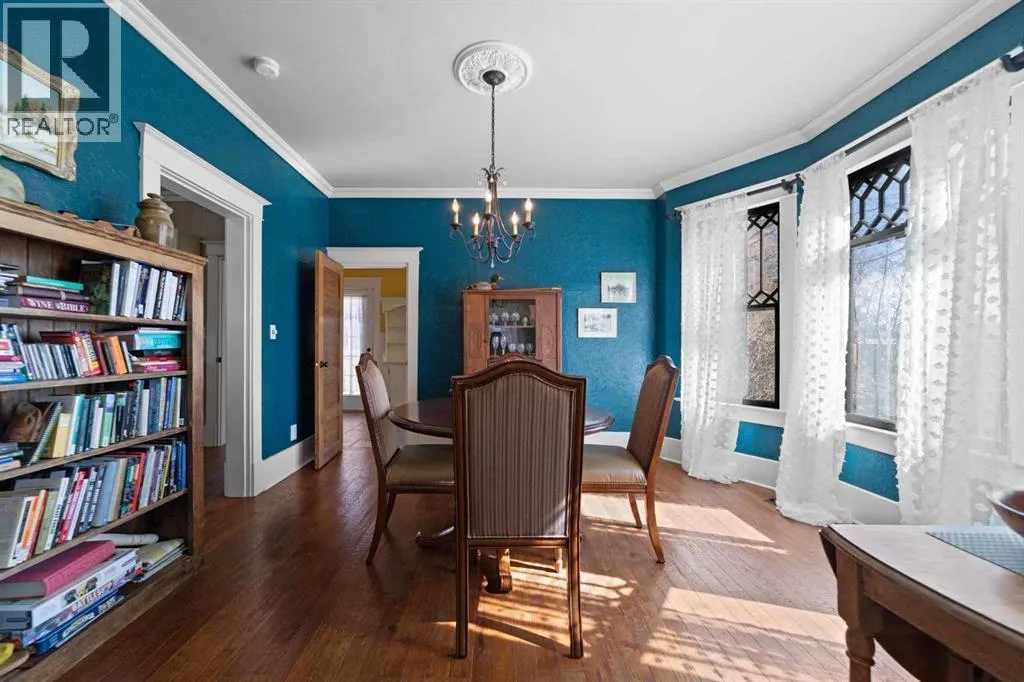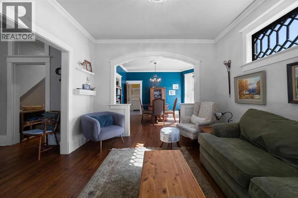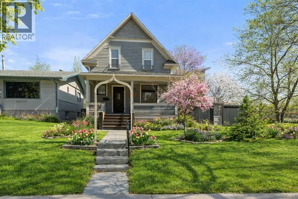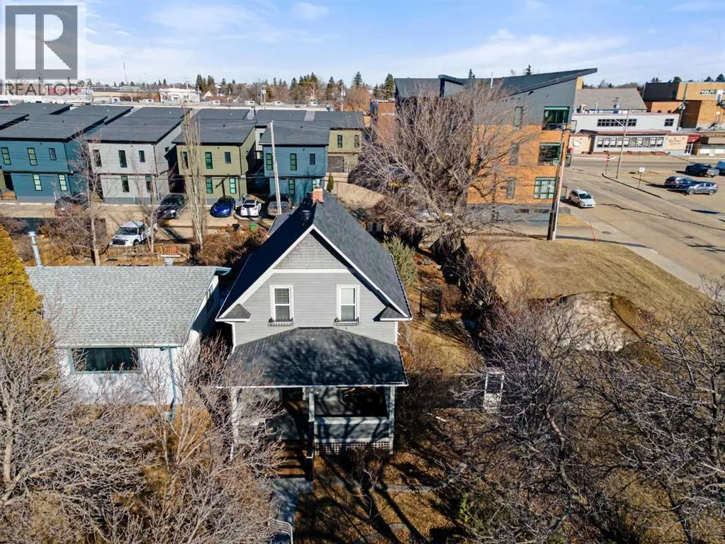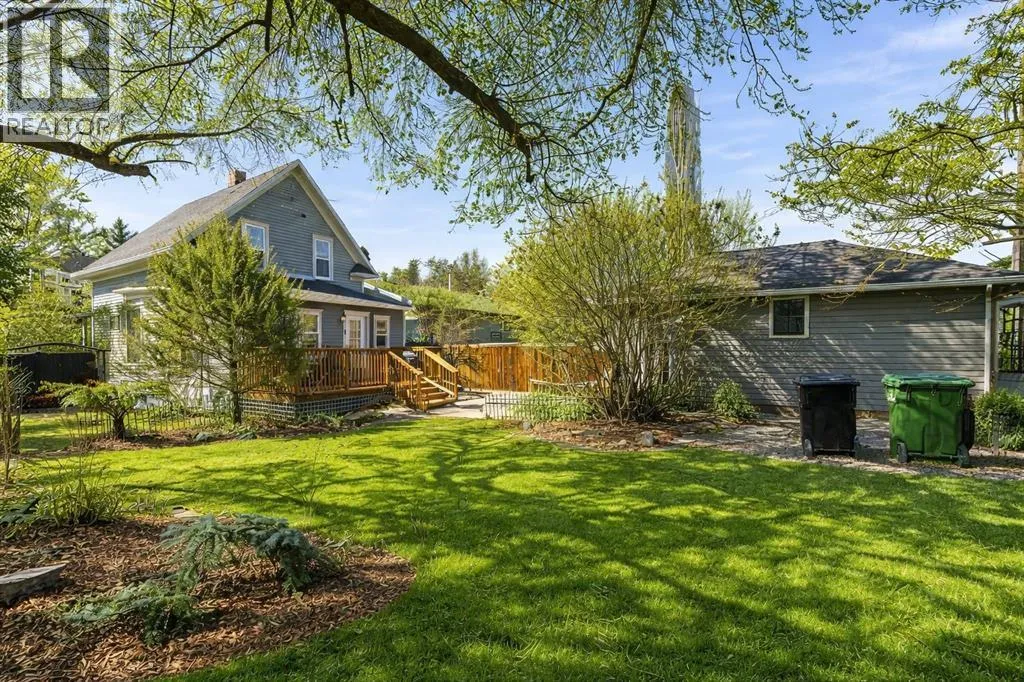 This home tells a story, and it's ready for the next chapter with you! The epitome of grandeur, charm and character, this 1912 two story home in the downtown core of Camrose offers convenience, lifestyle and charisma that is a true rarity. Pride of ownership is evident with outdoor living elevated from every direction - a stately covered front porch, fully fenced and landscaped back yard and deck with new stairs, an aggregate patio, fruit trees, flower gardens, raised beds, lilacs, peonies, roses, a rhubarb patch, flowering shrubs and the canopy of a mature poplar tree. In the glory of summer while in full bloom, it creates a park like setting - your very own secret garden escape. Offering timeless curb appeal with classic architectural details and a warm welcoming neutral pallet, you won't be disappointed as you step inside. Rich hardwood floors, crown moulding, wide doorways and trims, tall ceilings and defined living spaces help keep the authenticity of the era while meshing modern and stylish touches like the crystal fandelier in the living room. The large windows flood the main floor with light, and the bay windows in the formal dining room expand your views while enjoying time around the table. There is a 4 season sunroom at the back of the house, along with an updated 3 piece bath. In the kitchen you will appreciate the updated appliances, new butcher block counters and an idyllic balance of openness and separation. The crafted staircase leads you to the second story where you will find another full bath complete with claw foot tub, 3 bedrooms and a generous landing that creates a flex space. In the basement you will find a wide open canvas to finish to your desire or continue to enjoy as a functional laundry, storage and utility room. The HWT was replaced summer of 2025, the furnace in 2024 and there is even central vac and a water softener installed for extra convenience. The single garage has alley access, and you can stroll across the street for groceri es or access to mirror lake, and downtown shops and services are a mere block away. With rich heritage and a bright future, this solid home was built to last - don't wait to book your viewing today! (id:27476)