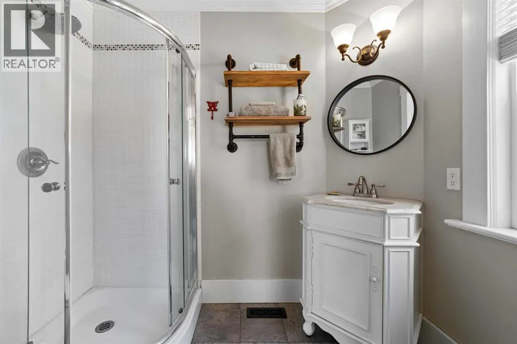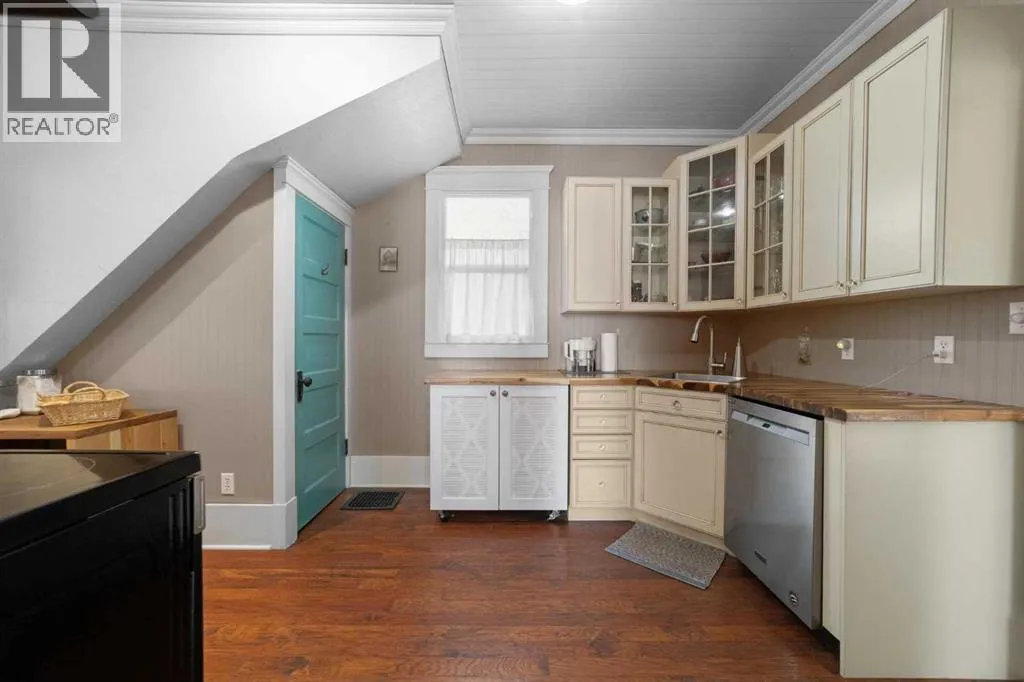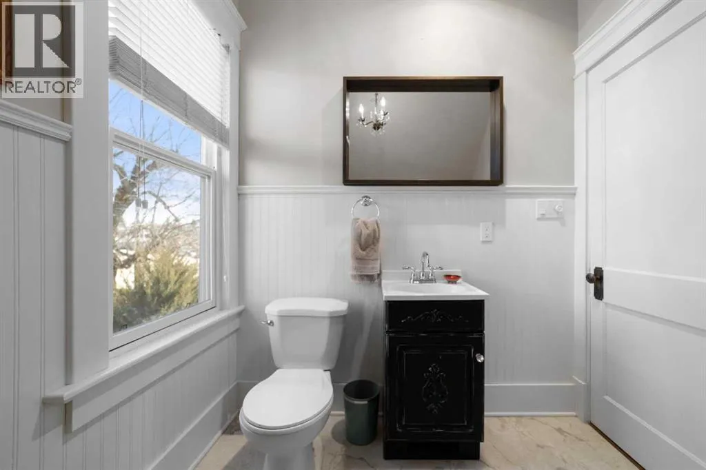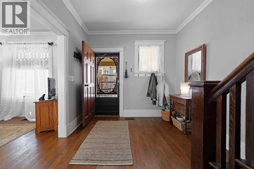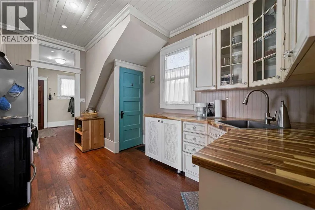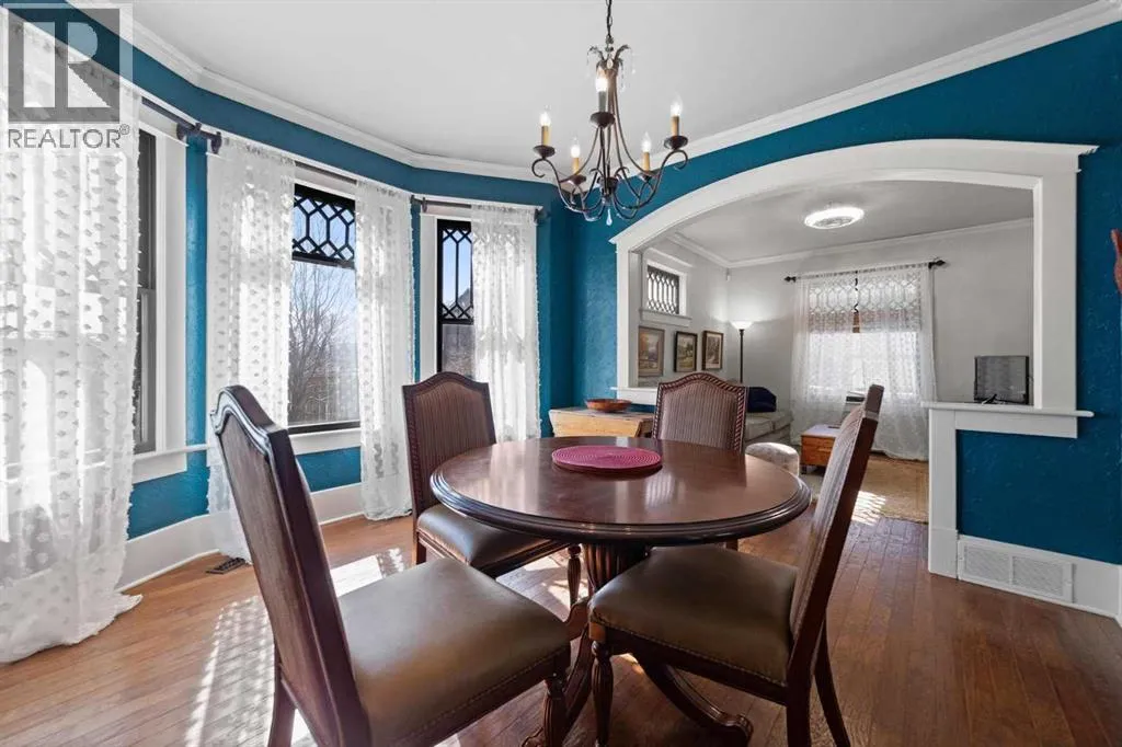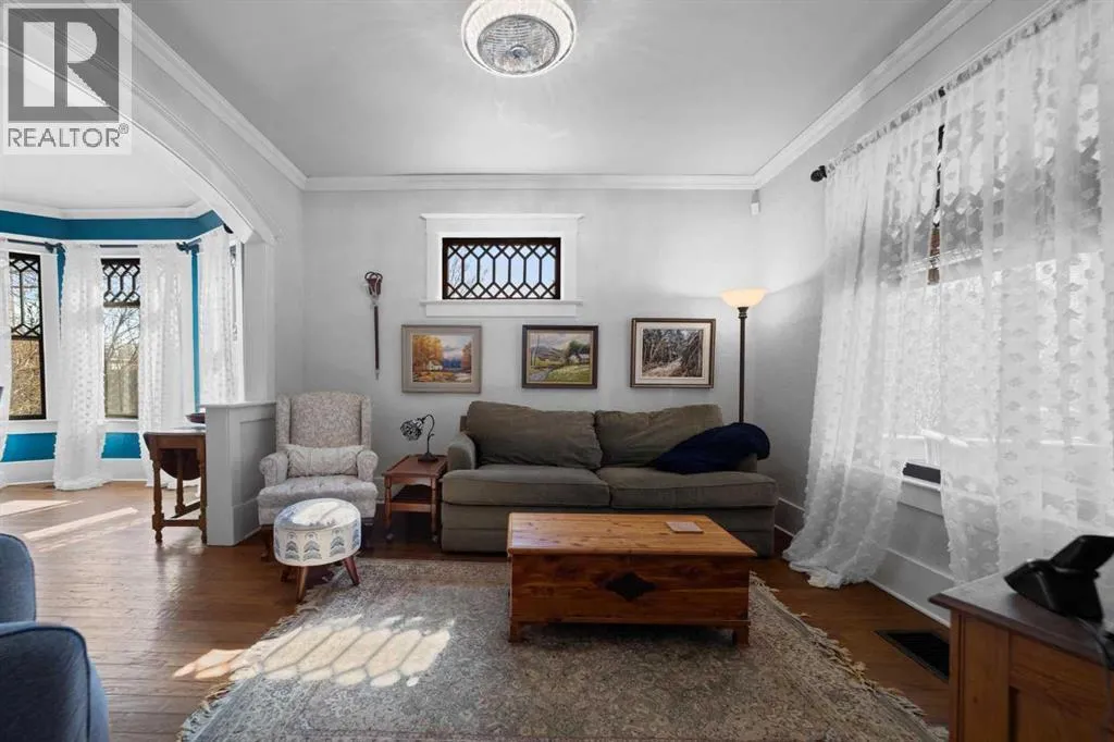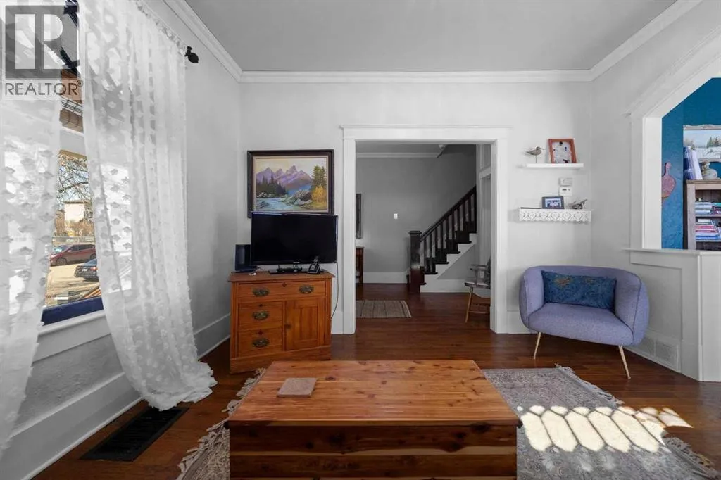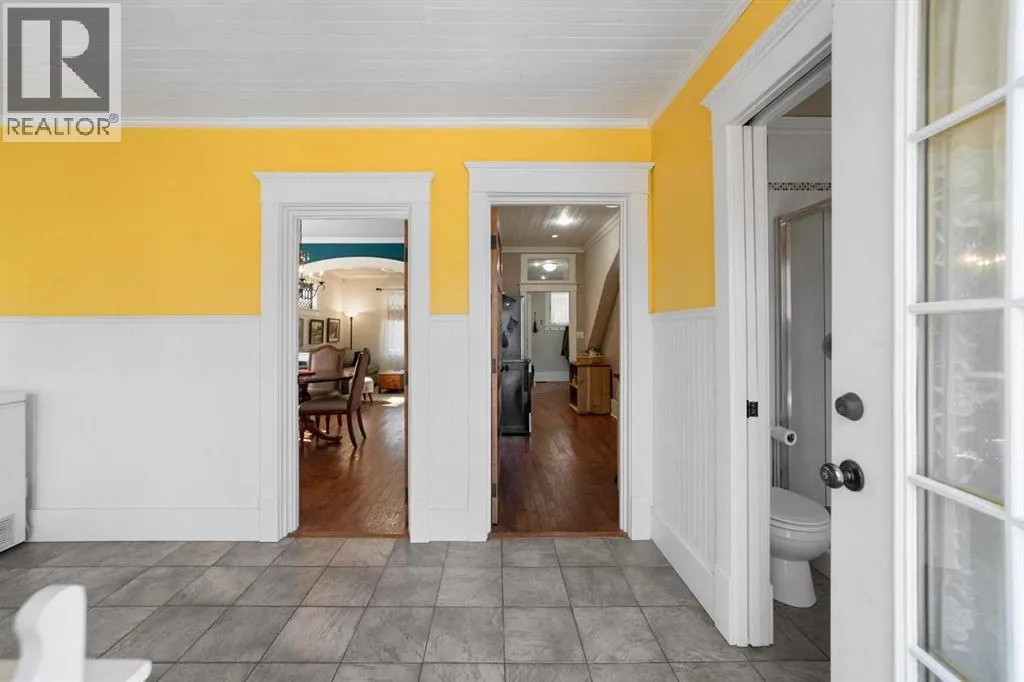 This home tells a story, and it's ready for the next chapter with you! The epitome of grandeur, charm and character, this 1912 two story home in the downtown core of Camrose offers convenience, lifestyle and charisma that is a true rarity. Pride of ownership is evident with outdoor living elevated from every direction - a stately covered front porch, fully fenced and landscaped back yard and deck with new stairs, an aggregate patio, fruit trees, flower gardens, raised beds, lilacs, peonies, roses, a rhubarb patch, flowering shrubs and the canopy of a mature poplar tree. In the glory of summer while in full bloom, it creates a park like setting - your very own secret garden escape. Offering timeless curb appeal with classic architectural details and a warm welcoming neutral pallet, you won't be disappointed as you step inside. Rich hardwood floors, crown moulding, wide doorways and trims, tall ceilings and defined living spaces help keep the authenticity of the era while meshing modern and stylish touches like the crystal fandelier in the living room. The large windows flood the main floor with light, and the bay windows in the formal dining room expand your views while enjoying time around the table. There is a 4 season sunroom at the back of the house, along with an updated 3 piece bath. In the kitchen you will appreciate the updated appliances, new butcher block counters and an idyllic balance of openness and separation. The crafted staircase leads you to the second story where you will find another full bath complete with claw foot tub, 3 bedrooms and a generous landing that creates a flex space. In the basement you will find a wide open canvas to finish to your desire or continue to enjoy as a functional laundry, storage and utility room. The HWT was replaced summer of 2025, the furnace in 2024 and there is even central vac and a water softener installed for extra convenience. The single garage has alley access, and you can stroll across the street for groceri es or access to mirror lake, and downtown shops and services are a mere block away. With rich heritage and a bright future, this solid home was built to last - don't wait to book your viewing today! (id:27476)