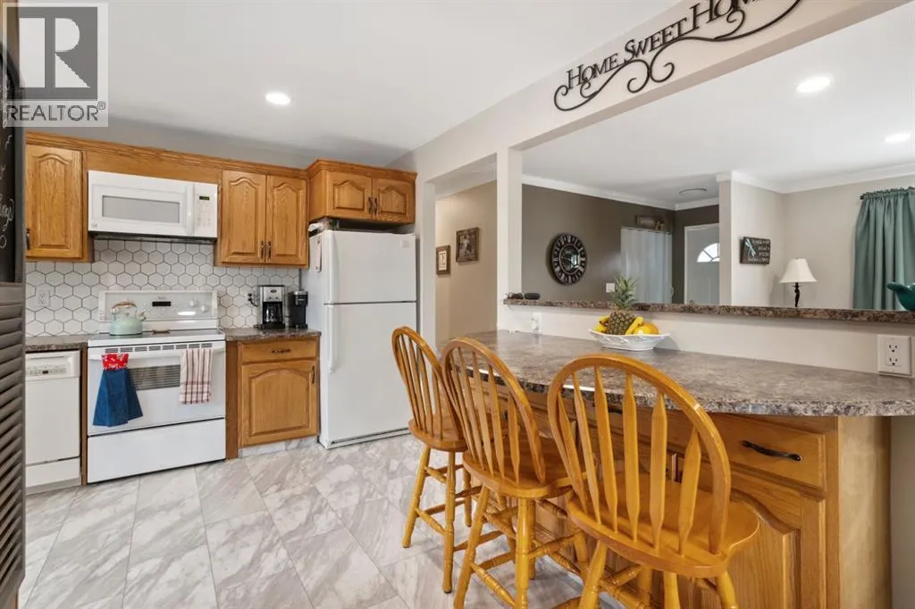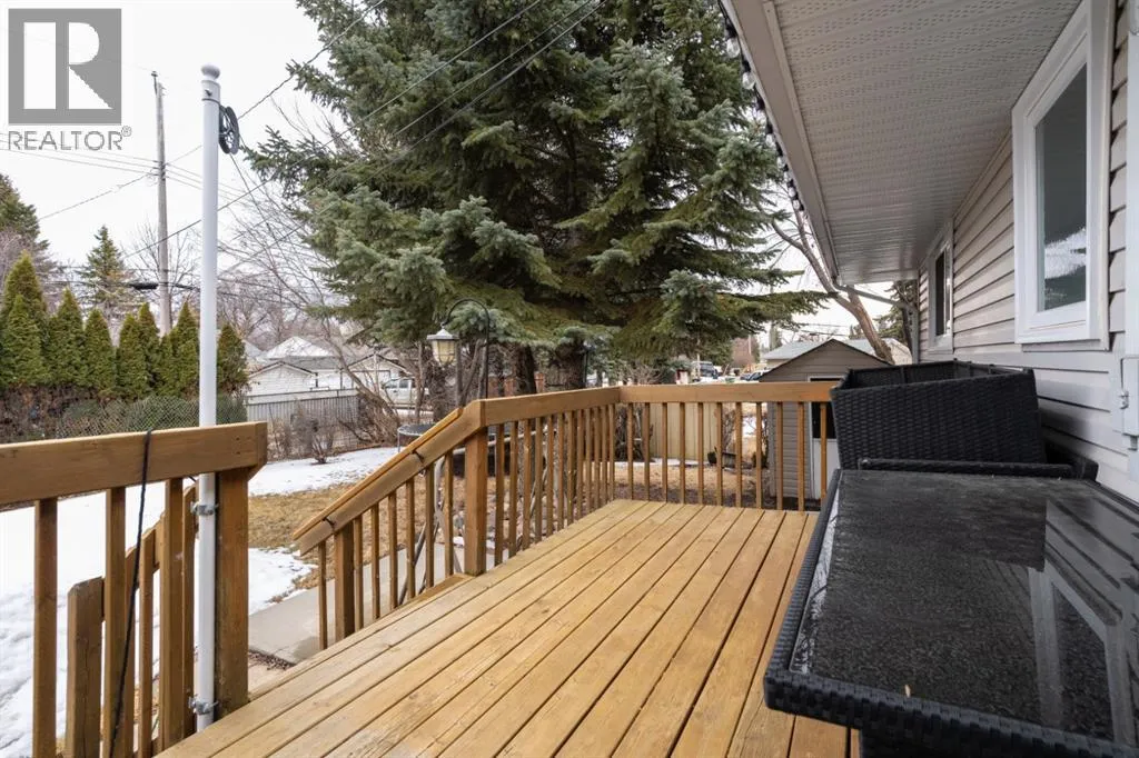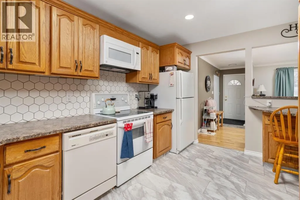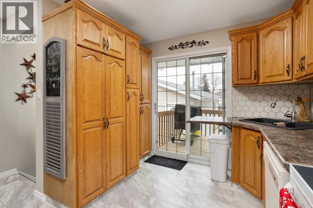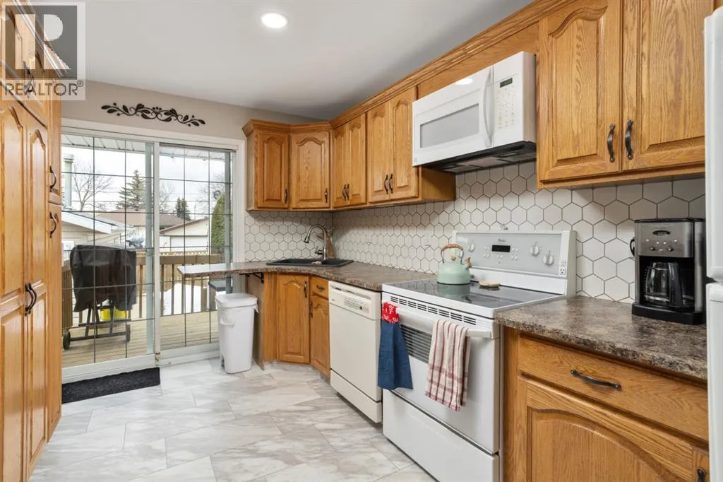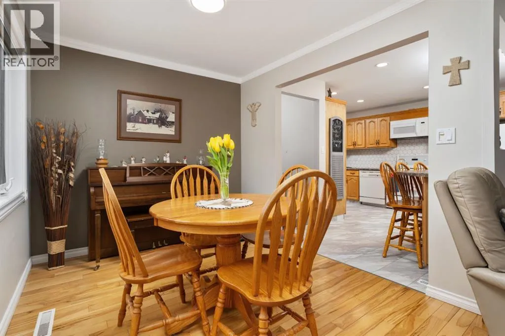 Welcome to 23 Montjoy Ave - where the comforts of home match perfectly with wonderful updates throughout. This 5 bedroom home sits quietly on a tree lined street and is walking distance to 3 schools and recreational areas. Beautiful main floor presentation with a bright and open feeling featuring hardwood floors, triple pane vinyl windows, AC, crown mouldings and a layout you'll love. 3 good sized bedrooms up and a fully updated 4pc bathroom that sees a new tub, tile surround and vinyl tile flooring. Incredible kitchen was redesigned to allow optimal use with beautiful oak cabinetry, vinyl tile flooring, tile splash, an upright pantry and a handy island nook that provides storage/counter space and additional seating. Basement comes fully finished with a 2 bedrooms, an updated 3pc bath, laundry area and a huge living room with enough room for ping pong and a tv area. Outside you'll appreciate the larger 24x28 heated garage with newer siding and built-in cabinetry plus a long driveway that can provide some RV parking as needed. A private yard awaits with a raised 8x15 deck, a concrete patio and a small shed for your convenience. At this size and with these options - this is a family home you can easily see yourself grow into. (id:27476)