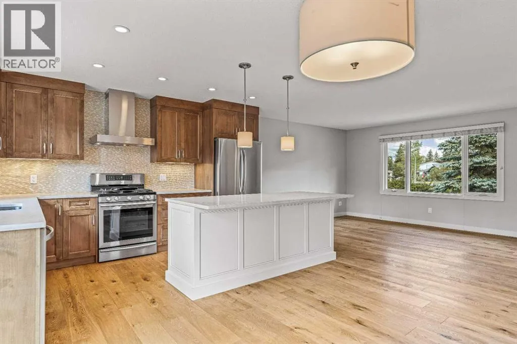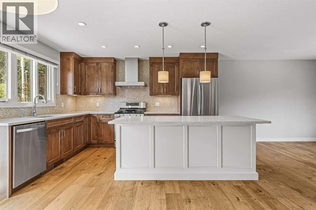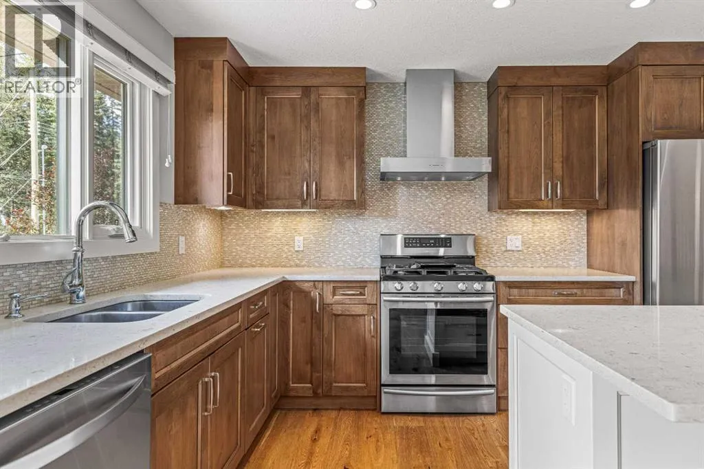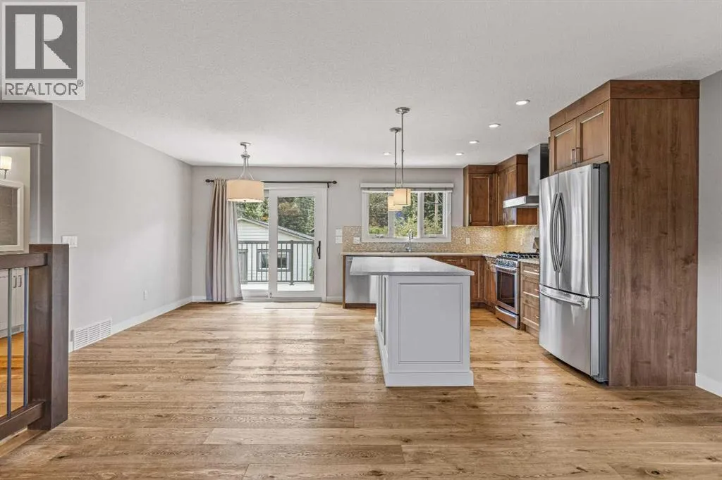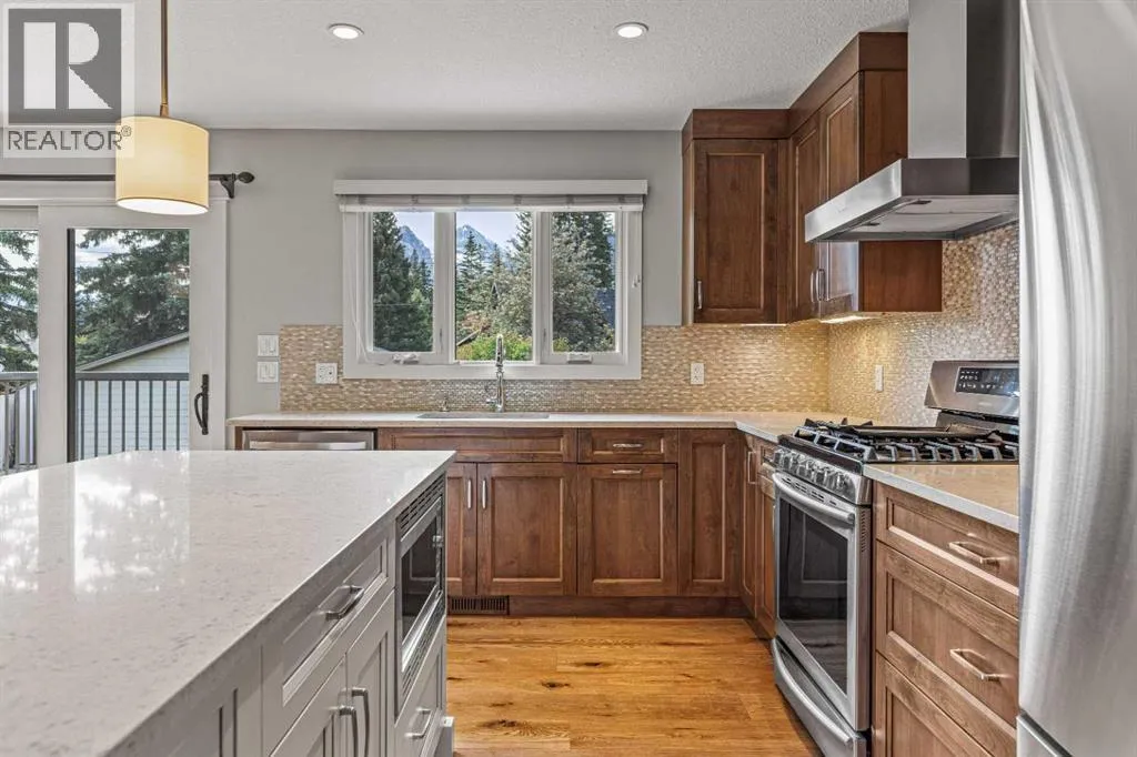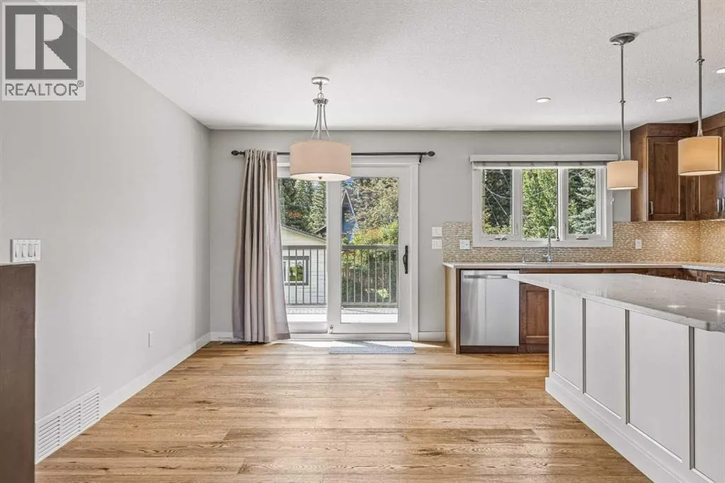 This is a rare opportunity to own your special piece of paradise in Lions Park! Located a few short blocks from downtown Canmore â this centrally located, professionally designed stunning 1,902 square feet split-level bungalow has been completely renovated inside and out with beautiful finishes and numerous upgrades â a lovingly maintained home that is move-in ready! Situated on an oversized pie-shaped lot offering over 8300 square feet, this property provides plenty of space to make the most of its beautifully landscaped and fenced south-facing backyard. A split-level deck and the gardenâs flowers and foliage that change with the seasons create your private backyard oasis that is perfect for quiet times or entertaining. This tranquil spot with fantastic mountain views is backing onto forest, extensive trail systems and is just steps away from the Bow River and an historic Canmore landmark â the âEngine Bridgeâ. Inside you will find an open-space floor plan, three bedrooms, two full bathrooms, a large family room, a cozy fireplace, laundry and storage areas. Donât forget the cute garden shed, and finished over-sized garage complete with shelving for all your storage needs along with a nice workshop space. (id:27476)