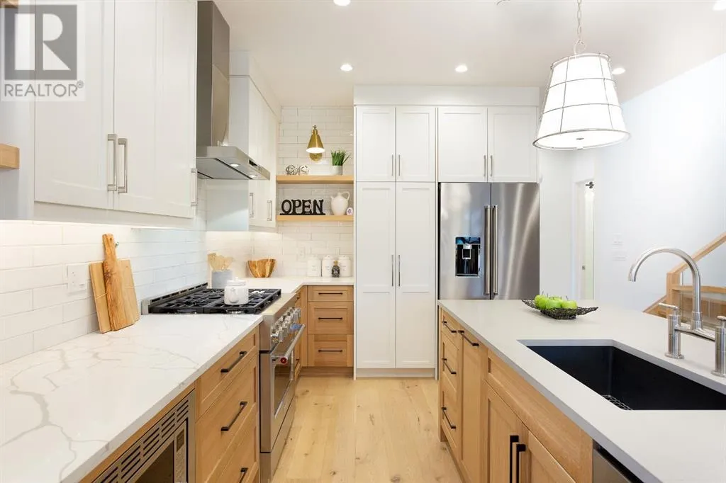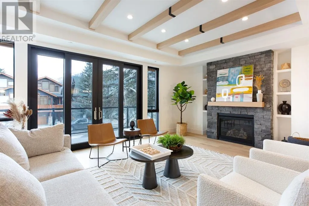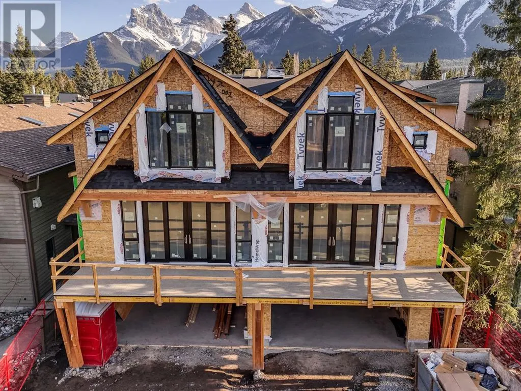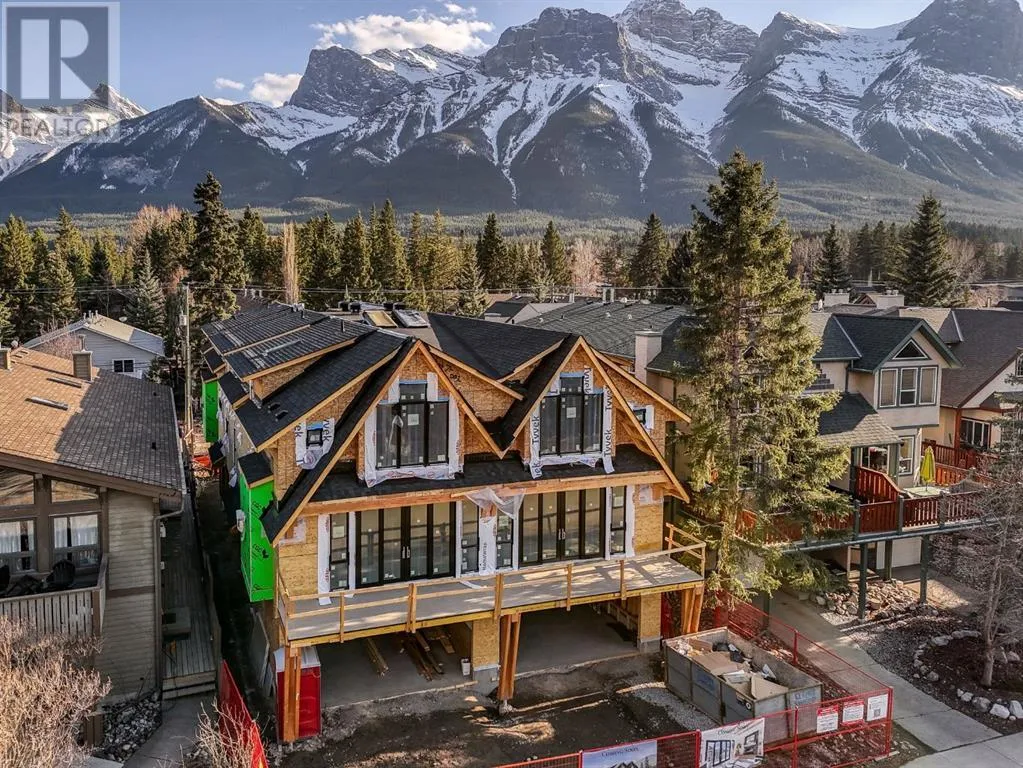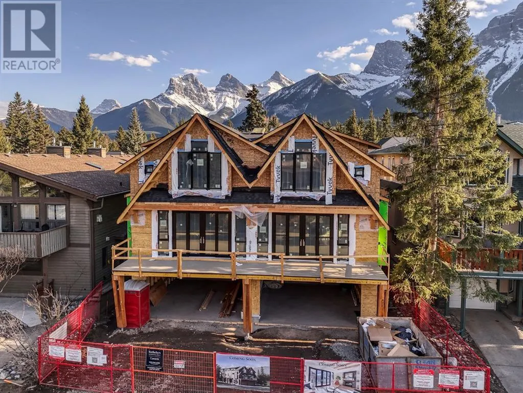 One of the largest four bedroom townhomes to ever be offered in South Canmore. This new construction sophisticated townhome encompasses timeless design, best-in-class construction quality, and the pursuit of excellence with the customer experience are all values the developer holds in the highest regard. With over 2,400 sqft of living space, a double car garage, and spectacular views of Mount Lady MacDonald, the Fairholm and Rundle Ranges; Sticks and Stones Custom Homes proudly presents its latest development in South Canmore. The spacious primary bedroom is on the upper level with an elegant ensuite bathroom, walkin closet and reading nook. Each of the additional bedrooms has its own ensuite bathroom. Stepping in from the spacious garage, you have a spacious mud room. Features such as ICF walls between the units, EV rough in, AC rough in, wood cabinetry, hardwood floors, triple pane low E argon windows, double opening patio door and appliances create a timeless mountain retreat. Ideally located in the heart of Canmore, this mountain home is mere blocks to Main Street with shops, restaurants and cafes and just steps to the Bow River pathway. An ideal lock and leave low maintenance condominium property where you can spend time exploring and enjoying life in the Rockies. *Images are from the developer's previous project at 833 6th Street (id:27476)