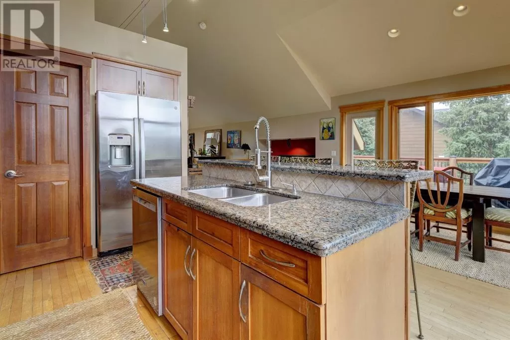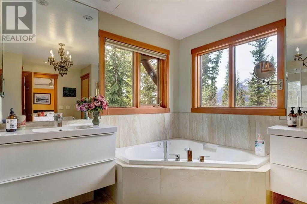 A unique property with income potential and panoramic views. Welcome to this exceptional residence on sought-after Miskow Closeâan exquisite blend of mountain elegance, functionality and privacy. This thoughtfully designed 5-bedroom, 6-bathroom home includes amazing rental potential and an expansive outdoor space that captures panoramic mountain views from all sides. The top floor offers a open-concept kitchen, dining and living space that invites both relaxation and entertaining. A striking wall of windows frames the natural beauty outside, while the cozy fireplace adds warmth and charm. Over the garage sits a self contained 1-bedroom suite, complete with separate access and plenty of storage. It can easily be incorporated into the main home for more living space or a home office. The main home offers 3 spacious bedrooms, each with its own ensuite and a large space in the lower level ideal as a media room or gym. The lower level also offers another 1-bedroom suite with its own access and full kitchen, which can be rented separately used as part of the main home, ideal for a growing family or guests. Set on a generous 11,443 sqft lot backing onto serene green space, this home also boasts a large garage, spacious laundry/mud room and ample storage throughout. Rich in architectural detail the home is designed to embrace the mountain lifestyle. All of this, just steps from scenic hiking and biking trails. (id:27476)