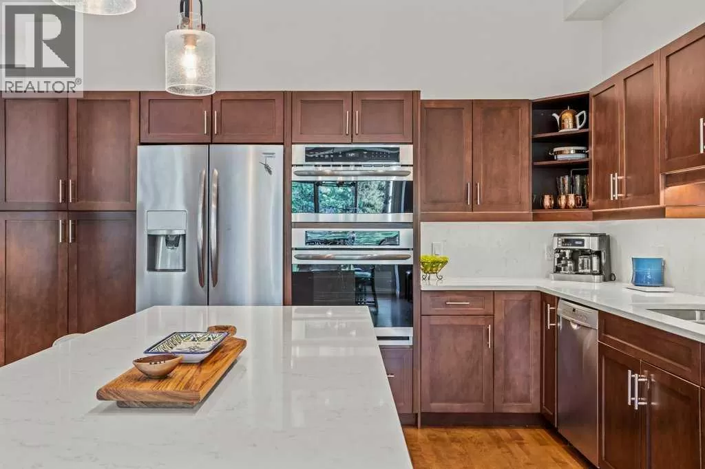 Nestled in a quiet, serene setting and backing directly onto lush green space, this beautifully maintained 3154 square foot home offers exceptional privacy and a natural backdrop. Featuring 3 spacious bedrooms plus a dedicated home office, itâs well-suited for both families and professionals. The renovated gourmet kitchen is a chefâs delight, featuring quartz countertops, a stylish backsplash, high-end finishes, and plenty of space for cooking and entertaining. Enjoy a sun-filled, south-facing backyard with a thoughtfully designed perennial gardenâlovingly maintained and just steps off the lower-level family room and patio. Inside, the inviting living room features a striking stone fireplace, while the walk-out lower-level family roomâalso with a stone fireplaceâprovides additional living space and easy access to the outdoors. A double car garage completes this comfortable and stylish home, perfectly blending functionality with warmth in a peaceful, nature-rich setting. (id:27476)