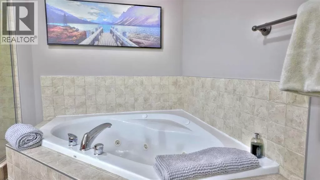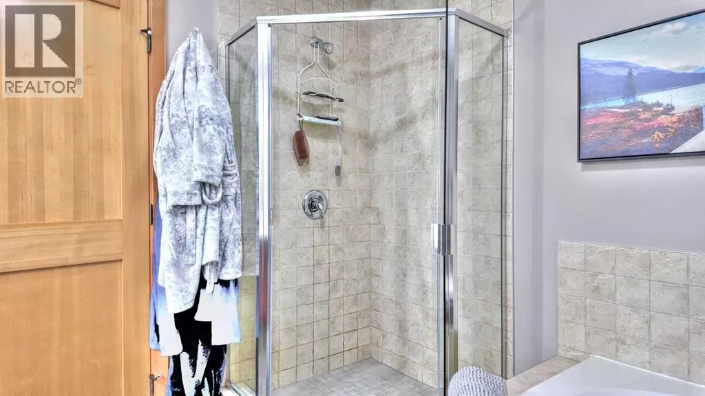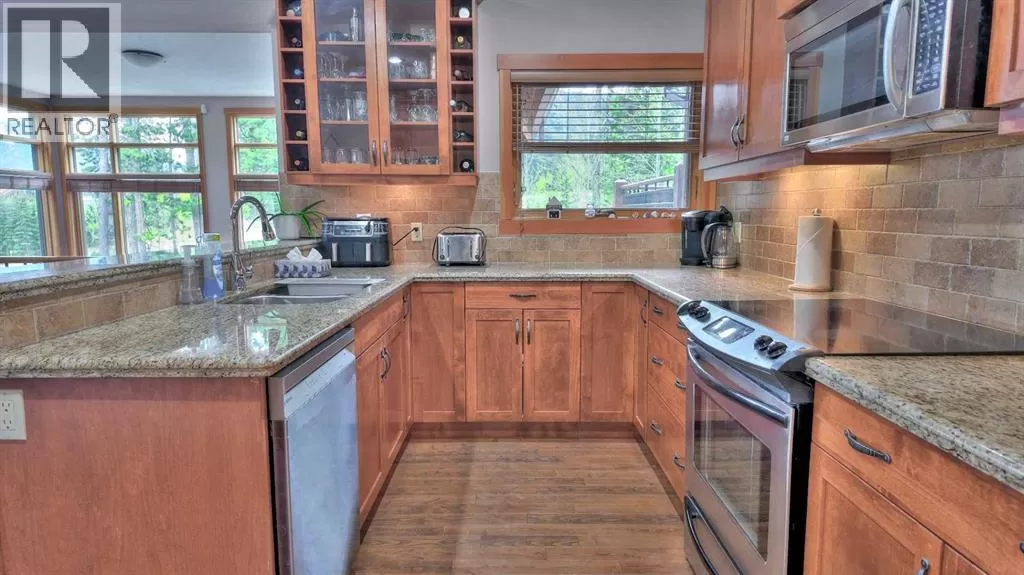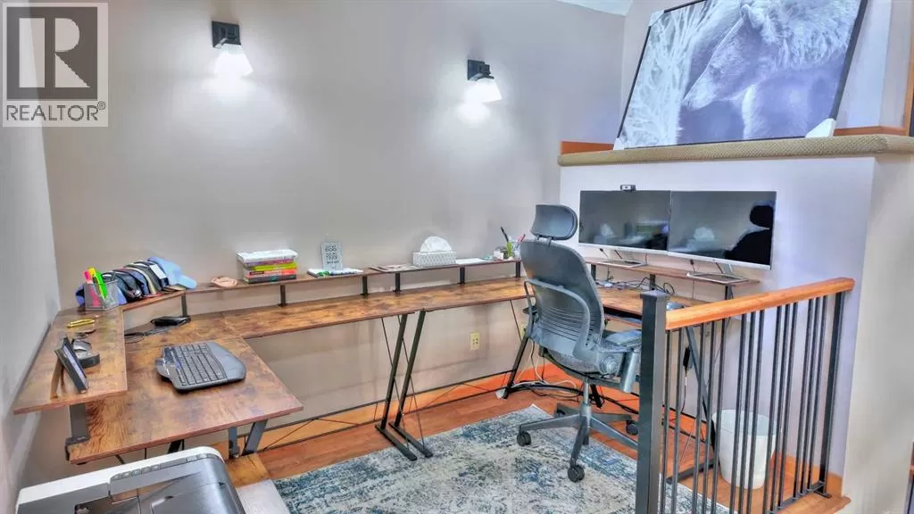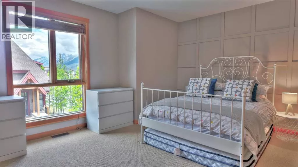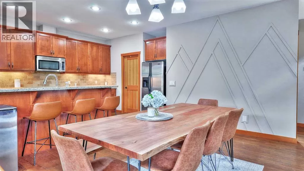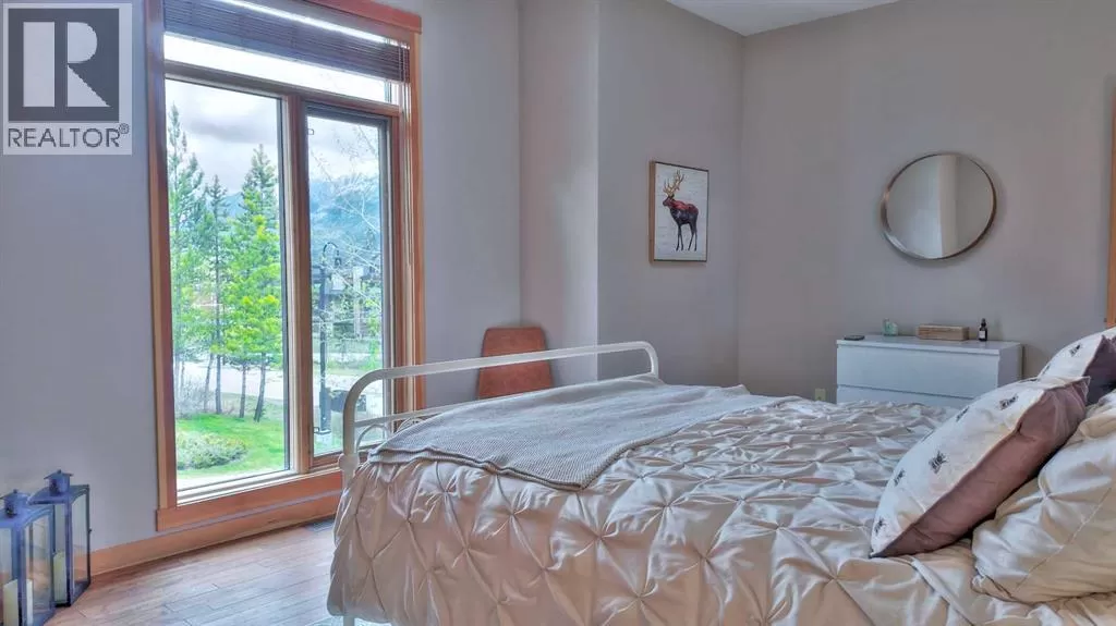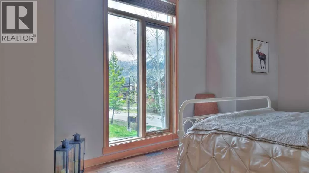Quick Possession now possible! Welcome to this exceptional multi-level townhome located in a quiet, forest-lined pocket of Canmore, just minutes from Stewart Creek Golf Course. This large 3 bed + den townhouse (This property is upgradable to 4 bedrooms via a different window hinge for the den) totals 2816sqft and is perfectly positioned for both privacy and views, this beautifully maintained home blends warm mountain charm with thoughtful modern upgradesâoffering the ideal base for full-time living or a weekend escape.Step inside to an inviting and highly practical open-concept main floor where rich hardwood flooring and massive windows set the tone. Natural light pours into the living space, where a striking stone-clad natural gas fireplace serves as a cozy focal point for evenings with family or friends. The dining area comfortably fits a large table and opens onto a well-equipped kitchen with granite countertops, stainless steel appliances, and ample cabinetry for storage.Three generous bedrooms plus a separate large den offer comfort and privacy, complemented by three and a half well-appointed bathrooms. The large windows continue throughout, capturing views of surrounding trees and mountain peaks. The lower-level walkout is an ideal flex spaceâperfect as a media room, guest quarters, or a quiet home office retreat.Enjoy outdoor living with both a sun-soaked balcony off the main level and a private, treed patio from the lower level. Bonus features include central A/C for summer comfort, and a spacious double garage (plus 2 more on driveway) complete with built-in storage cabinets and a handy storage nook for gear or a work bench.With easy access to trails, Nordic Centre, and downtown Canmore, this home delivers the mountain lifestyle youâve been waiting forâquiet, scenic, and stylish home. (id:27476)