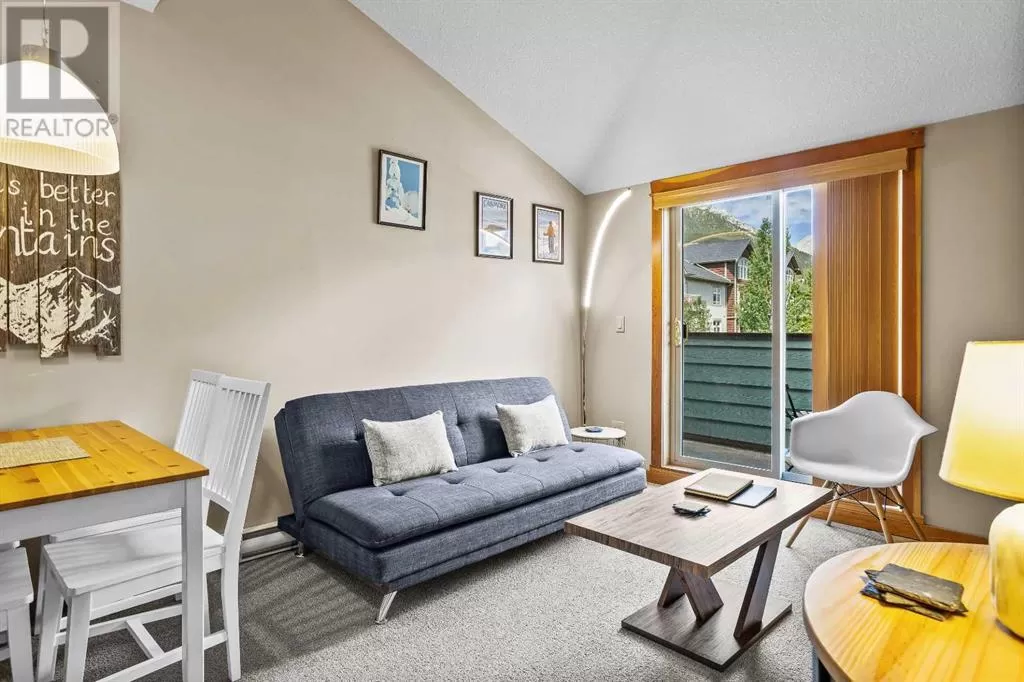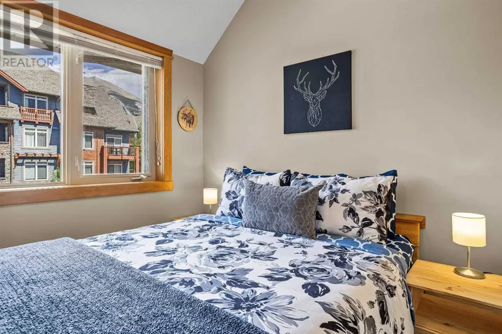 TOP FLOOR | $85K COMBINED RENTAL INCOME | Zoned for Nightly RentalsThis fully furnished 2-bed, 2-bath condo in The Lodges at Canmore offers exceptional short-term rental potential, generating $85,000 last year through Airbnb, personal, and corporate rentals. Located on the top floor, this two-level unit features an open-concept layout, gas fireplace, large windows, and a private deck with stunning Lady MacDonald views. Upstairs, enjoy a private primary suite with ensuite.Amenities include a year-round heated pool, 3 hot tubs, fitness center, heated underground parking, and secure elevator access. Just a short walk to downtown, this property is ideal as a personal getaway or high-performing rental investment. Whether youâre seeking a full-time residence, weekend retreat, or income property, this unit ticks all the boxes.All furniture is included in the sale. (id:27476)