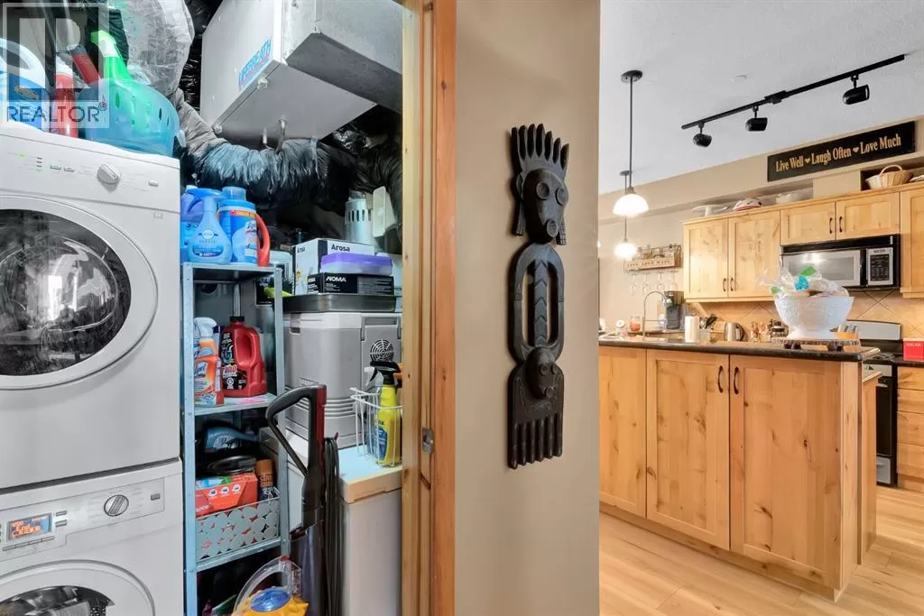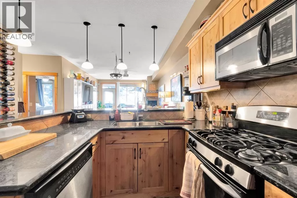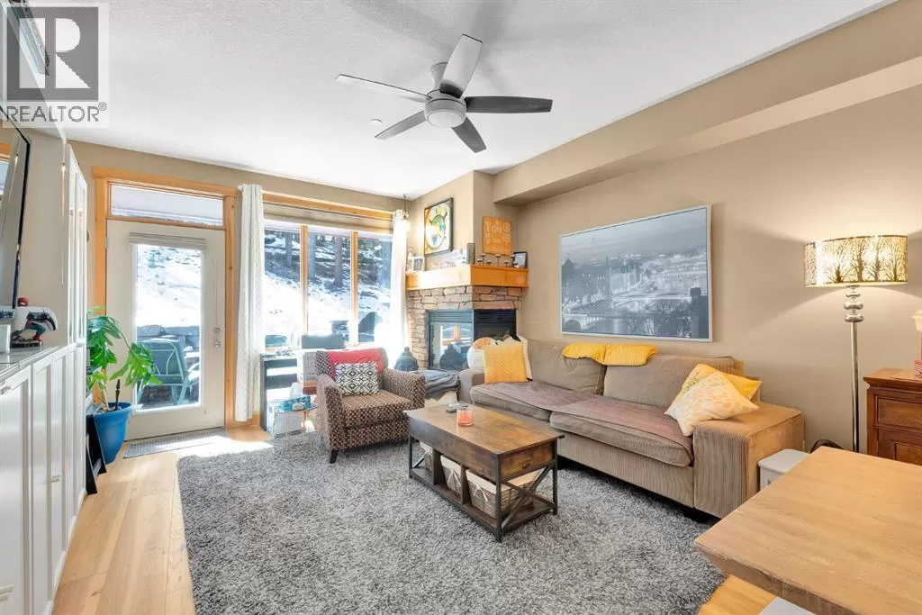 This 2 bed, 2 bath home in Canmoreâs sought after Three Sisters community offers the perfect mix of comfort, function, and location. Inside, youâll find exposed wood cabinetry, solid stone countertops, and matching wood trim, doors, and vanities that give the home a clean, mountain feel. The open layout includes a gas fireplace with exposed rock and a wooden mantle, plus loads of natural light and a primary suite with a 3 piece ensuite and walk in closet. Heated linoleum floors with in-floor radiant water heating keep things efficient and warm year round. Step outside to your private patio with a built in gas BBQ, great for winding down after a day in the mountains or entertaining friends and family. This unit comes with two heated, secured underground parking stalls and a large heated storage unit for all your gear. You're minutes to Stewart Creek Golf Course, downtown Canmoreâs restaurants and shops, and right next to a network of hiking, biking, and walking trails. Banff National Park is just 15 minutes away, with four major ski resorts - Norquay, Sunshine, Nakiska, and Lake Louise, all within a 40 minute drive. A clean, well-kept home in a prime location - ready for full time living or a mountain escape. (id:27476)