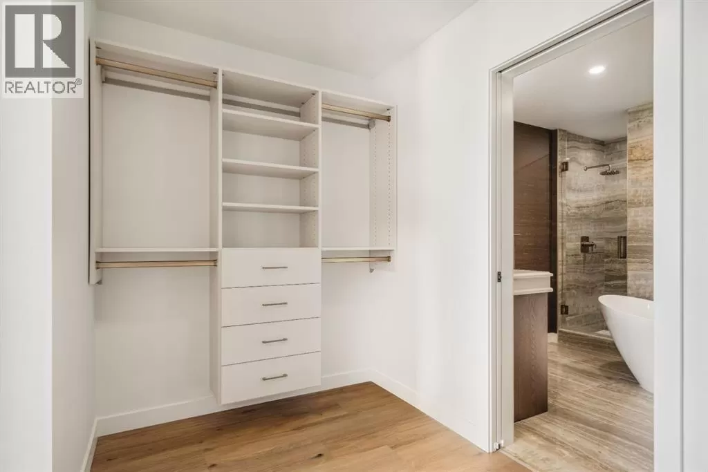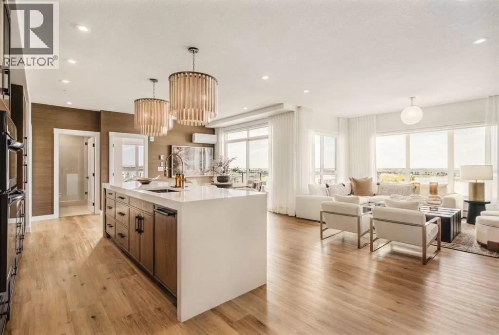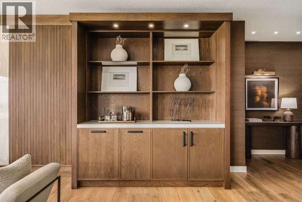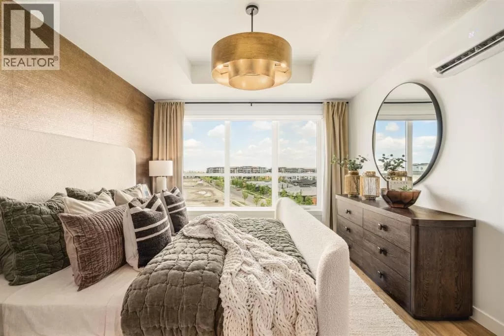 Welcome to Unit 205 in Building 1 of Altitude at Three Sistersâa thoughtfully designed two-bedroom Soleil 2 floorplan offering elevated single-level living with modern alpine flair. This second-floor home features a spacious covered patio, in-floor heating, tile in bathrooms, and durable LVP flooring throughout the main living areas. A 41" upper cabinet package with full-height risers, undermount bathroom sinks, and Samsung appliancesâincluding a built-in cabinetry hood fan and front-control rangeâreflect quality and function. Complete with tandem underground parking, this residence offers practical luxury in the heart of the Rockies. Upgrades include upgraded microshaker cabinetry, full height cabinetry with riser to the ceiling, under cabinet lighting in kitchen, pot drawers in kitchen and in bathrooms, upgraded panel fridge with autofill water pitcher, custom cabinetry hood fan, extended kitchen island, gas range, electric wall oven, A/C, upgraded lighting package with pendant lighting and pot lights, LEX Valour 50" electric fireplace, full height kitchen backsplash, upgraded Kitchen sink, upgraded LVP flooring, upgraded tile selection in all bathrooms, skirted tub in main bathroom, fully tiled walk-in shower in primary with free standing tub.Monthly condo fees of $660 include heat, water, sewer, building insurance, snow removal, reserve fund contributions, and access to a community spa and hot tubâensuring a seamless lifestyle. Built by award-winning Logel Homes who have a decades long pedigree of successful developments in Canmore and located in Three Sisters, next to the upcoming Gateway community hub with shops and grocery options, Altitude combines comfort, convenience, and a connection to nature. Possession anticipated Summer 2026. Visit our sales centre and show suite (closed Wednesdays) to explore this exciting new development and secure your future home in Canmore. Residential properties - no short term rentals. (id:27476)