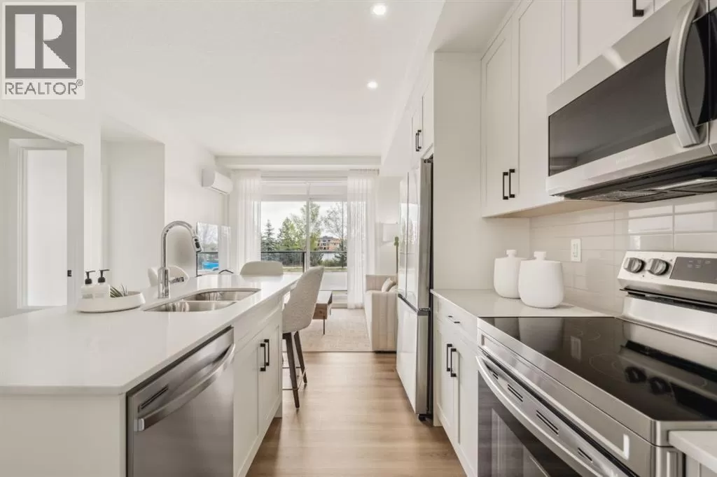 Welcome to Unit 119 in Building 2 of Altitude at Three Sistersâfeaturing the well-appointed Richler floorplan designed for a comfortable and contemporary mountain lifestyle. This home includes a large covered patio, in-floor heating, durable LVP flooring, and tile in the bathrooms. High-end finishes such as 41" upper cabinetry with full-height risers, undermount bathroom sinks, and a Samsung appliance package with a built-in hood fan and front-control range create a refined and functional interior. The property includes one underground parking stall, and the $470/month condo fee ensures ease of living with coverage for heat, water, sewer, snow removal, reserve fund contributions, and access to the on-site community spa and hot tub. Built by award-winning Logel Homes who have a decades long pedigree of successful developments in Canmore and located in Three Sisters, next to the upcoming Gateway community hub with shops and grocery options, Altitude offers effortless access to the best of Canmore. Anticipated possession early 2027. Stop by the sales centre and show suite (closed Wednesdays) to discover the lifestyle that awaits you at Altitude. Residential properties - no short term rentals. (id:27476)