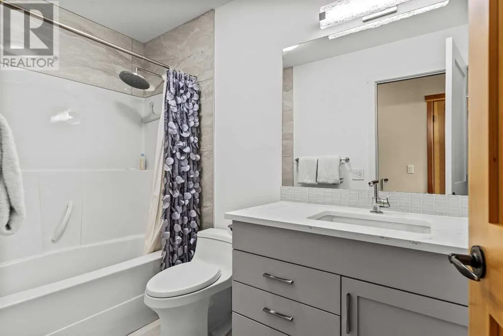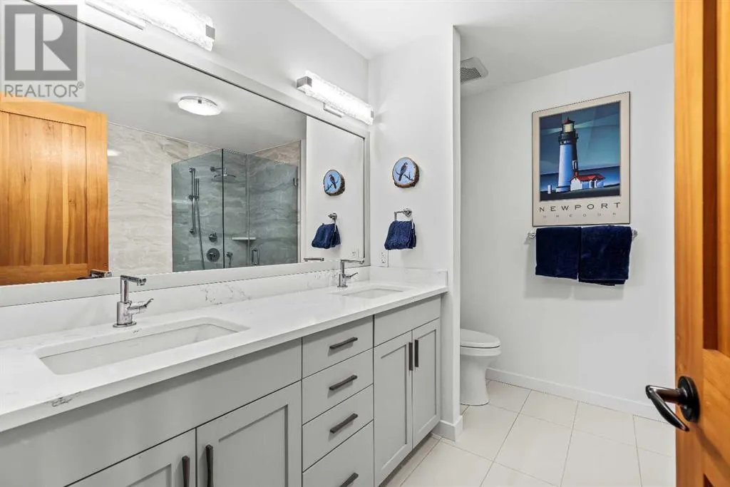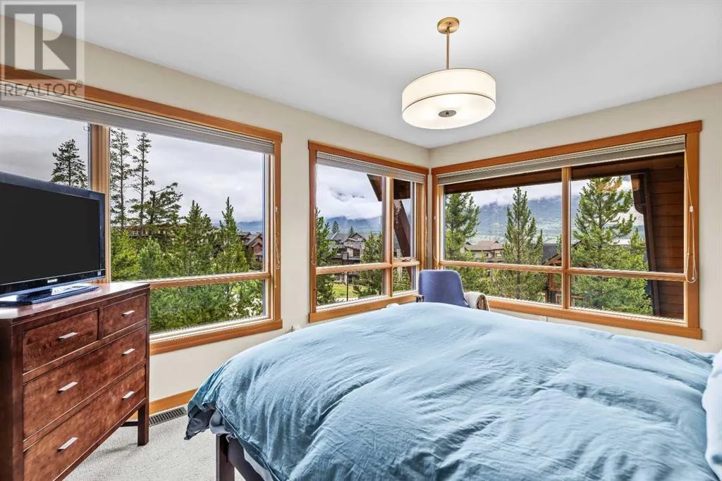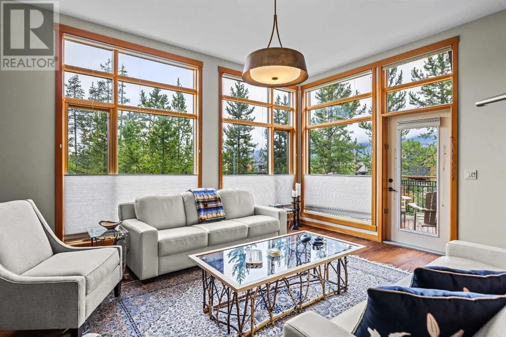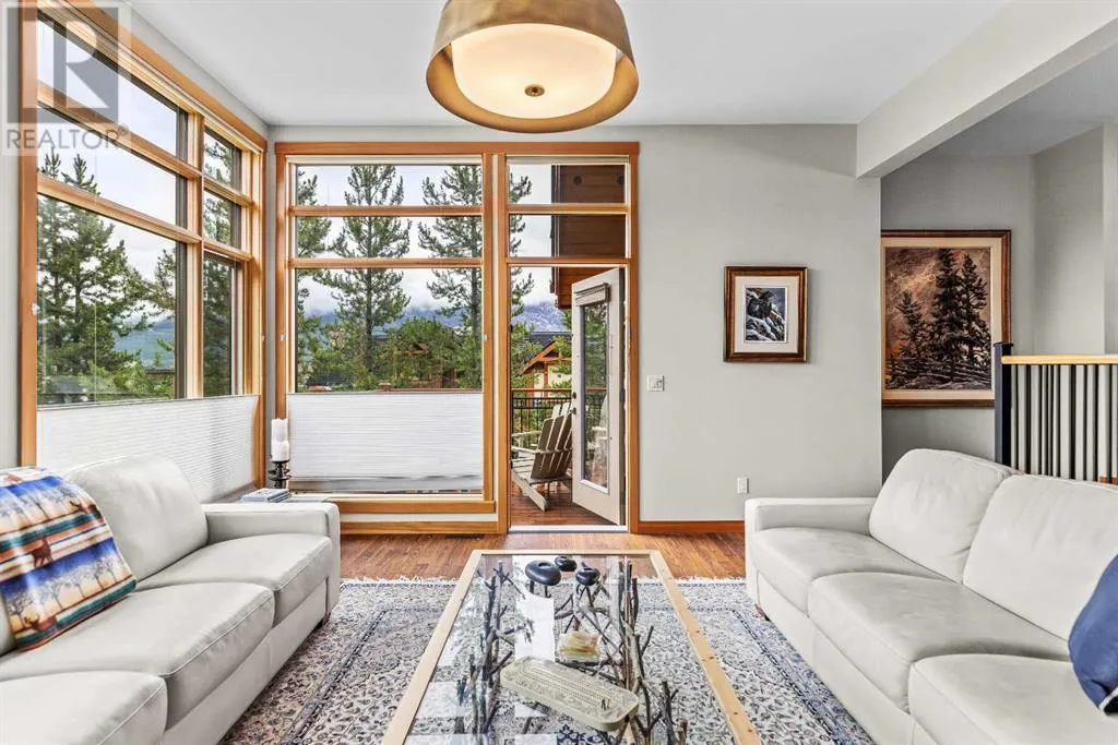 Discover refined mountain living in this beautifully designed multi-level townhome, located in one of Canmoreâs most sought-after communities â Three Sisters Mountain Village. Set in a quieter, more private enclave of the neighborhood, this exceptional 4-bedroom, 4-bathroom home offers over 2,870 sq. ft. of thoughtfully planned living space, seamlessly blending luxury, comfort, and the serenity of the Rockies. From the moment you step inside, youâre greeted by expansive mountain views from nearly every room. The open-concept main level is warm and welcoming, featuring a modern chefâs kitchen, elegant dining area, and a bright, airy living room with a cozy fireplace. Sliding doors open onto a private deck â the perfect place to take in the fresh mountain air and breathtaking alpine scenery. A dedicated office space off the main floor adds functionality for remote work or creative pursuits. Upstairs, the primary suite serves as a true retreat with expansive windows, and a spa-inspired 5-piece ensuite complete with a deep soaker tub, dual vanities, and a walk-in shower. The additional bedrooms are spacious and well-appointed, ideal for family, guests, or additional workspace. The fully finished lower level offers a large recreation room â perfect for movie nights, games, or hosting visitors â along with ample storage and access to the attached double car garage. Perfectly positioned just minutes from the new Gateway commercial district and a short walk or ride to world-class biking and hiking trails, this home also offers quick access to the renowned Stewart Creek Golf Course. Whether you're enjoying a quiet morning on the deck or exploring the endless outdoor adventures right at your doorstep, this home provides the ideal balance of privacy, natural beauty, and modern alpine living. (id:27476)