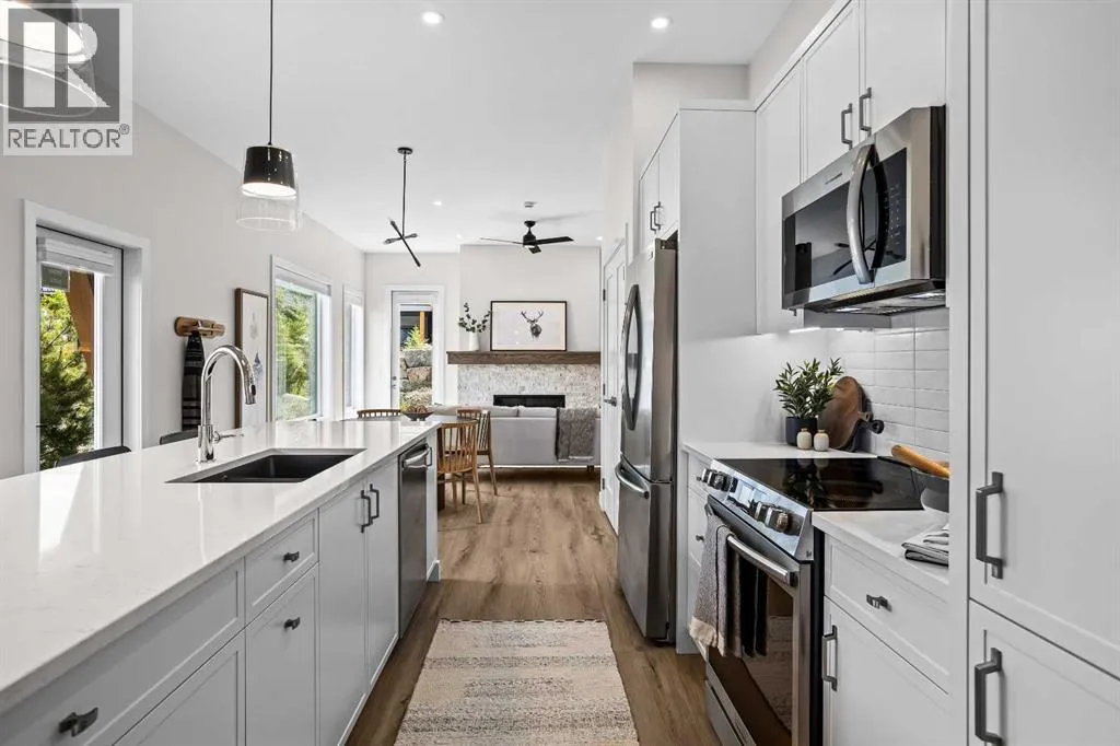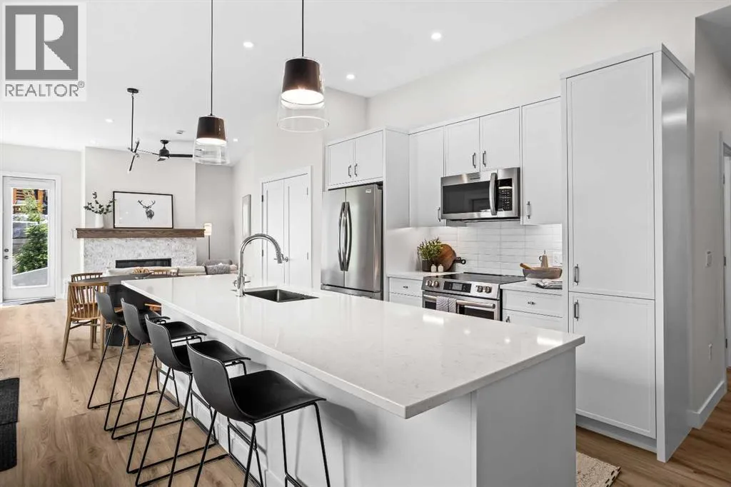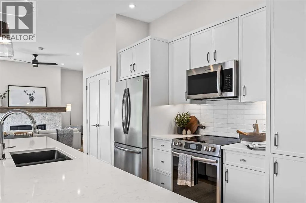 Discover luxury mountain living at its finest in these exquisite 3-bed, 2-bath single level townhouses, in Stewart Creek's newest multi-family development, The Meadows at Stewart Creek, Situated just under 60 minutes from YYC. These unique homes features close to 1,300 square feet of living space on one level, no step entries, along with a 2 parking pad spaces. Enjoy well appointed and full-featured, open concept living along with 3 bedrooms and 2 full baths- as well as in suit laundry and in unit storage. With multiple colour palettes available for Buyers to select from, The Meadows' tasteful interior design appointments create restful spaces. The unparalleled design carries throughout, and non-parallel walls contribute to both Privacy and interest. **Current rendering shows comparable unit in the Developer's previous project** (id:27476)