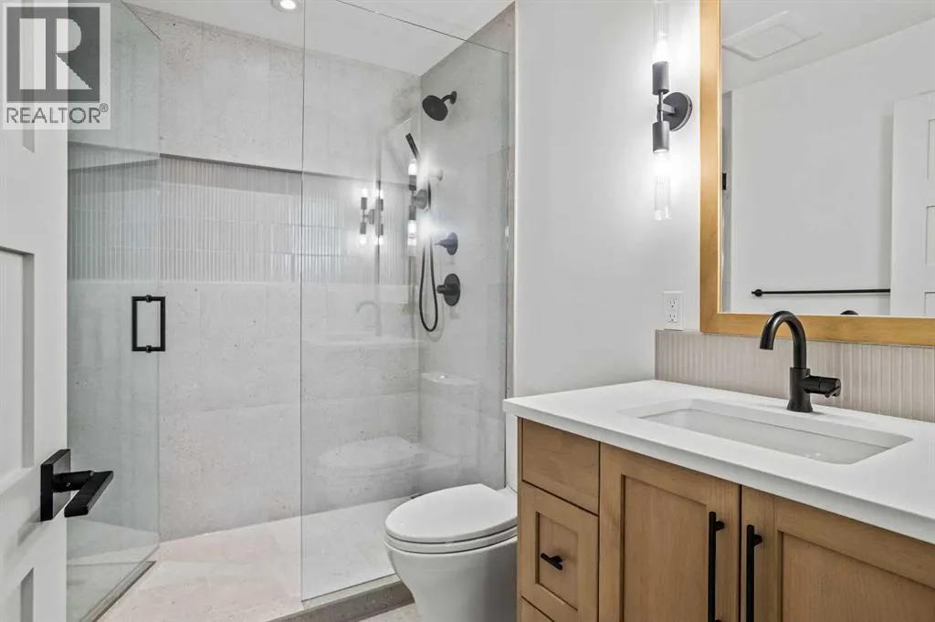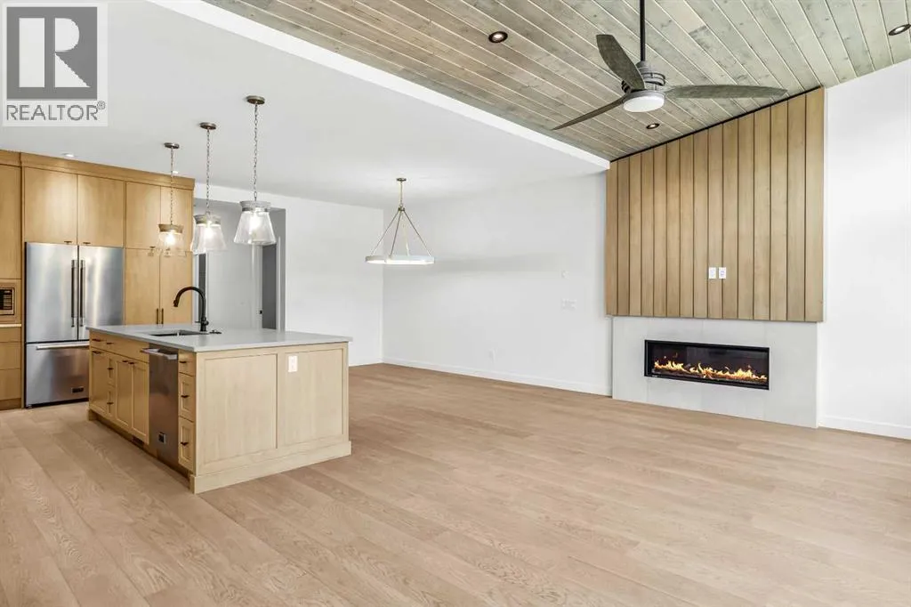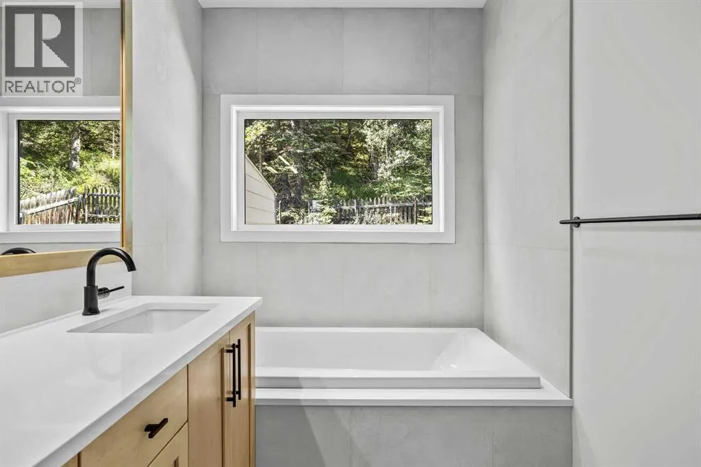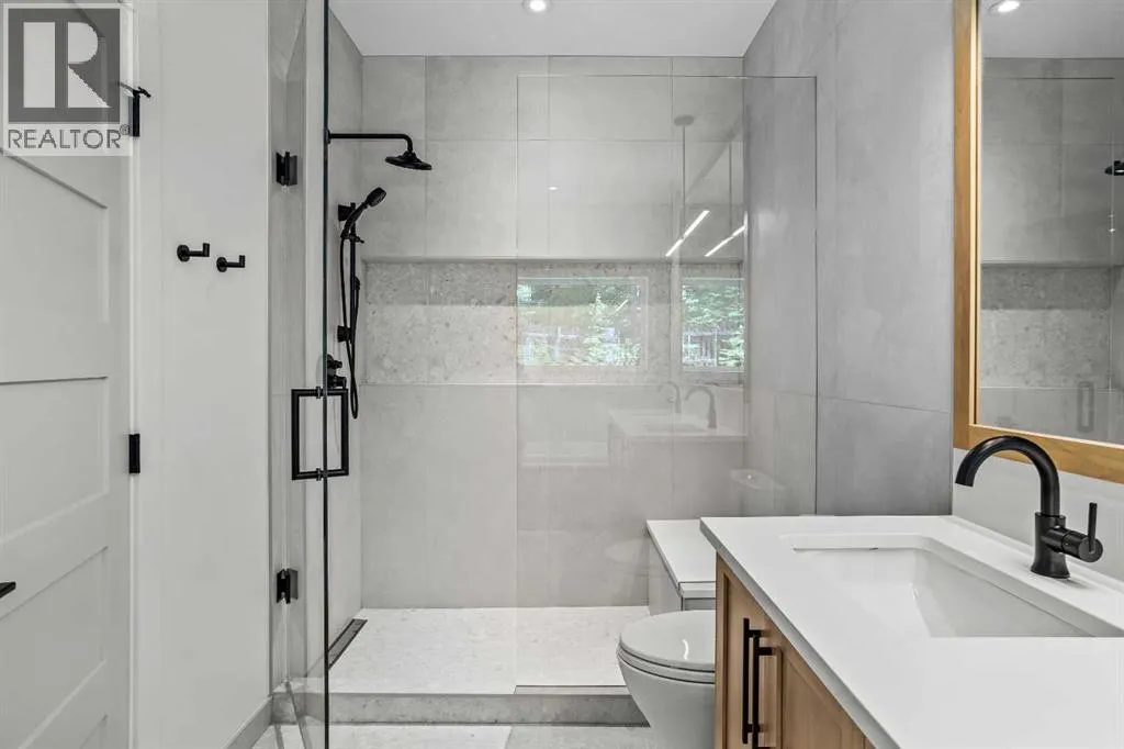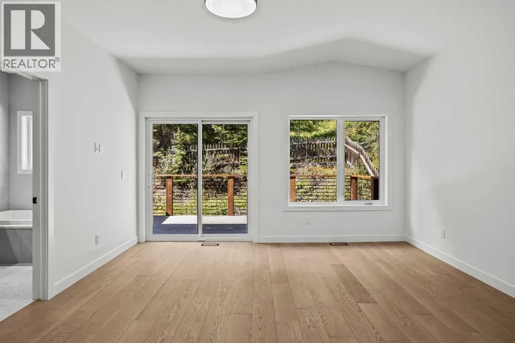 Brand New Luxury Half Duplex â Over 2,800 Sq Ft | Backing Onto Greenspace | Steps to Nordic Centre. This stunning new half duplex offers over 2,800 square feet of refined mountain living, perfectly positioned on a quiet street just a 5-minute walk to downtown Canmore and steps from the world-renowned Nordic Centre. Designed with attention to detail throughout, the main level features vaulted wood ceilings, an open-concept living area, and a spacious primary suite with a spa-like 5-piece en-suite. Two large decks provide breathtaking mountain views, ideal for relaxing or entertaining. The walk-out lower level is built for gathering, with a generous family room, gas fireplace, and custom wet bar, opening to a private covered patio that backs directly onto peaceful greenspace. Upstairs, youâll find two more spacious bedrooms, each with their own en-suites featuring oversized tiled showers. This home delivers high-end comfort in a serene, adventure-ready location with direct access to hiking, biking, and cross-country ski trails right out your door. (id:27476)