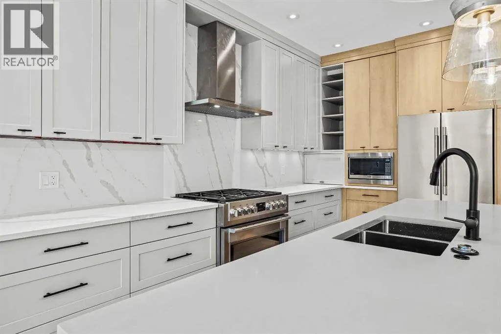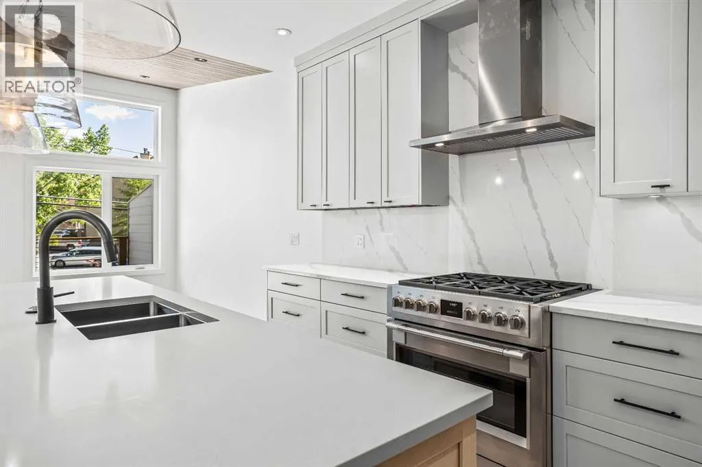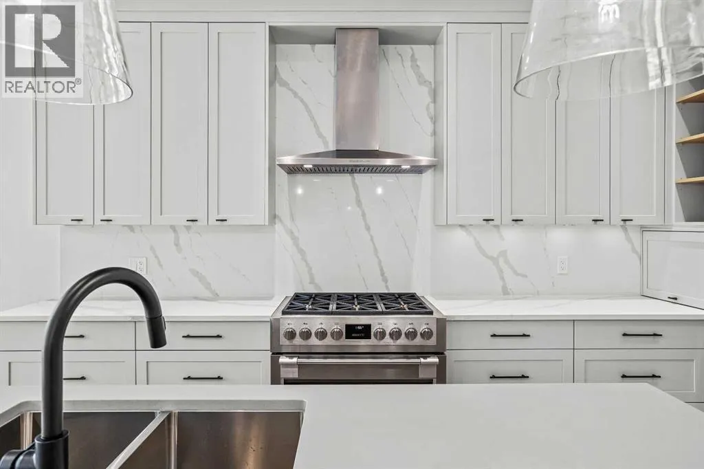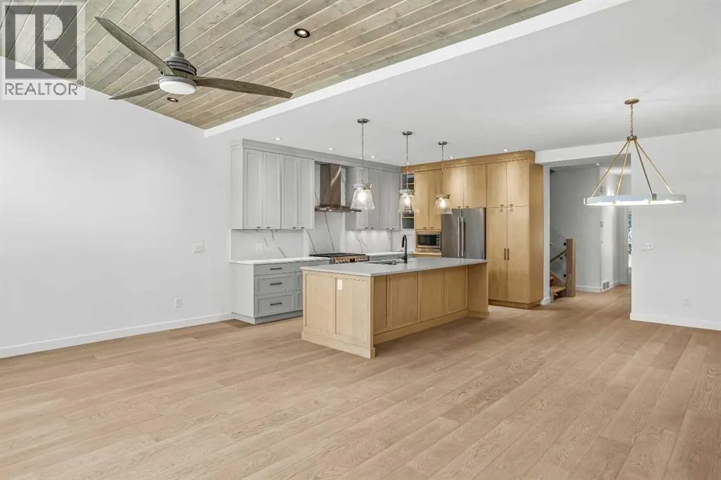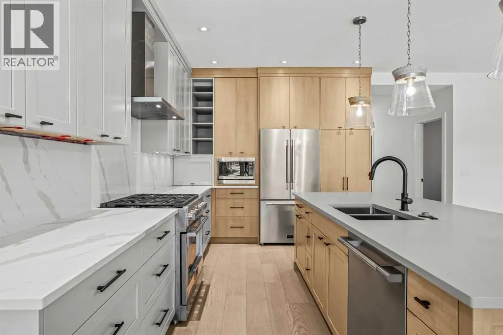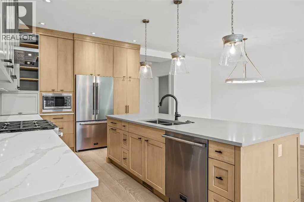 Brand New Luxury Half Duplex â Over 2,800 Sq Ft | Backing Onto Greenspace | Steps to Nordic Centre. This stunning new half duplex offers over 2,800 square feet of refined mountain living, perfectly positioned on a quiet street just a 5-minute walk to downtown Canmore and steps from the world-renowned Nordic Centre. Designed with attention to detail throughout, the main level features vaulted wood ceilings, an open-concept living area, and a spacious primary suite with a spa-like 5-piece en-suite. Two large decks provide breathtaking mountain views, ideal for relaxing or entertaining. The walk-out lower level is built for gathering, with a generous family room, gas fireplace, and custom wet bar, opening to a private covered patio that backs directly onto peaceful greenspace. Upstairs, youâll find two more spacious bedrooms, each with their own en-suites featuring oversized tiled showers. This home delivers high-end comfort in a serene, adventure-ready location with direct access to hiking, biking, and cross-country ski trails right out your door. (id:27476)