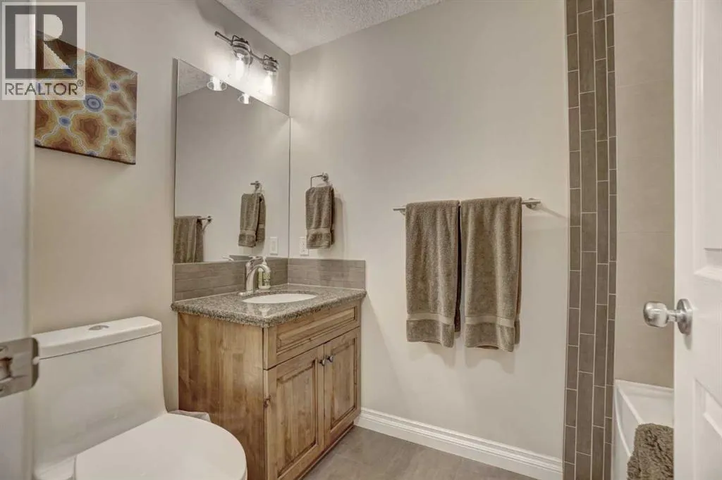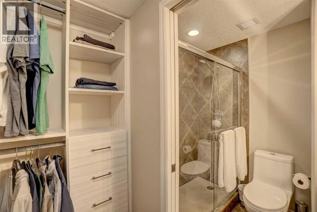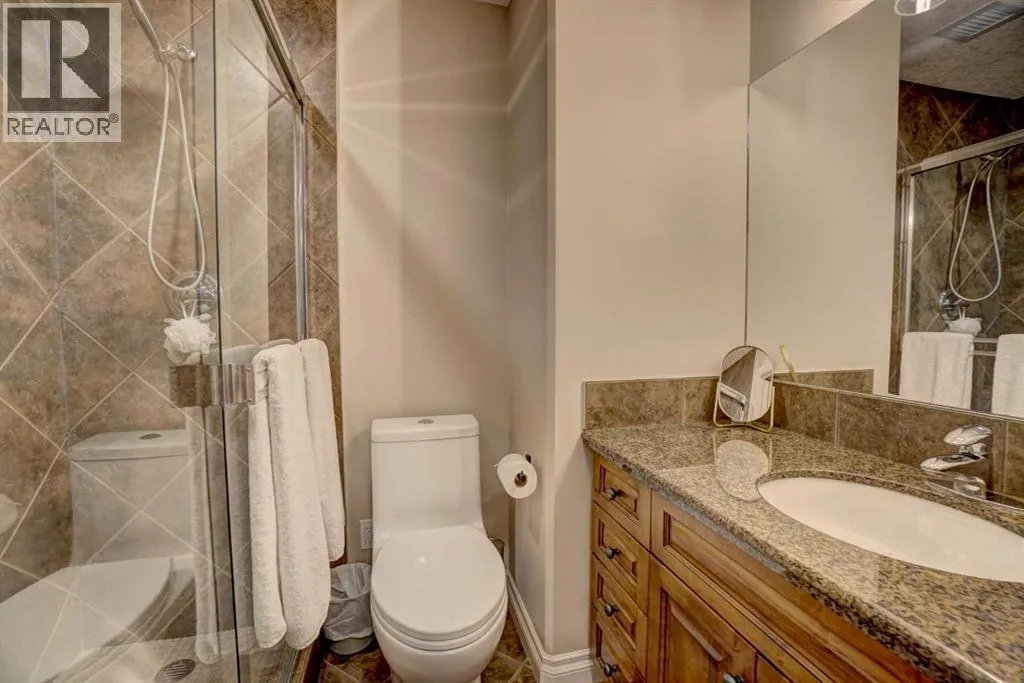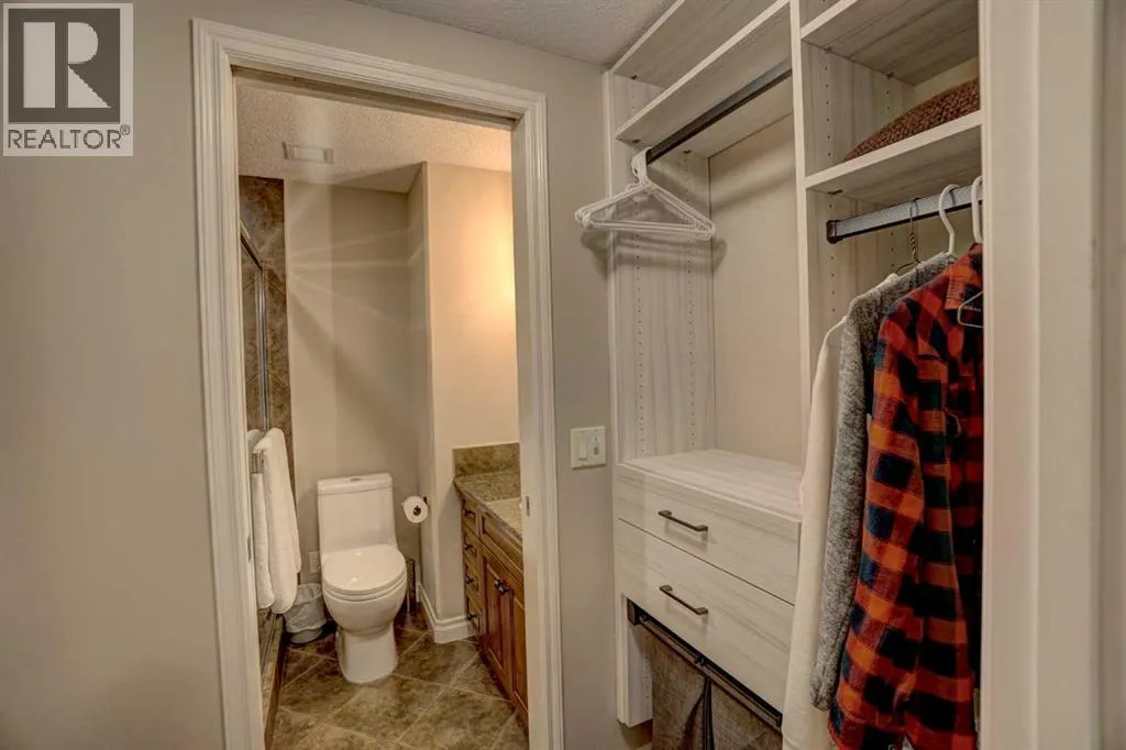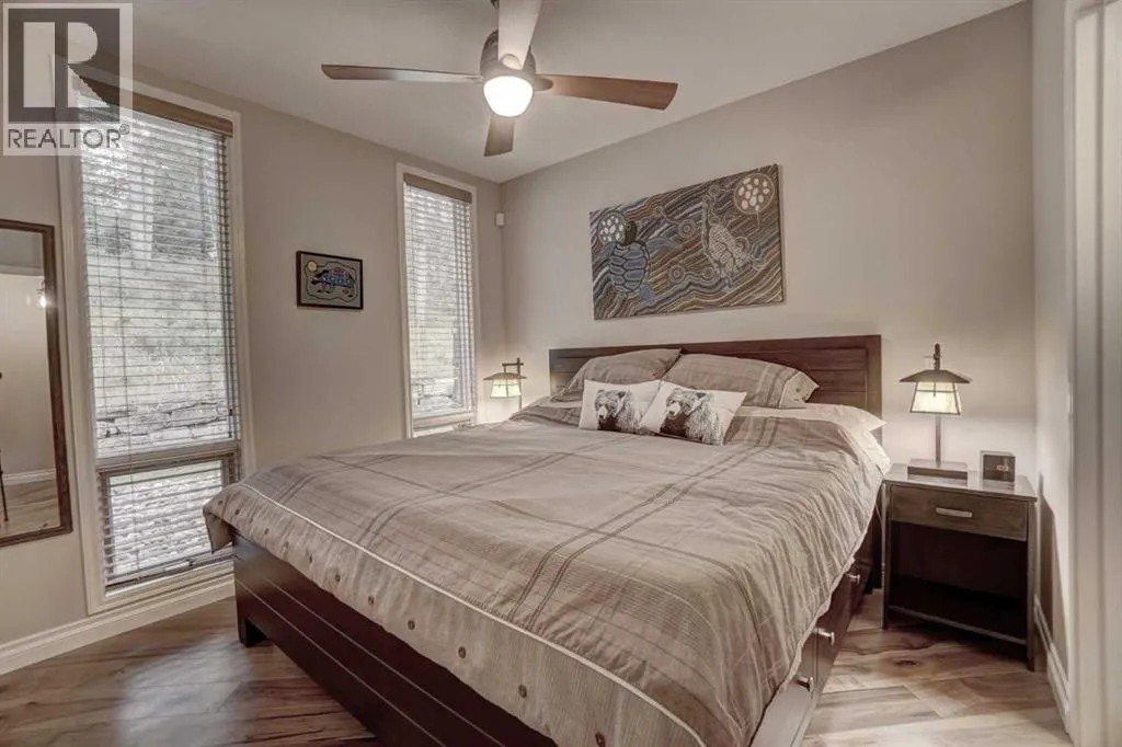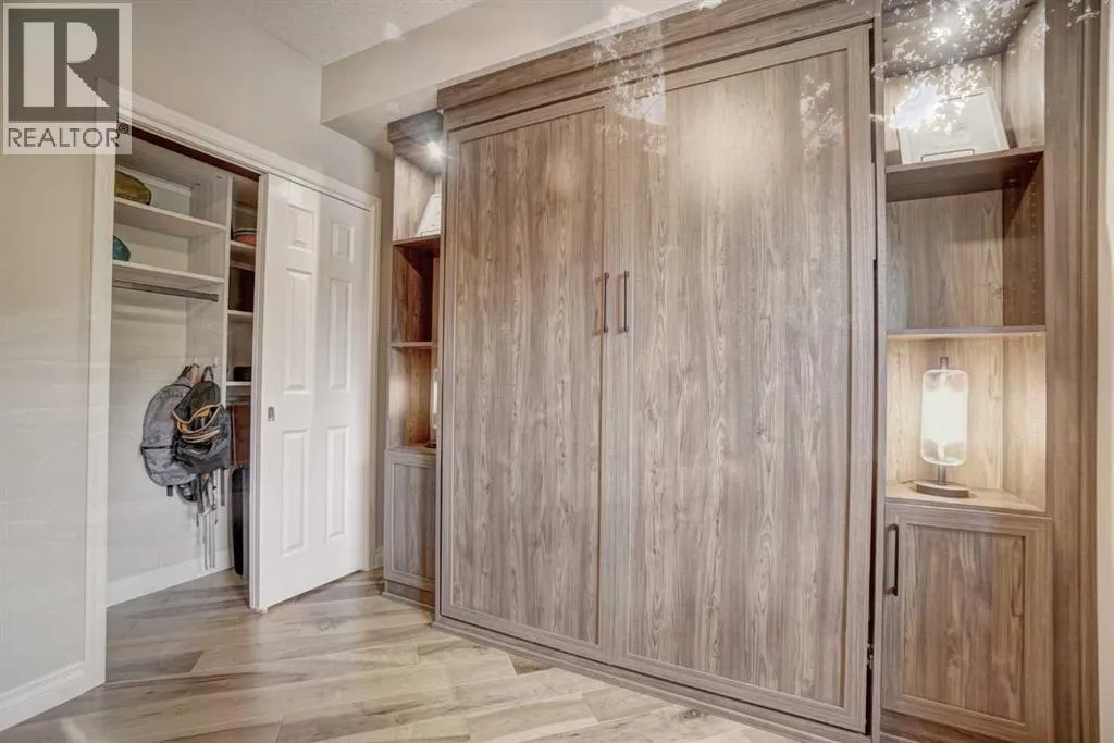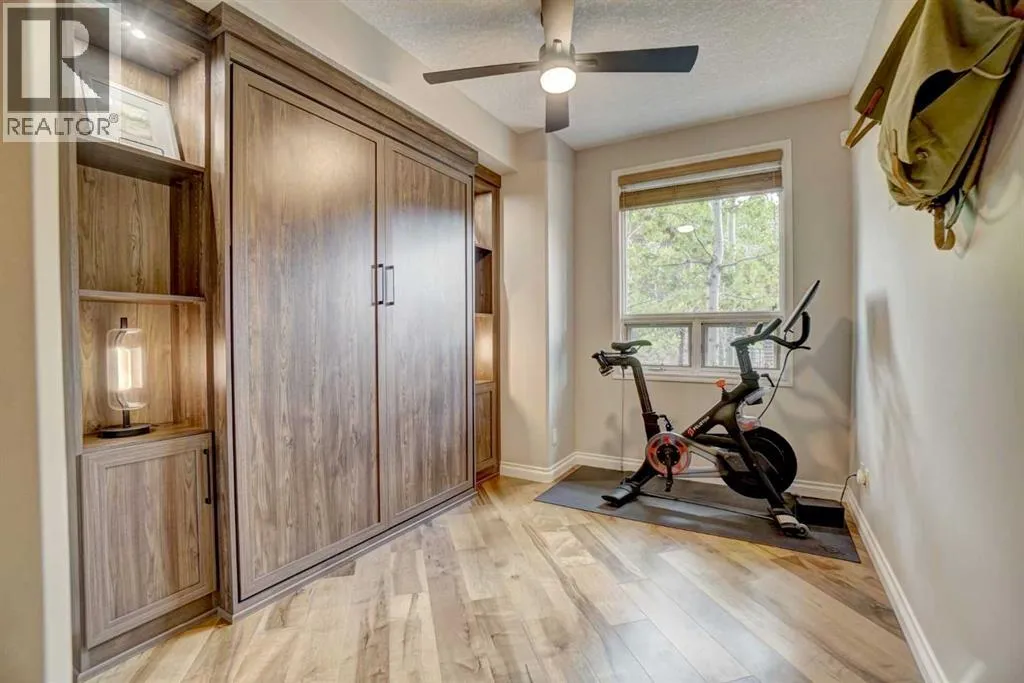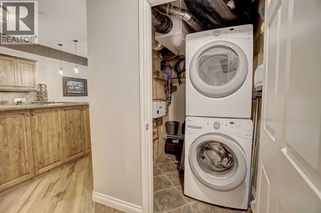 This 2 bedroom, 2 full bathroom Built Green apartment in The Portal at Three Sisters offers modern mountain luxury in a quiet setting. A 2-sided gas fireplace accents the open concept living room and dining room. Enjoy in-floor heating under engineered hardwood flooring, run by tankless on-demand hot water. The well equipped, modern kitchen has stainless appliances and granite counters. The large patio, accessed from the living room, has a built in gas BBQ with granite surround. Backing onto trees and the 2nd fairway of the Stewart Creek golf course, the patio is private and quiet. The primary bedroom features a walk through closet and three piece ensuite bathroom. There is a second bedroom with a murphy bed, offering flexible use. The closets feature California Closet organizers. Adjacent to the second bedroom is an updated 4 piece bathroom, and a large laundry / storage closet. This luxury condo has been well maintained, with only two owners since new! Two assigned parking stalls and a separate large assigned storage unit (set up to store four bikes plus other gear) in the secure underground parkade round out this amazing property! (id:27476)
