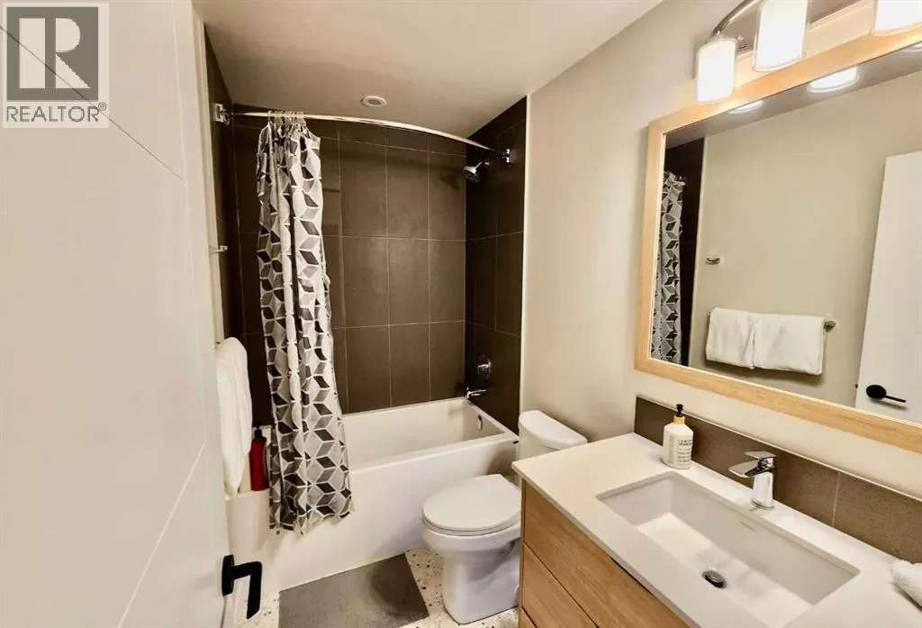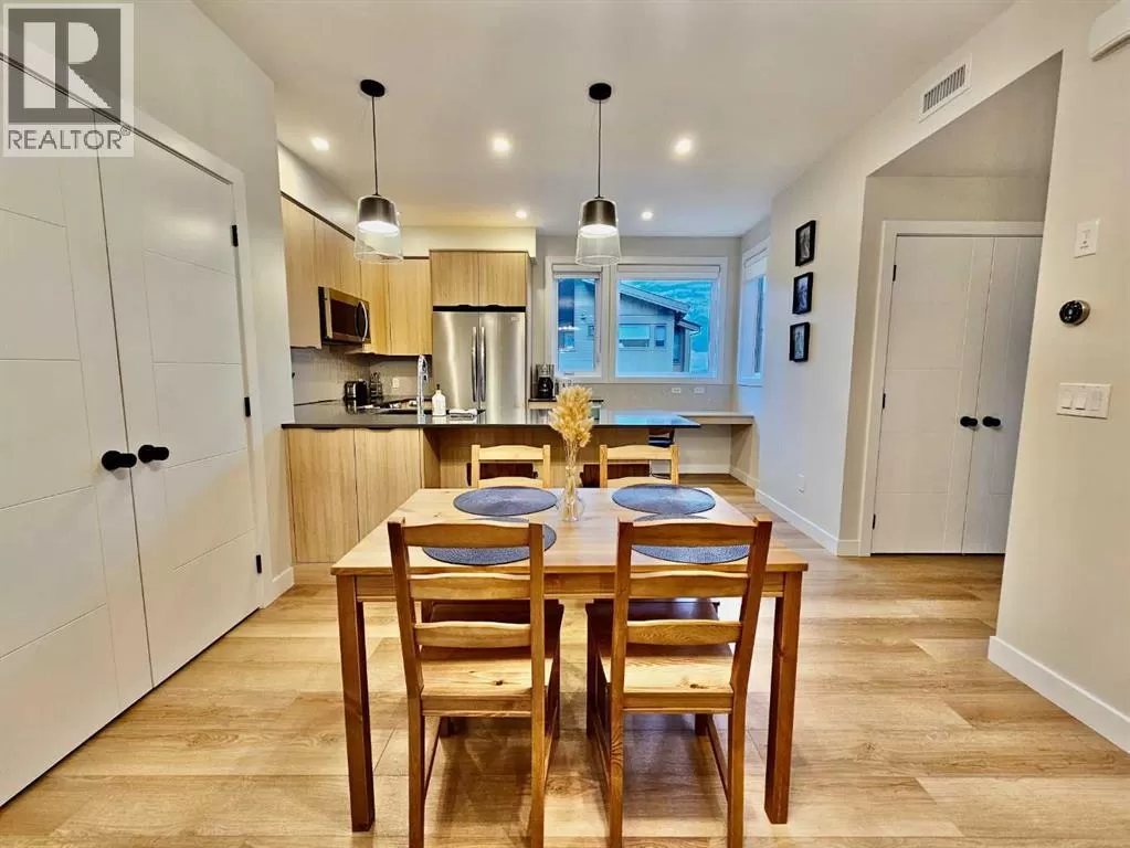 Fully Furnished, turnkey opportunity within Three Sisters Mountain Village, just under an hour from Calgary. This beautiful first-floor 2-bedroom, 2-bath unit features modern kitchens with stainless steel appliances and stone countertops, along with an oversized deck perfect for enjoying breathtaking panoramic mountain views. The primary bedroom includes a private 4-piece ensuite, while the second bedroom offers scenic views and a convenient office nook. Additional highlights include a "car-and-a-half" garage with ample storage and close proximity to the future Gateway Business District. Still covered under the Alberta New Home Warranty Program, this unit combines sustainable luxury with peace of mind. Whether for personal enjoyment or as an investment in Canmoreâs thriving real estate market, this home is priced to sell fastâdonât miss your chance to embrace the mountain lifestyle today. **The unit comes with 55' TV, Sectional, Dining Table, 2 X Beds with side tables and all Kitchen appliances and small ware** (id:27476)