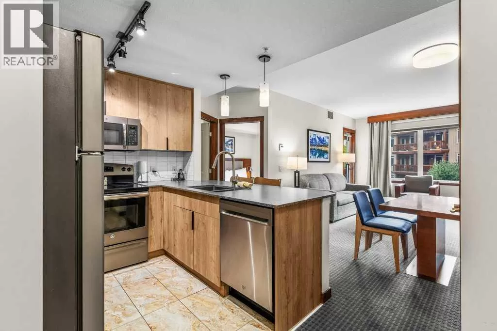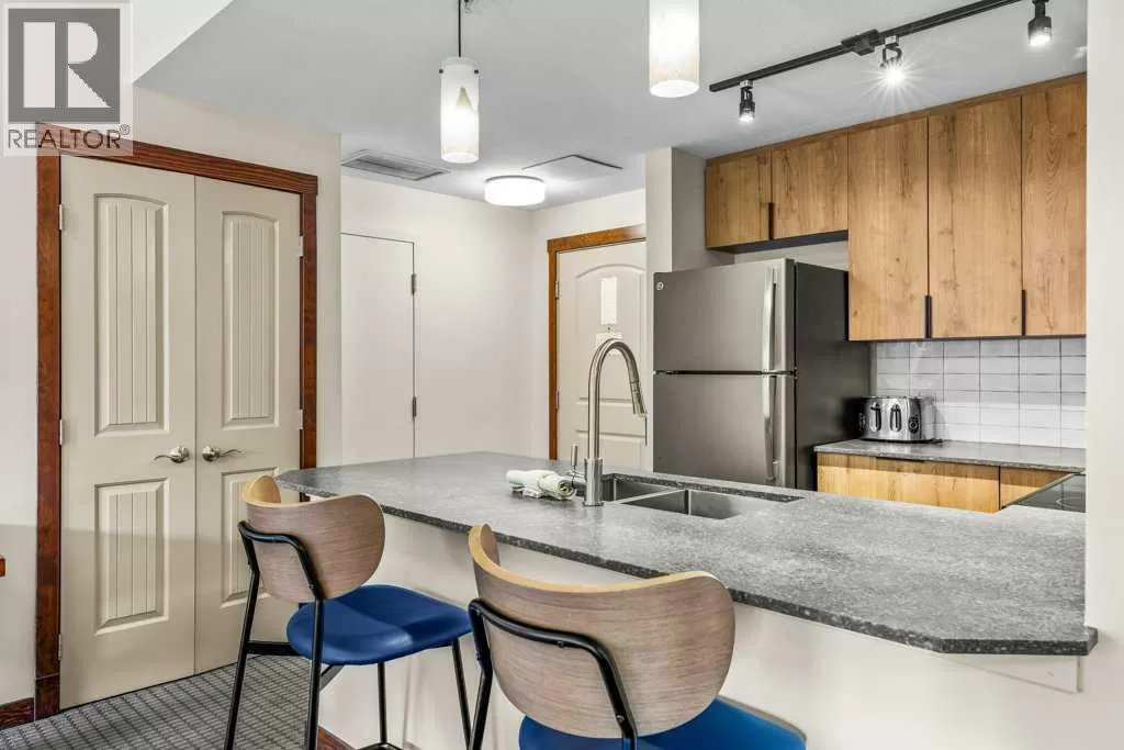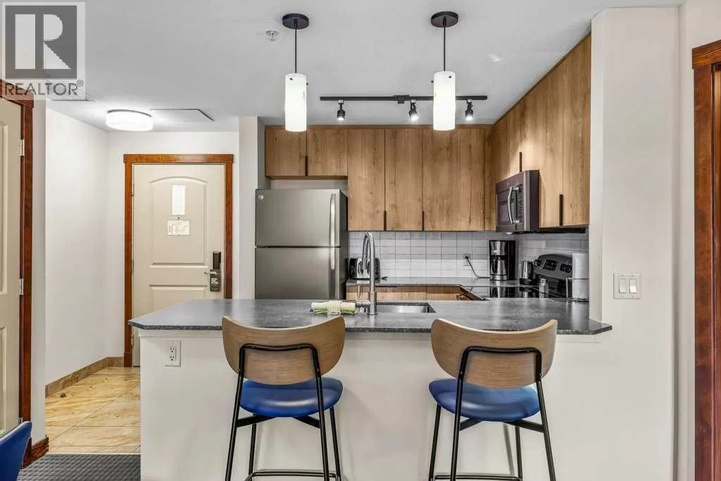 Own Your Mountain Retreat & Income Generator in Canmore - Welcome to Falcon Crest Lodge, where lifestyle, location, and investment potential unite. Just steps from downtown Canmore and minutes from Kananaskis, Banff, and Lake Louise, this 1 bed/1 bath condo offers both a serene escape and a savvy investment. Inside, youâll find a cozy living room with fireplace, a spa-inspired bathroom, a sleek gourmet kitchen, and a private balcony with a premium Napoleon BBQâperfect for unwinding after a day in the Rockies. Owners and guests enjoy two outdoor hot tubs, an on-site restaurant, a fitness facility, and heated underground parking with a car wash station. Currently part of the professionally managed Clique rental pool, this unit also gives you the flexibility to self-manage through Airbnb or VRBOâmaximizing returns while keeping personal use options open. Whether youâre seeking passive income, a vacation getaway, or both, Falcon Crest Lodge delivers the luxury of convenience with the security of professional management. This is more than a condoâitâs your foothold in the Rockies lifestyle. The property comes turnkey ready with everything included. The list price includes 5% GST which buyers can defer if they are GST Tax registrants. Consult your professional accountant! (id:27476)