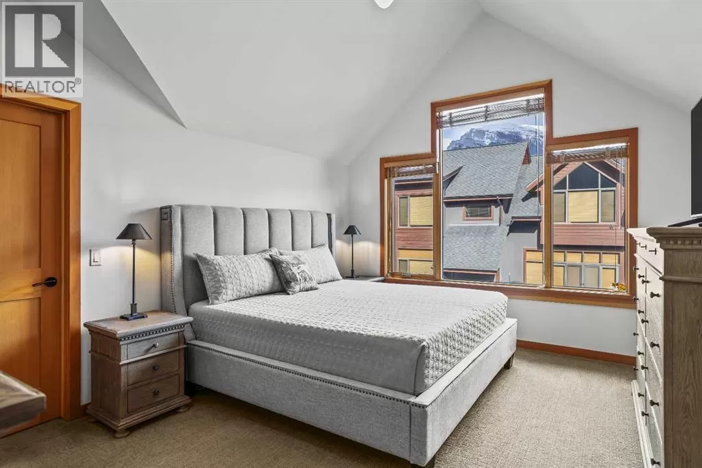 Set in one of Canmoreâs most prestigious Creekside communities, this Villa presents a rare opportunity to own a luxurious retreat. This stunning villa boasts 2350 sqft of beautifully appointed living space, featuring 3 spacious bedrooms, 4 bathrooms, and an exceptional layout designed to maximize both comfort and style. From the moment you step inside, youâre greeted by the grandeur of the main living areaâanchored by soaring cathedral ceilings and expansive floor-to-ceiling windows that frame unobstructed mountain views. The open-concept design seamlessly flows to a generous deck, ideal for entertaining or simply soaking in the breathtaking alpine scenery. At the heart of the home is a chefâs kitchen, complete with sleek stainless-steel appliances, quartz countertops, and ample space for culinary creativity. Upstairs, the primary suite is a true retreatâoccupying its own level with a luxurious 5-piece spa-inspired ensuite and a spacious walk-in closet. While the second level offers two additional bedrooms and a well-appointed 4-piece bathroom, providing comfort and privacy for family or guests. The fully developed lower level adds even more versatility, with a cozy flex space, additional bathroom, and walkout to a private patio. Whether youâre looking for a full-time residence or a luxurious mountain escape, this home delivers refined living in an unparalleled settingâjust steps from trails, the creek, and all the charm that downtown Canmore has to offer. (id:27476)