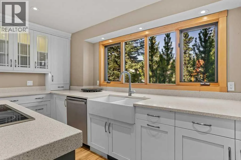 Positioned at the pinnacle of Canyon Ridge, this exceptional mountain estate offers privacy, space, and versatilityâall in one breathtaking package.The main residence boasts 5 spacious bedrooms and 4 bathrooms, thoughtfully designed for both everyday comfort and elegant entertaining. Above the detached garage, a fully self-contained 1-bedroom legal suite provides the perfect space for guests, extended family, or rental income.At the heart of the home, a chef-inspired kitchen features high-end built-ins and ample room to gatherâwhether it's a lively kitchen party around the oversized island or a formal dinner in the sophisticated dining room. Sunlight pours into the dedicated main floor office, creating an inspiring work-from-home environment with serene views.Downstairs, a generous lower level includes multiple flexible spacesâideal for a media room, gym, or creative studio.Set at the very end of a quiet street, this property offers true seclusion and direct access to hiking and biking trails right from your doorstep. Itâs not just a homeâitâs a lifestyle nestled in nature. Note: no short term rentals permitted. (id:27476)