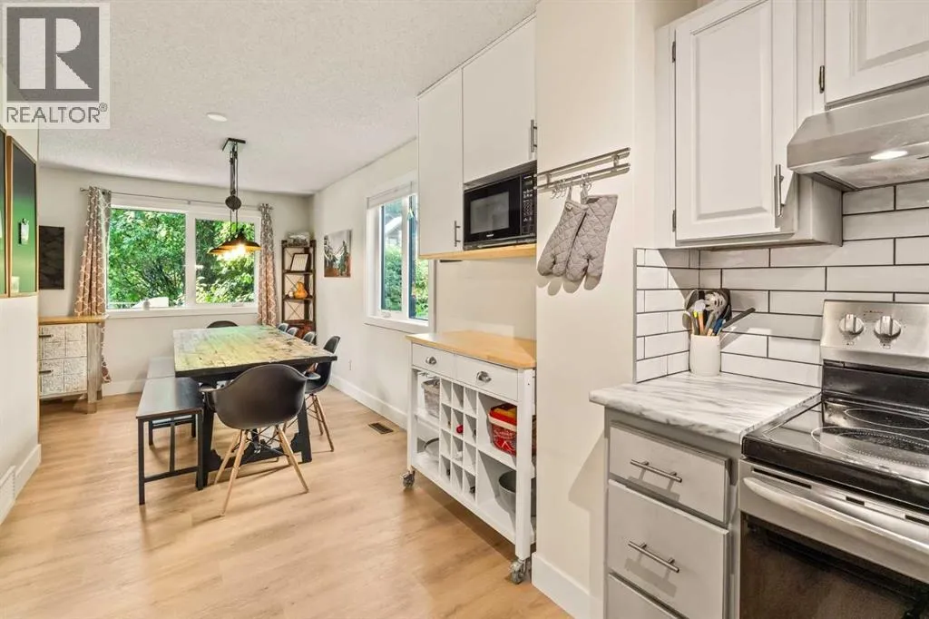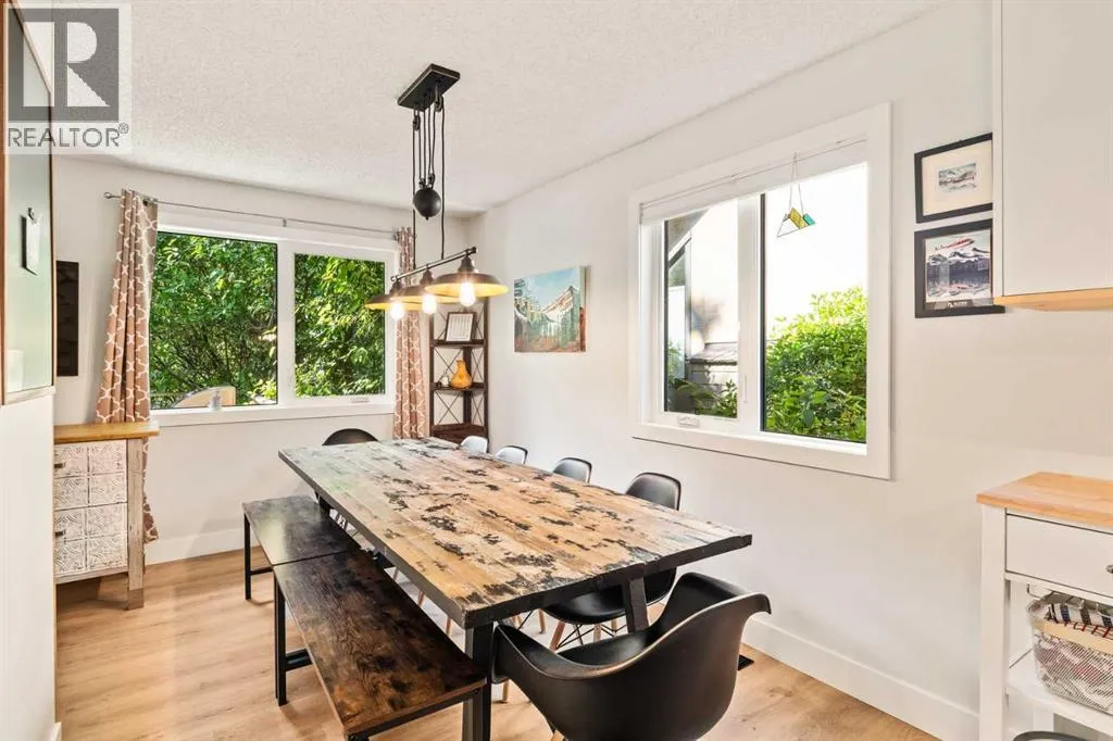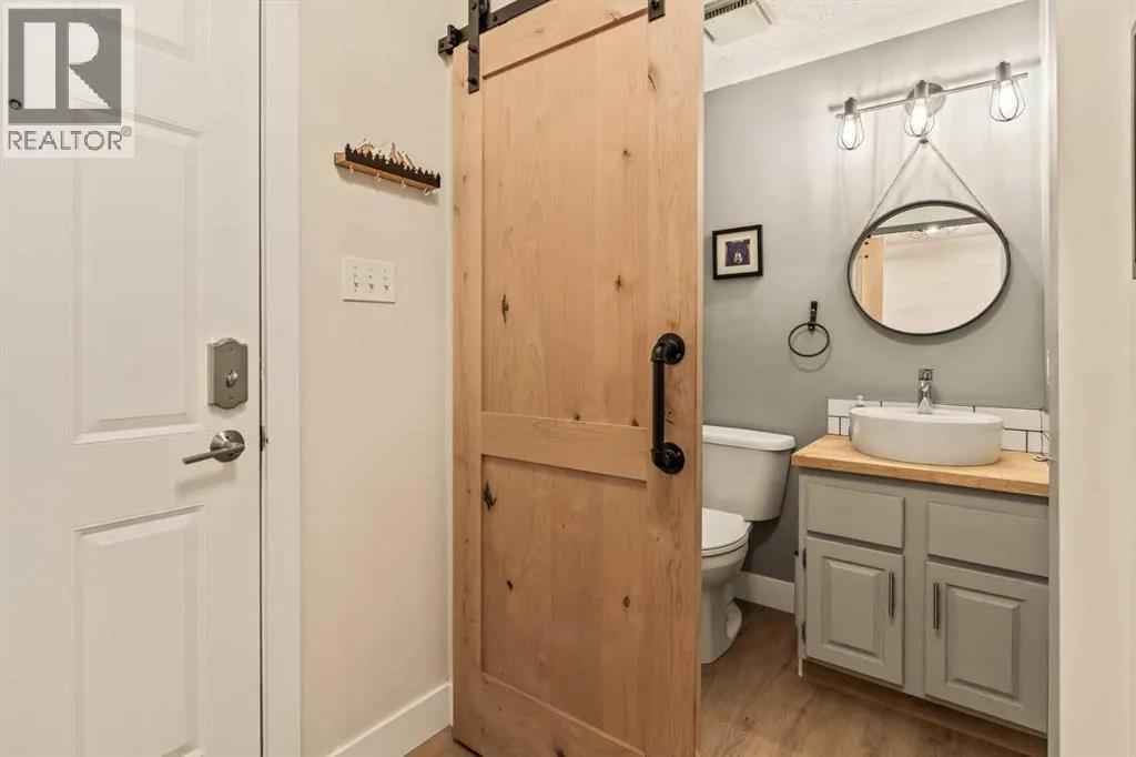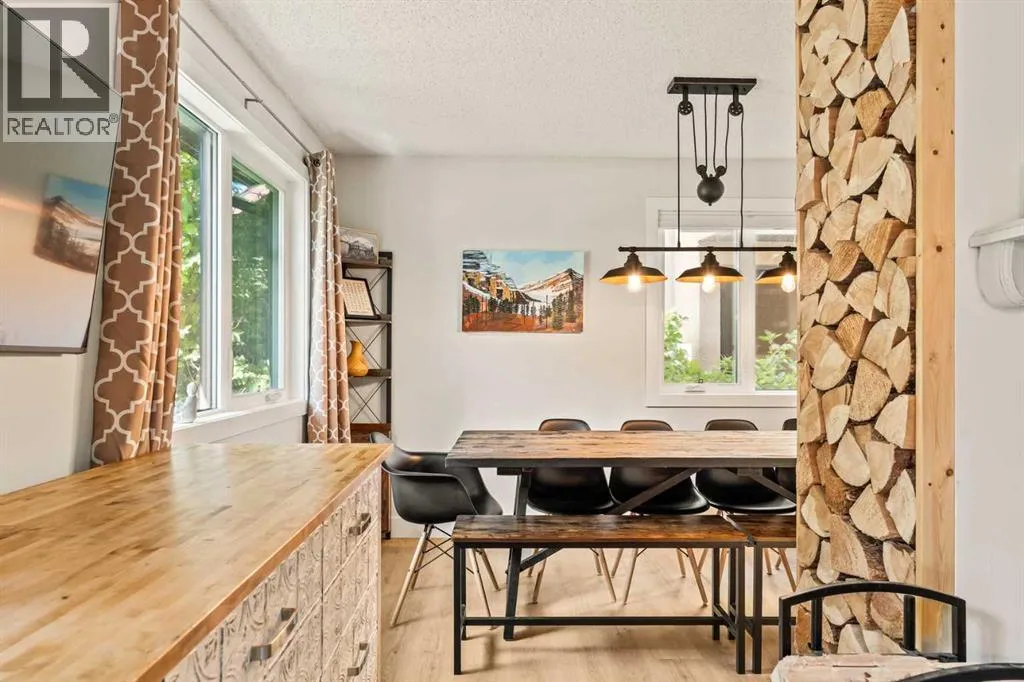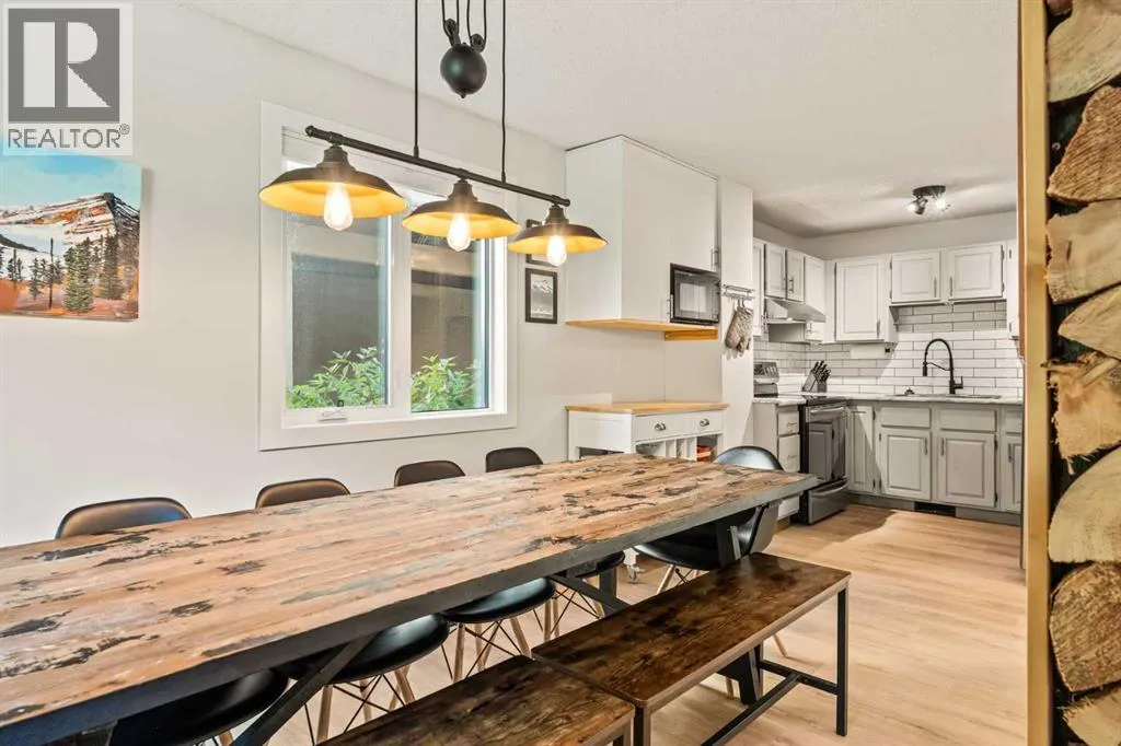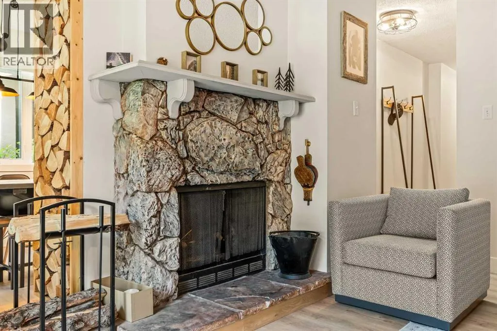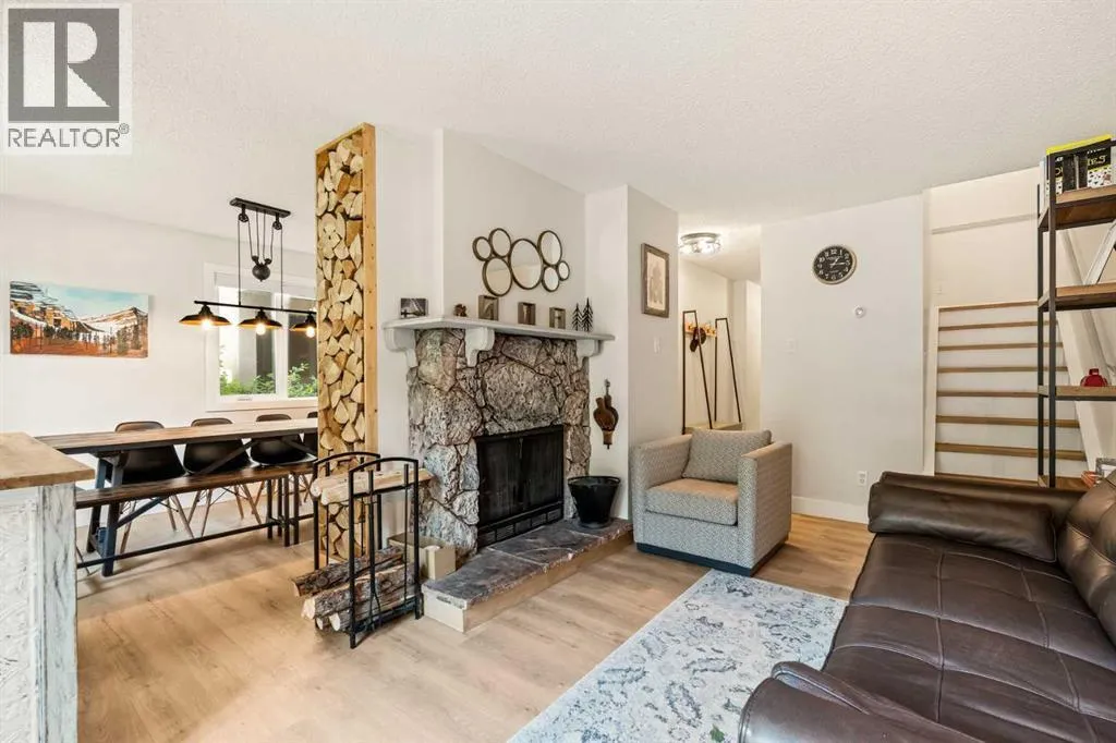 WOW!!! What a great new price for a home in Canmore! A tremendous opportunity to own an outstanding mountain retreat! Welcome to your slice of heaven in majestic Canmore! Tucked away in the tranquil complex of Three Sisters Place, this inviting townhome truly offers it all â breathtaking mountain views, direct access to walking and biking paths, and a pleasant stroll to the Bow River and downtown! The exceptionally well-maintained unit offers nearly 1100 SF of relaxed living space including 3 bedrooms and 1.5 baths. A charming living room centers around a cozy wood-burning fireplace making for the perfect spot to relax after a day on the slopes. The functional kitchen boasts ample cabinetry, stainless steel appliances, and a portable island while the bright dining area easily seats 10. A stylish powder room with a sliding barn door completes the main floor. The beautiful luxury plank flooring continues up the stairs and across the second level. The generous primary bedroom comfortably accommodates a king-sized bed and features a large closet. Two additional bedrooms and a 4-piece bathroom with quartz counter and vessel sink round off the upper level. The unspoiled lower level offers excellent potential to develop an additional 600 sq. ft. of living space while currently accommodating laundry, a home gym, and abundance of year-round gear. Outside, an airy deck opens directly to a walking path, perfect for walking the dog (pets allowed with restrictions) and a stunning Three Sisters Mountain vista. Other notable highlights of this special gem include 1) covered tandem parking, 2) triple pane Lux windows and sliding door (2020), 3) new LVP, baseboards, lighting fixtures, all in the last 5 years, and plumbing (toilets, sinks, fixtures) all updated. Ideally located, this picture-perfect townhome allows you to fully enjoy the Canmore lifestyle â from exploring endless trails and paddleboarding on pristine waters, to mountain biking rugged paths or strolling to your favou rite downtown pub. This exceptional property combines Canmore charm, thoughtful updates, and unbeatable Rocky Mountain acces. (id:27476)