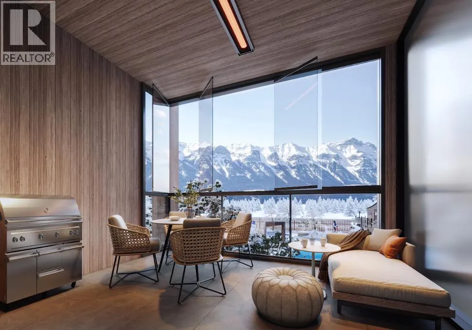 Introducing Canmore's most prestigious address: Rundle Park at 1734 Bow Valley Trail. This stunning hotel condo development offers an unparalleled blend of opulence, convenience, and breathtaking natural beauty. With 98 meticulously crafted units, ranging from cozy studios to expansive four-bedroom suites. Every unit in Rundle Park has been thoughtfully designed to maximize capacity and livability. Enjoy spacious interiors that effortlessly blend style and functionality or take in the stunning landscapes from the comfort of your private solarium with retractable glass windows allowing you to seamlessly transition between indoor and outdoor living. Step outside your unit to enjoy the complex's Nordic inspired Spa with 2 infinity hydrotherapy pools, multiple sauna pods, cabanas, a warming room that will melt the stress of the day away, a fitness studio with floor to ceiling windows overlooking breathtaking South Views, a kids playroom transformed from a historic AirStream as a nod to the site's history, all surrounding the stunning sunken fire pit where stories are told and memories are made. Rundle Park ensures that every moment is exceptional, don't miss the opportunity to make this one of a kind project your mountain sanctuary. (id:27476)