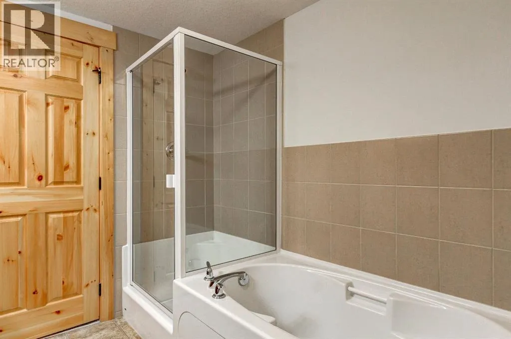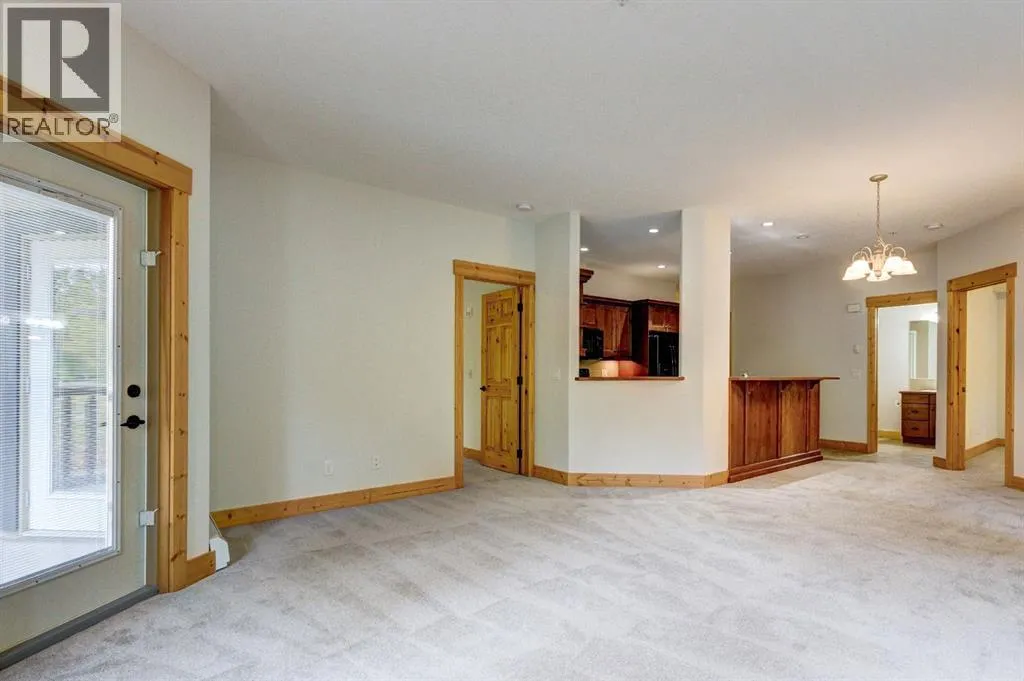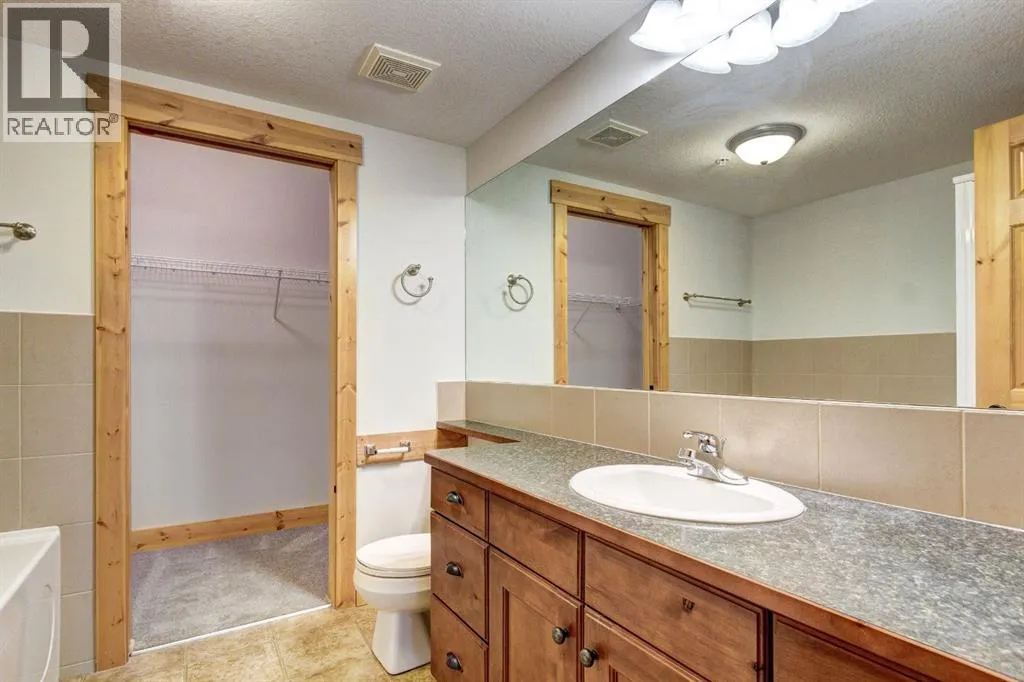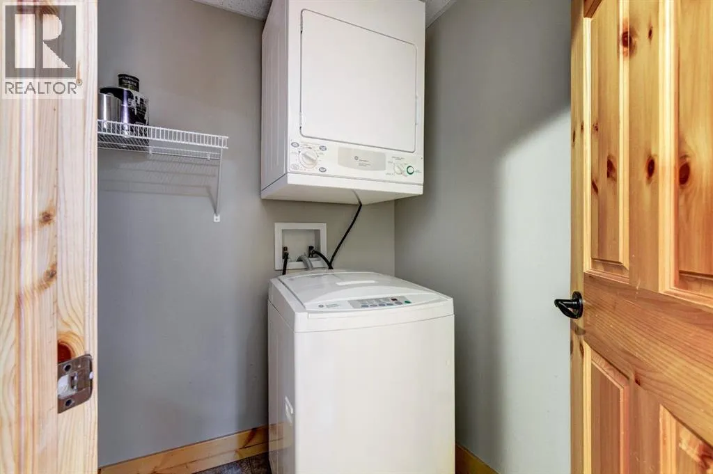 Two bedroom, two bathroom mountain retreat with amenities. Welcome to this beautifully appointed corner unit, offering breathtaking mountain views and a thoughtfully designed layout. Freshly painted throughout and with new carpet, the open concept kitchen and living area are highlighted by a cozy fireplace - perfect for relaxing after a day in the mountains. Two decks offer plenty of outdoor space to take in the stunning views. The spacious primary bedroom includes a walk-in closet and a private ensuite bath, a second bedroom, full bathroom and a dedicated laundry room complete the space. Enjoy the convenience of heated underground parking and a private storage unit . Located in a desirable, well-managed complex, residents have access to an impressive amenities centre featuring an indoor pool, indoor/outdoor hot tub, fitness room, theatre, games, rec room and guest suites. Just steps away from Canmoreâs extensive network of hiking/biking trails. Note: the complex has a 40+ age restriction to reside. (id:27476)