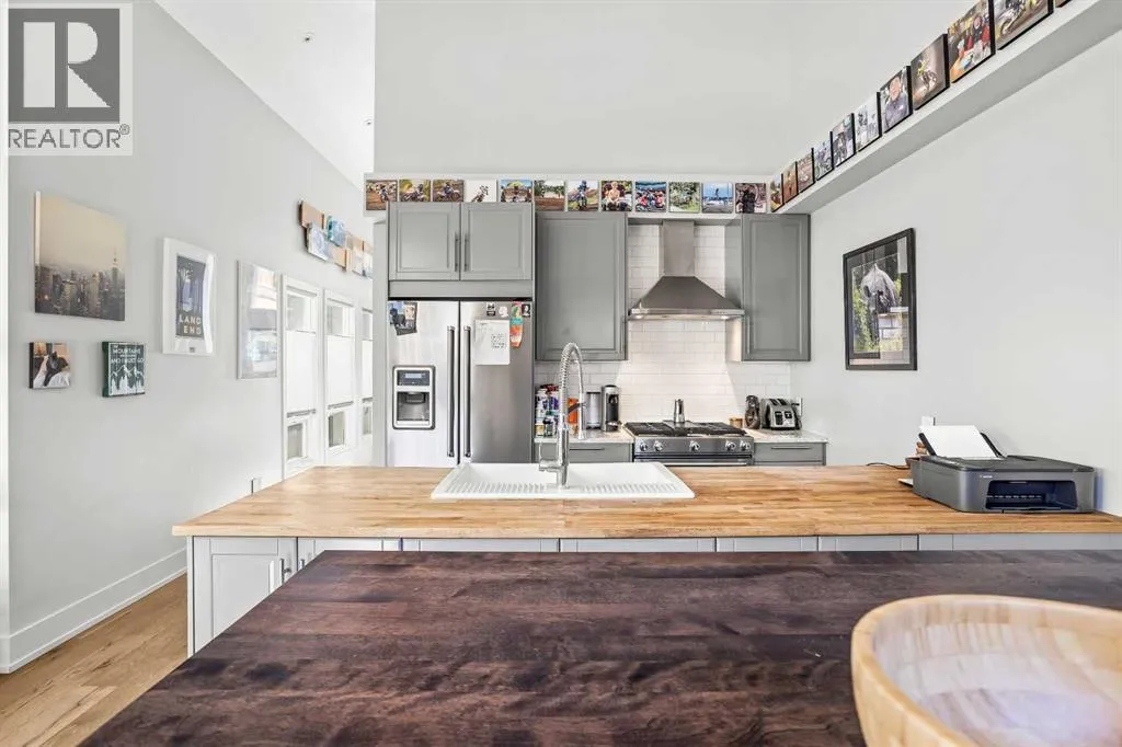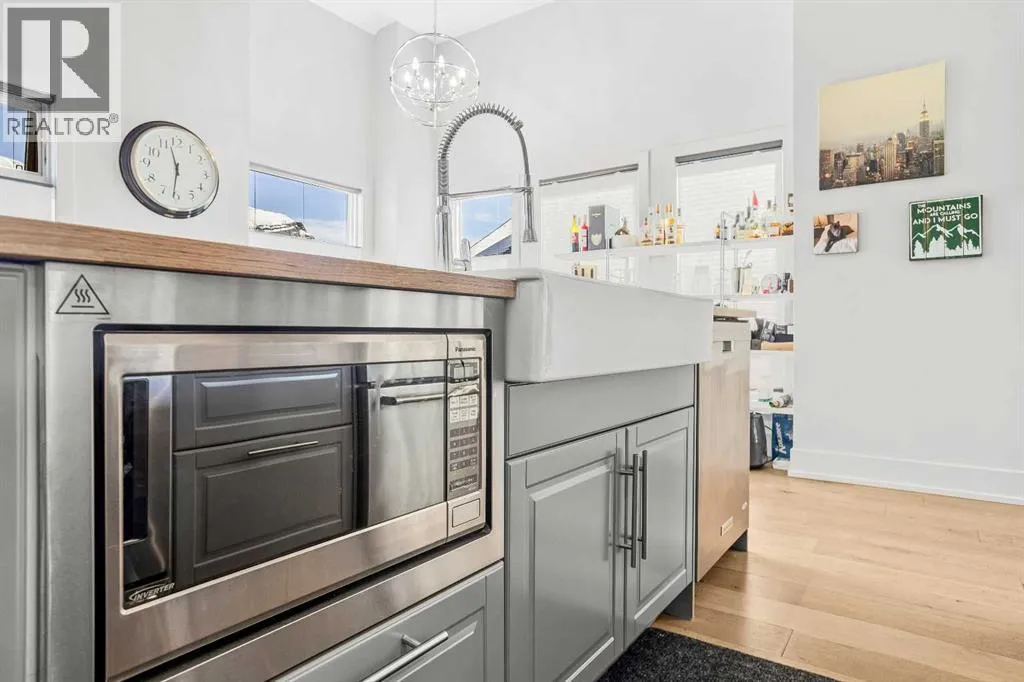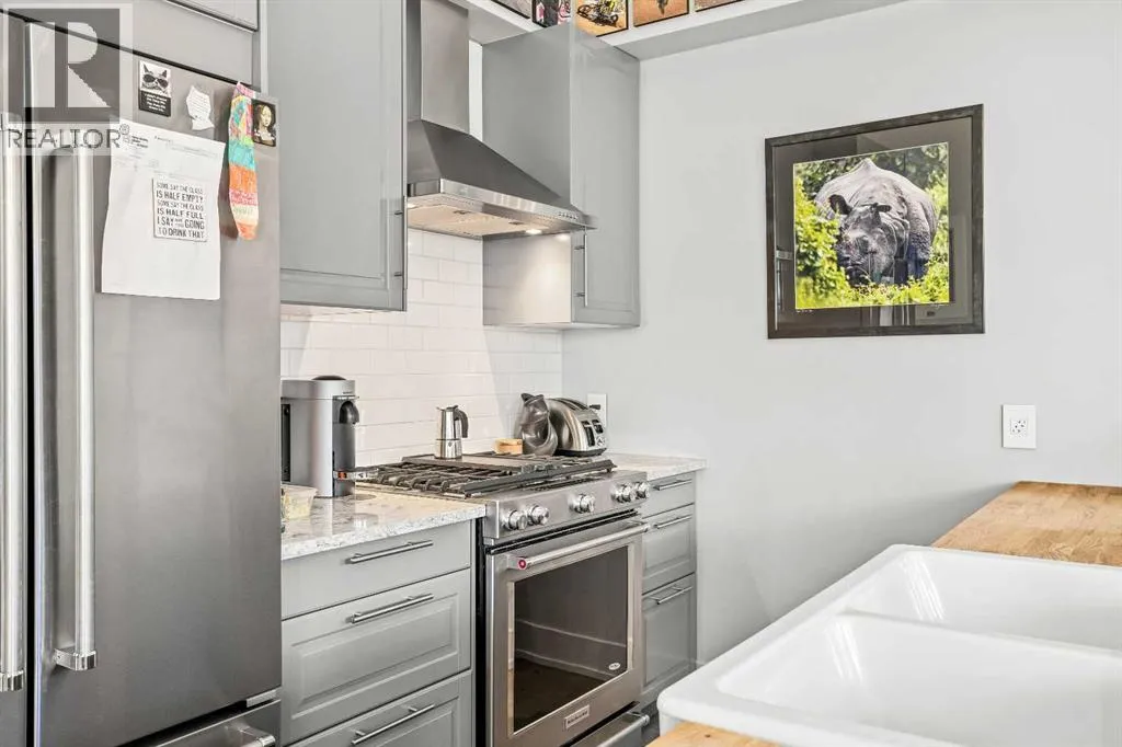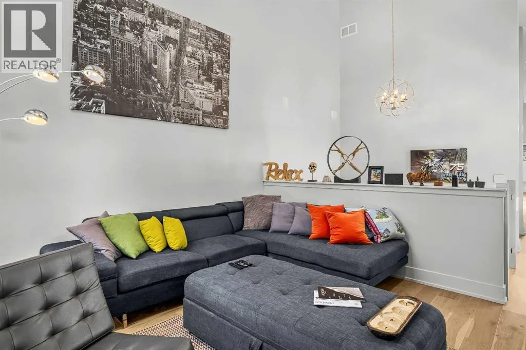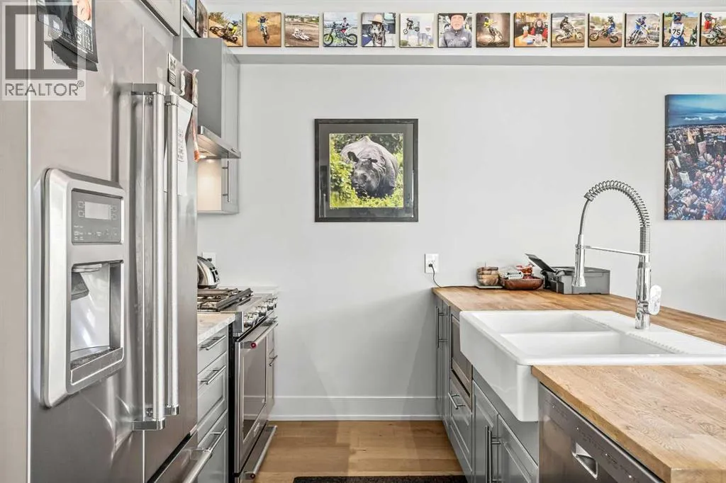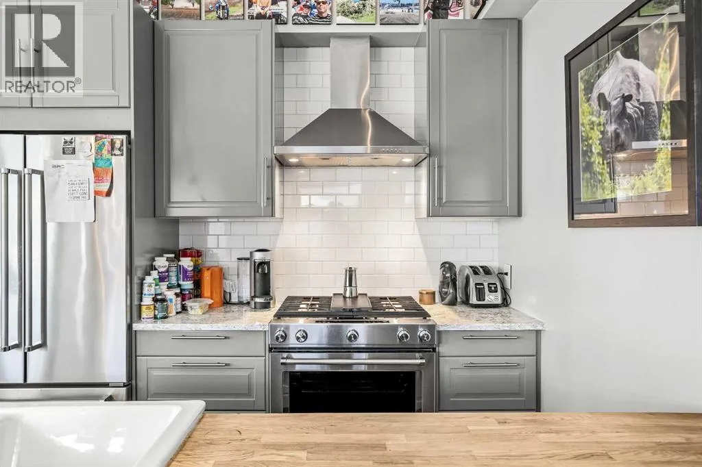 In a back row location, alongside a lovely treed hillside you'll find this well appointed, bright & spacious modern townhome. Over 3 storeys, with no one above or below you, this end unit provides serenity & pride of place in the Three Sisters of Canmore. On entry, vaulted ceilings & a glass bordered stairway leads up to the main level, or down to a handy flex space, laundry & single garage, perfect for active lifestyles. The middle floor offers 2 bedrooms, where the primary suite is an ideal respite with its own bath & generous closet space. A private balcony leads to the woods alongside. Upstairs, views are panoramic, where 3 walls of glass bring the outside in. A thoughtfully laid out kitchen sits together with the dining area & will be the heart of entertaining. Opposite, the living room inspires relaxation & calm under soaring ceilings. Finding inspired design which brings comfort & utility while also offering an environment that's "of" Canmore is a rare offering. We hope you agree! (id:27476)