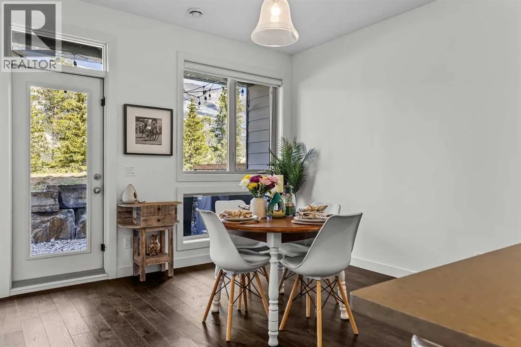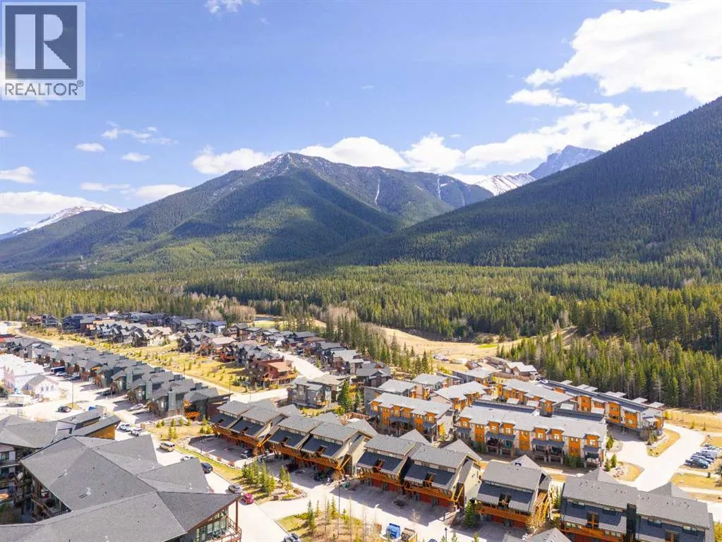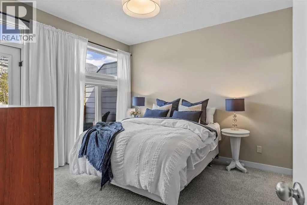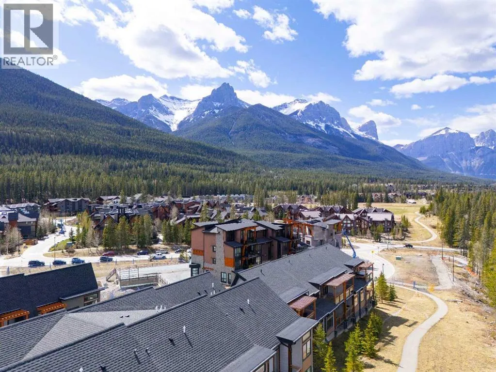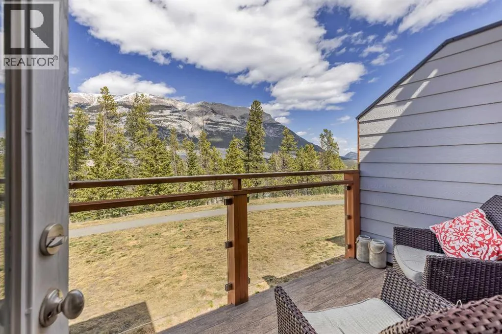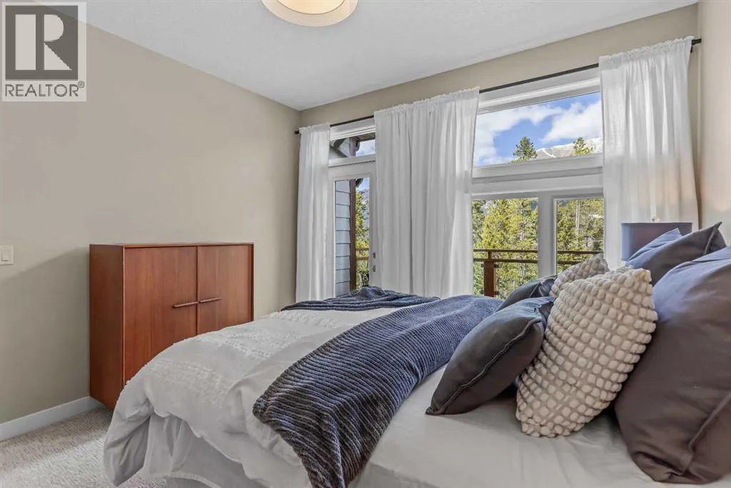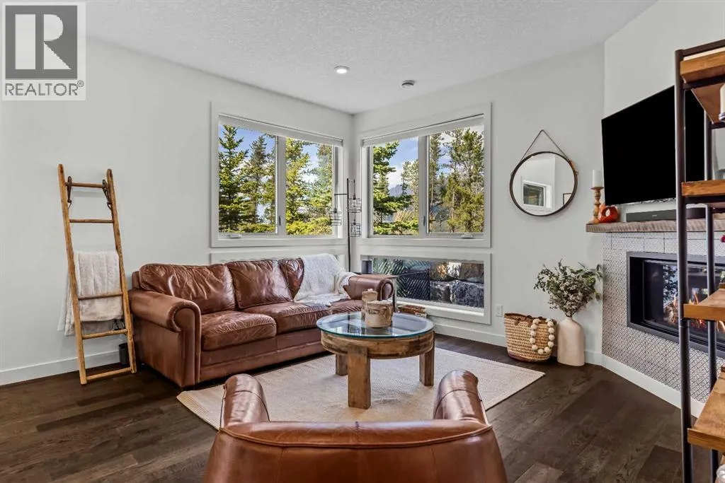 Welcome to this exclusive end-unit townhome nestled within the prestigious Three Sisters Mountain Village â a serene retreat that balances upscale design with a warm, inviting comfort. Boasting over 1,100 square feet of thoughtfully designed living space, this home delivers an effortless blend of natural beauty and modern luxury. Step inside to discover two private bedrooms, each enhanced with its own spa-like ensuite.The primary corner suite is a true sanctuary: expansive, floor-to-ceiling windows frame breathtaking mountain vistas, while a sophisticated 3-piece ensuite and a generous walk-in closet elevate the experience. The second bedroom offers its own private patio overlooking a lush, forested setting and sweeping mountain viewsâa peaceful escape enhanced by a stylish 4-piece ensuite and ample storage in its walk-in closet. The heart of thishome is the open-concept kitchen and living area, where upgraded stainless steel appliances and elegant quartz countertops set the stage for culinary adventures and memorable gatherings. The kitchen seamlessly integrates with the living space, enhanced by hardwood flooring throughout the main floor and the warmth of a tile-surrounded fireplace that invites cozy evenings by the glow of dancing flames. A unique feature of this townhome is its dual outdoor retreats. The sunken patio off the dining area overlooks a quiet green space, presenting a perfect setting for alfresco dining or unwinding with incredible mountain views. A second private patio off the second bedroom provides an inviting space to savour the fresh mountain air and watch natureâs colours shift throughout the day. Additional amenities include a convenient laundry space with stacked washer and dryer, a single- car garage, and access to a community rich in pathways, hiking trails, and parks. Positioned close to world-class golf courses, ski hills, local schools, and the soon-to-be-open Gateway shopping district, this home offers not only luxurious living but a lso an enviable location that caters to an active, yet relaxed lifestyle. Discover a home that embodies both upscale elegance and serene comfortâa perfect haven for those who value quality, style, and a connection to nature. (id:27476)