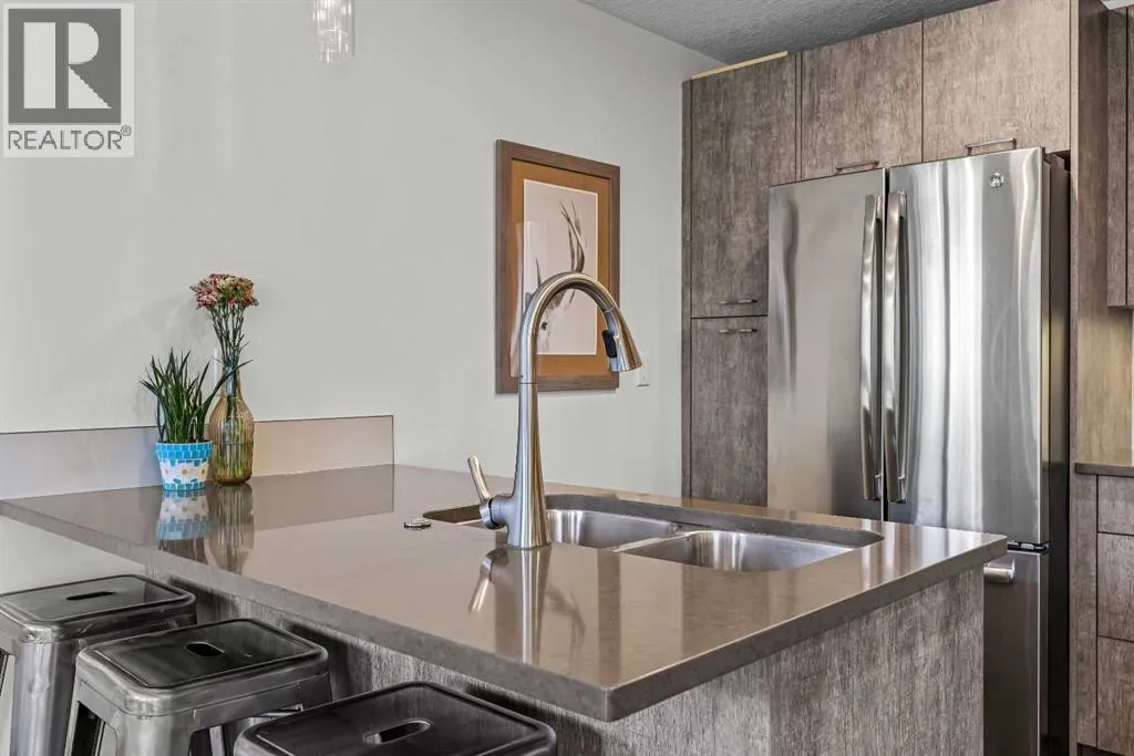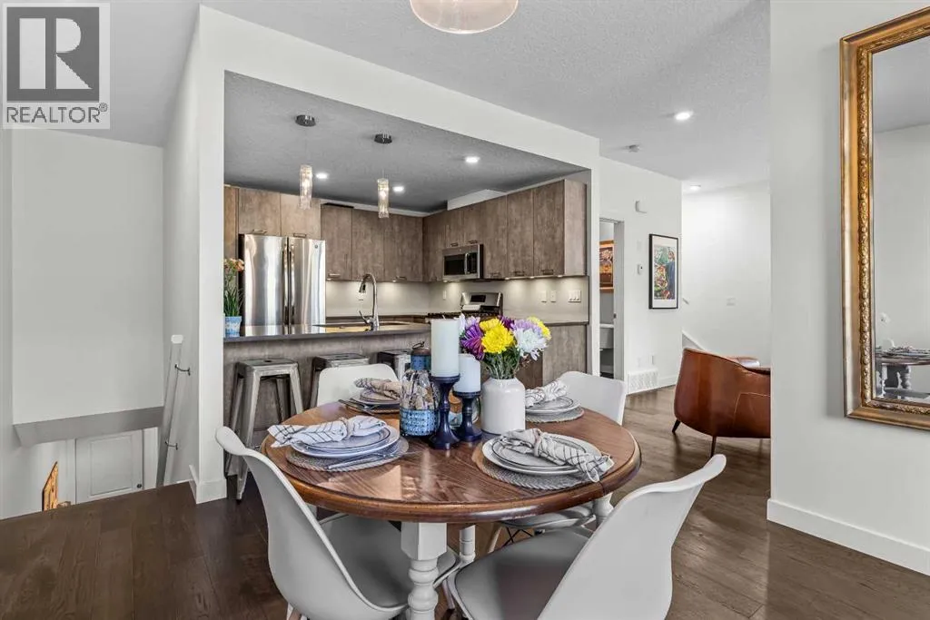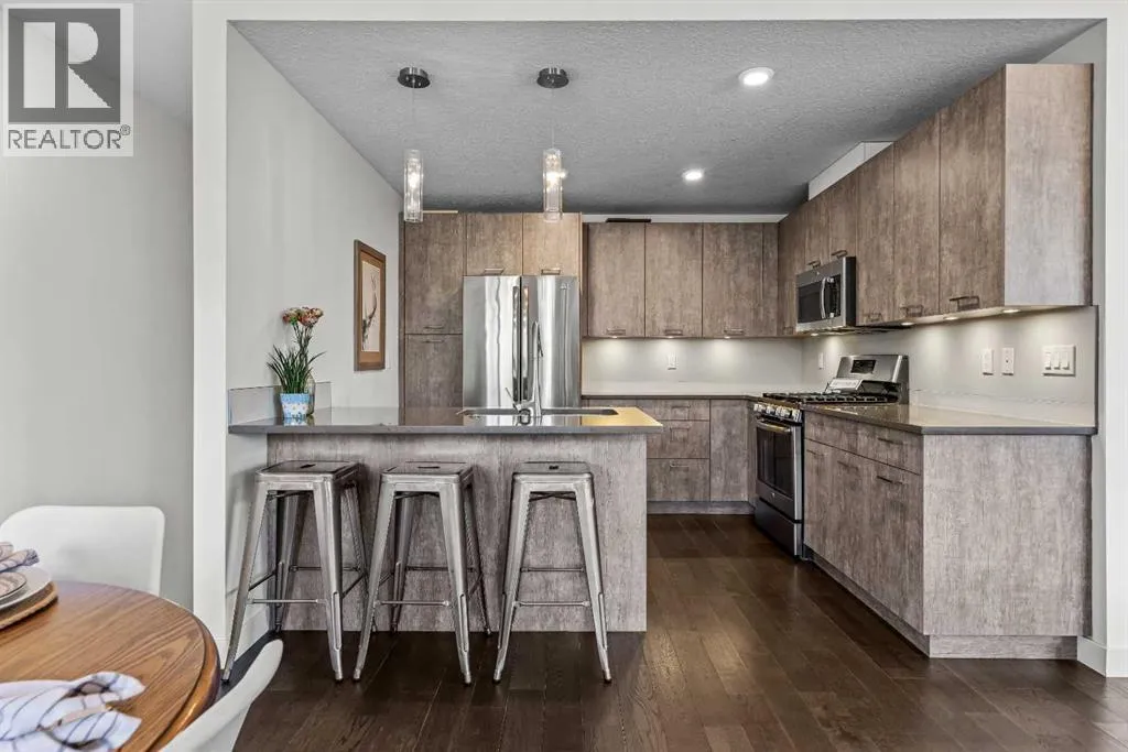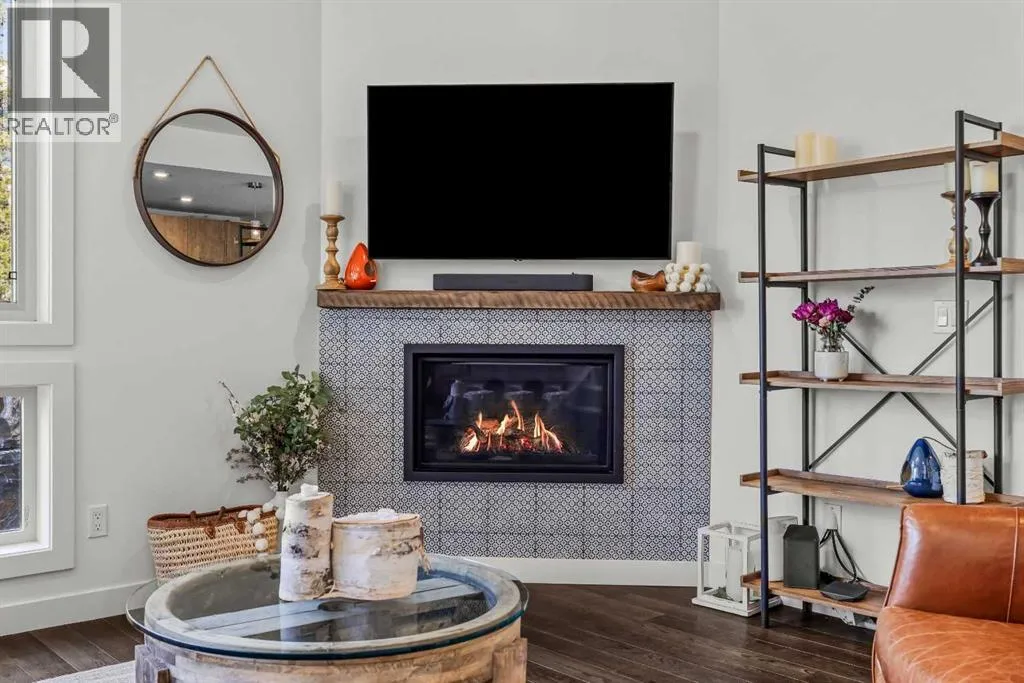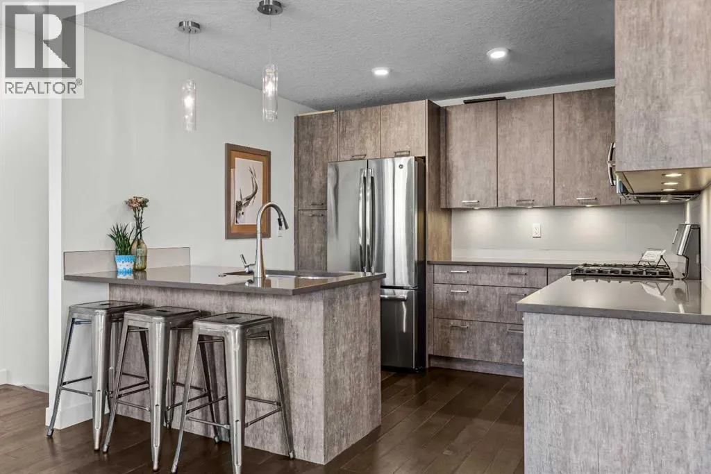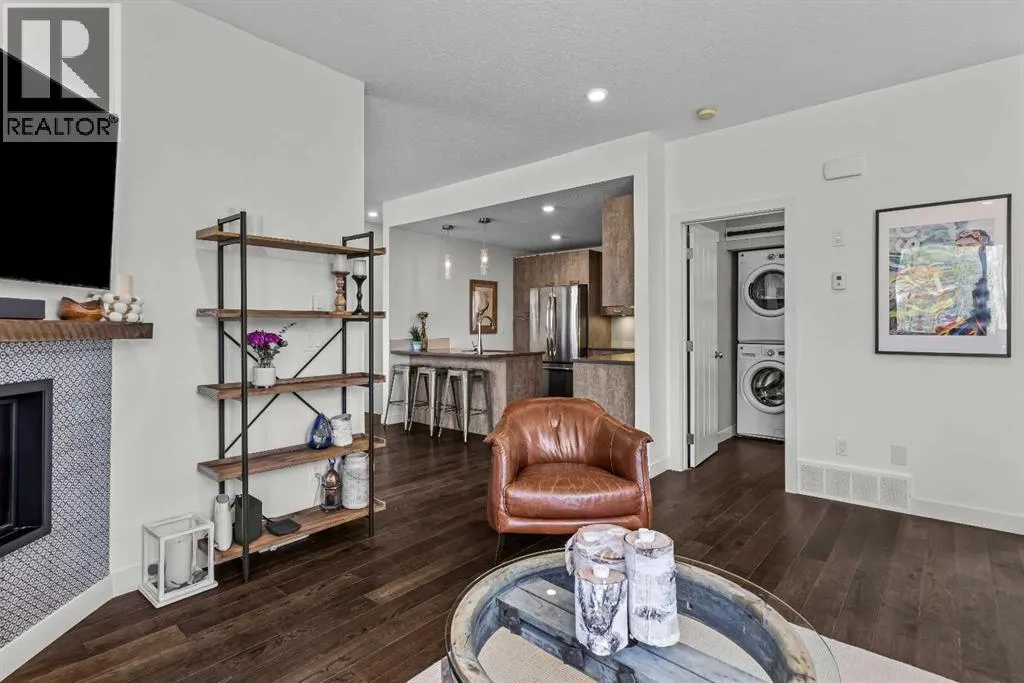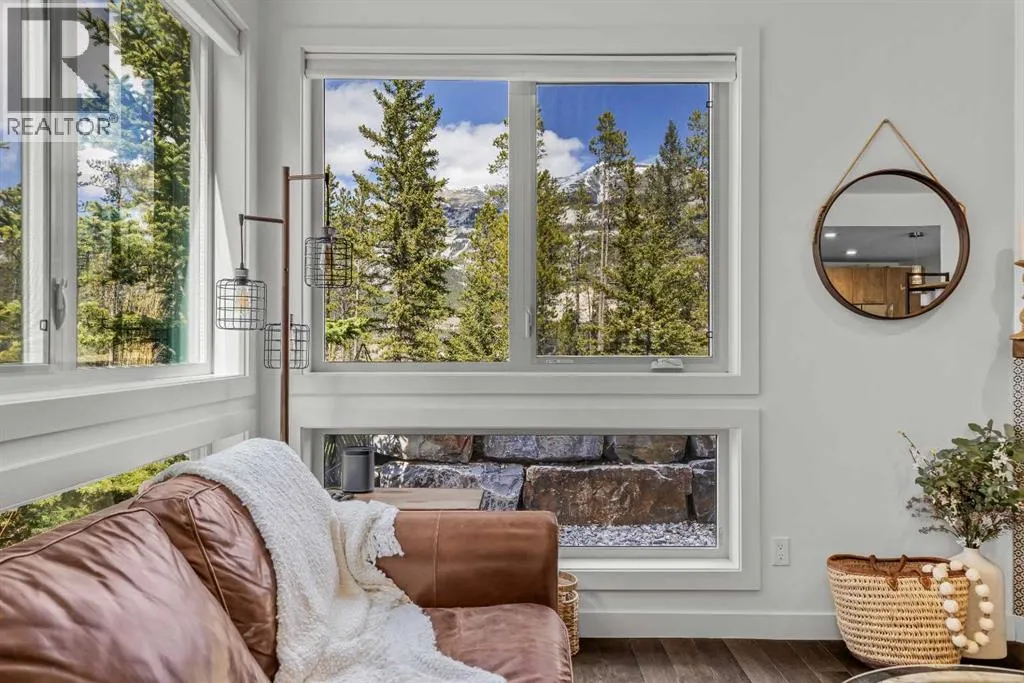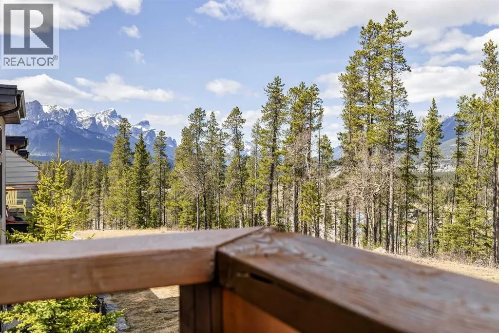 Welcome to this exclusive end-unit townhome nestled within the prestigious Three Sisters Mountain Village â a serene retreat that balances upscale design with a warm, inviting comfort. Boasting over 1,100 square feet of thoughtfully designed living space, this home delivers an effortless blend of natural beauty and modern luxury. Step inside to discover two private bedrooms, each enhanced with its own spa-like ensuite.The primary corner suite is a true sanctuary: expansive, floor-to-ceiling windows frame breathtaking mountain vistas, while a sophisticated 3-piece ensuite and a generous walk-in closet elevate the experience. The second bedroom offers its own private patio overlooking a lush, forested setting and sweeping mountain viewsâa peaceful escape enhanced by a stylish 4-piece ensuite and ample storage in its walk-in closet. The heart of thishome is the open-concept kitchen and living area, where upgraded stainless steel appliances and elegant quartz countertops set the stage for culinary adventures and memorable gatherings. The kitchen seamlessly integrates with the living space, enhanced by hardwood flooring throughout the main floor and the warmth of a tile-surrounded fireplace that invites cozy evenings by the glow of dancing flames. A unique feature of this townhome is its dual outdoor retreats. The sunken patio off the dining area overlooks a quiet green space, presenting a perfect setting for alfresco dining or unwinding with incredible mountain views. A second private patio off the second bedroom provides an inviting space to savour the fresh mountain air and watch natureâs colours shift throughout the day. Additional amenities include a convenient laundry space with stacked washer and dryer, a single- car garage, and access to a community rich in pathways, hiking trails, and parks. Positioned close to world-class golf courses, ski hills, local schools, and the soon-to-be-open Gateway shopping district, this home offers not only luxurious living but a lso an enviable location that caters to an active, yet relaxed lifestyle. Discover a home that embodies both upscale elegance and serene comfortâa perfect haven for those who value quality, style, and a connection to nature. (id:27476)