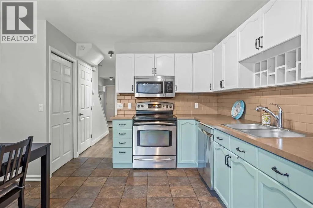 Discover the perfect blend of Location, Lifestyle, and Low Maintenance Fees! This townhouse is a must-see, featuring three levels of comfort and modern elegance. Enjoy two beautifully renovated bedrooms, 2nd bedroom includes a Murphy Bed, three bathrooms with new vanities, low-flush toilets, elegant tiles, and a custom shower in the main bathroom. The main level features a spacious kitchen, cozy gas fireplace, and sleek laminate flooring. Step out onto the landscaped areas from either the front entry and back deck. Benefit from one designated parking stall, along with access to 18 visitor parking spots. Nestled at the back row of a fenced complex, this property offers a tranquil and private setting, away from the main entrance and parking areas. Bask in ample sunlight throughout the day and soak in mountain views from both the East and South. The large, finished basement provides abundant storage space and a renovated 3rd bathroom. (id:27476)