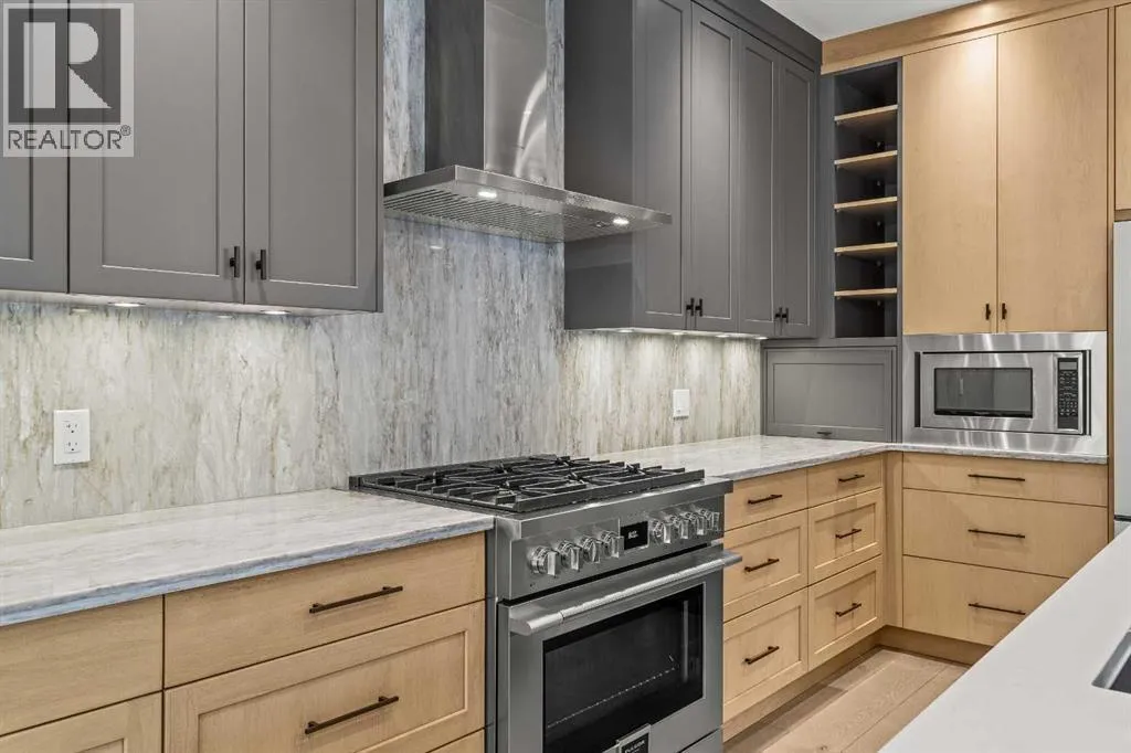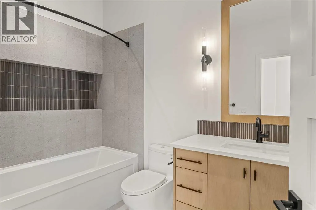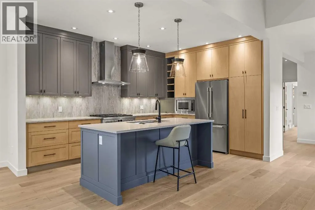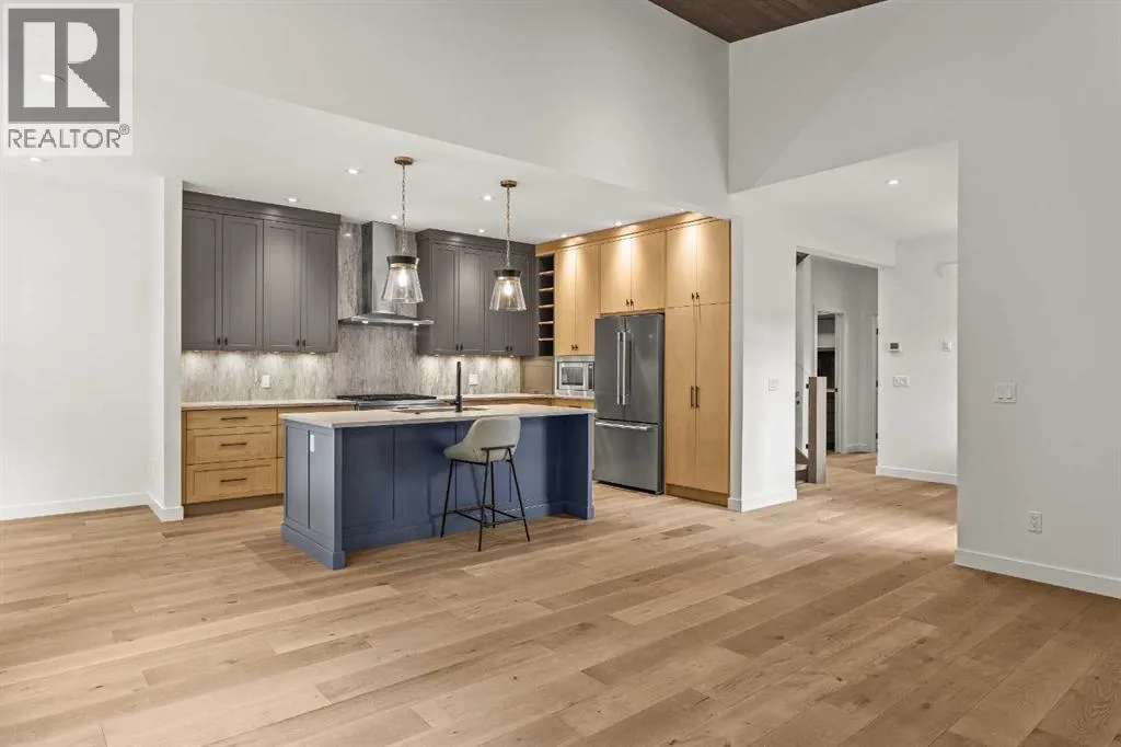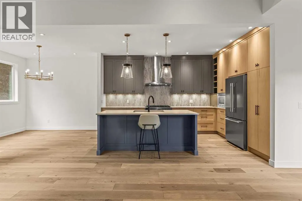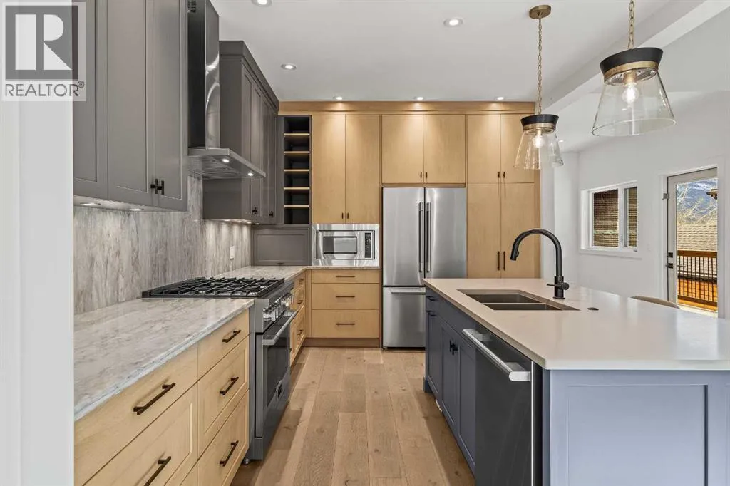 This BRAND NEW, 2800SF, 4 bedroom half duplex effortlessly combines elegance, practicality, and the beauty of nature! The gourmet kitchen, with its custom cabinetry, Fulgor Milano appliances, and sprawling quartz countertops - a dream for any chef - while the lower-level rec room & built-in storage solutions ensure entertaining & everyday living are stylish & convenient. Enjoy not 1, not 2, but 4 outdoor living areas plus a covered back porch off the ground level. Gorgeous hardwood floors & a vaulted wood ceiling add warmth & charm, framing the serene privacy in the treed backyard with no neighbors. Situated on a quiet street just minutes from downtown Canmore, this home offers unparalleled access to outdoor adventures like the Canmore Nordic Center and Bow River trails, all while providing a serene space to unwind and enjoy the surrounding tranquility. Donât miss the chance to make this extraordinary lifestyle your own! (id:27476)