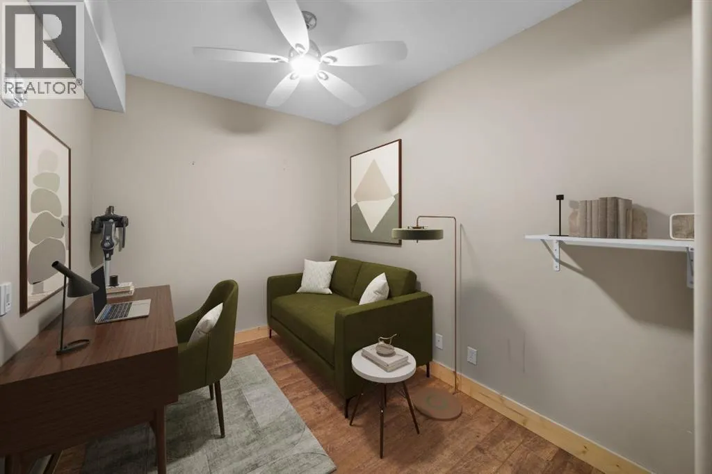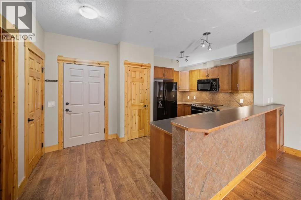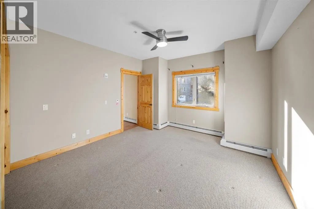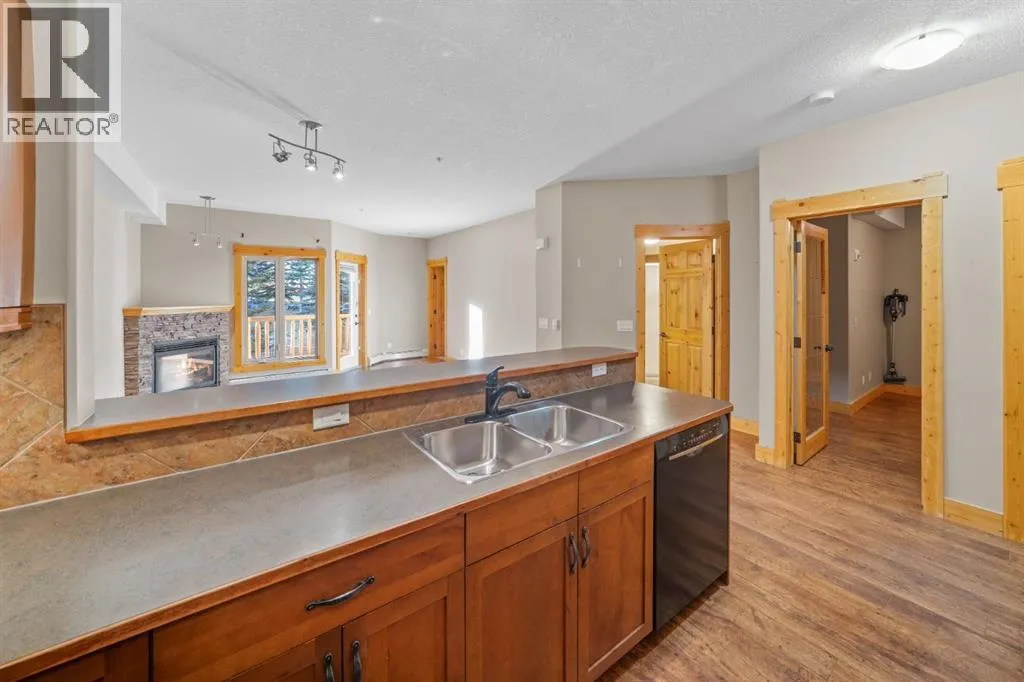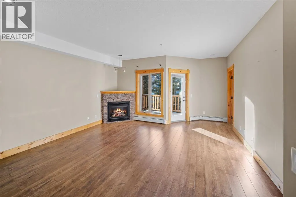 Welcome to 204 â 175 Crossbow Landing, a beautifully maintained single-level residence in one of Canmoreâs most sought-after adult communities. Thoughtfully designed for comfort and connection, this one bedroom plus den, two-bathroom home offers a bright and inviting retreat framed by breathtaking southern views of the Three Sisters. The primary bedroom has mountain vistas and an ensuite bathroom. The second bedroom / den is a wonderful home office, craft room or guest space.Natural light fills the open-concept living area through expansive windows, while the private balcony provides the perfect place to enjoy morning coffee or evening alpenglow over the peaks. The well-appointed kitchen and generous dining area create a warm gathering space for friends and family, complemented by a cozy living room anchored by a gas fireplace.Crossbow Place residents enjoy access to an exceptional amenities buildingâcomplete with fitness facilities, a lounge, games area, pool and hot tubâas well as a vibrant social calendar that fosters a true sense of community. Guest suites are available for visiting friends and family, allowing you to extend your hospitality with ease.From your doorstep, a network of scenic pathways leads along the Bow River to downtown Canmore or toward the new Gateway commercial area with cafés, shops, and services. Whether youâre seeking an active lifestyle or a peaceful retreat, this south-facing home combines low-maintenance living with the beauty and camaraderie of mountain life. (id:27476)