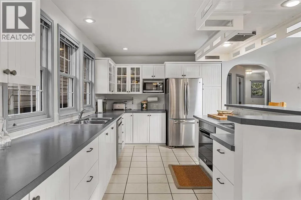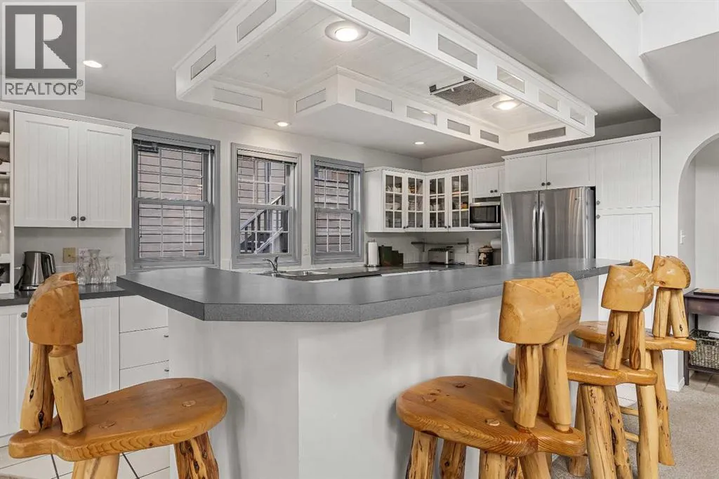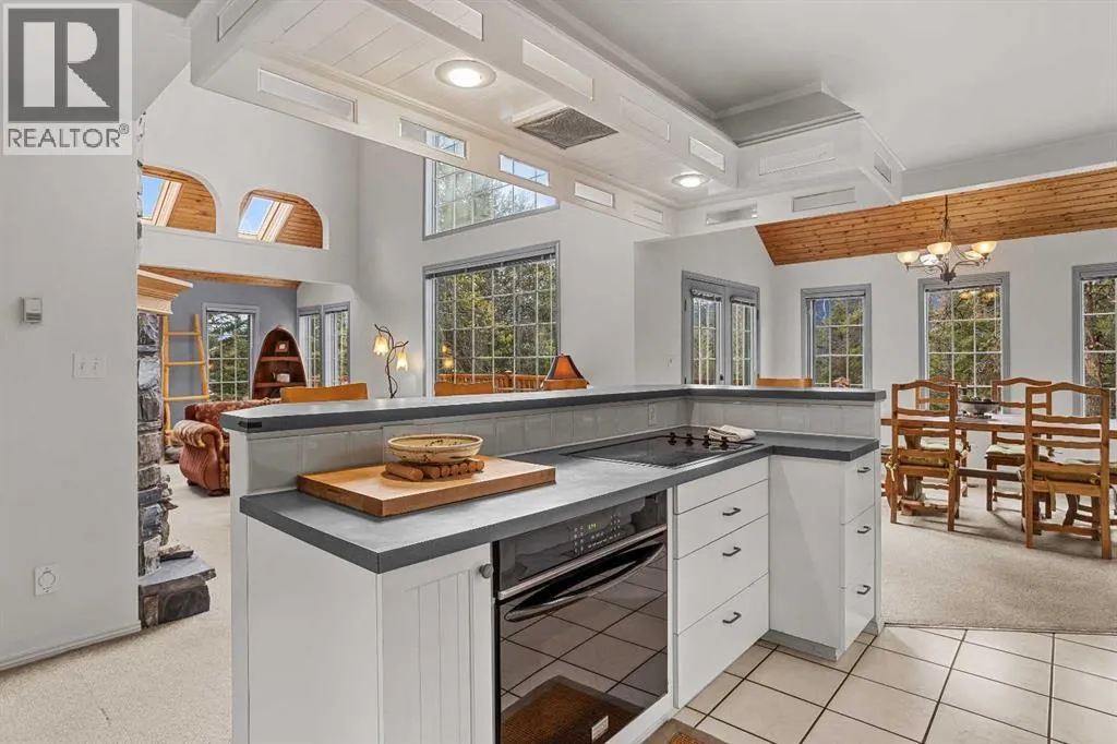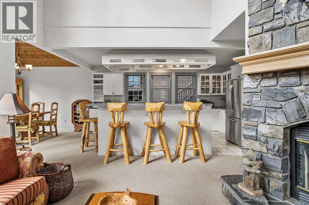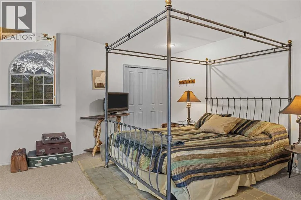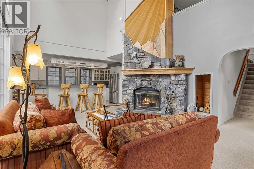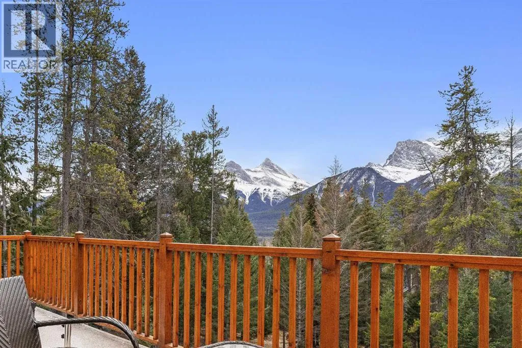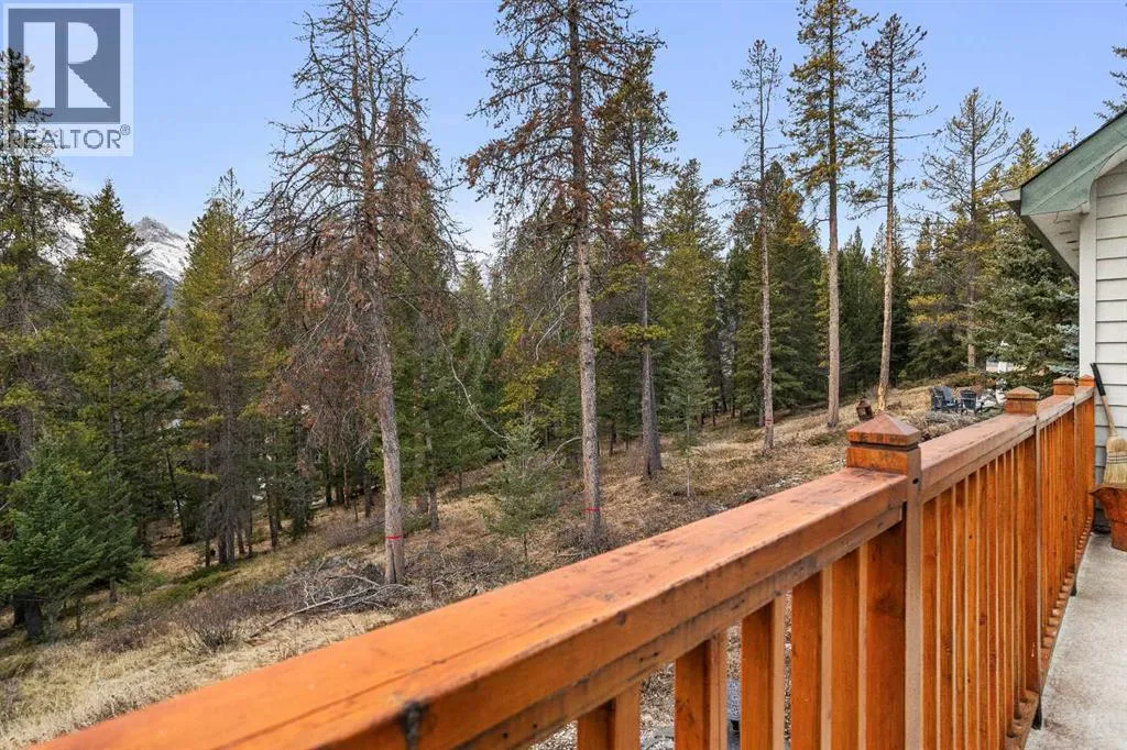 Epic mountain views and timeless character define this stunning 2400 sq ft home, hugged in mountain light with a perfect blend of forest and and south west peak views including 3 Sisters and Lawrence Grassi . The main level welcomes you with a generous foyer and leads into a great room flooded with natural light and a feeling of space with soaring ceilings. A floor-to-ceiling stone fireplace with custom millwork anchors the living area, setting the tone for cozy mountain evenings. The massive kitchen offers an eat-up bar, abundant cabinetry, and a dining area wrapped in windows â the perfect place to gather and take in the views. Upstairs, the primary suite has an ensuite and office nook open to the main level. The walkout level features three additional bedrooms, a large family room, and full bathroom plus access to a tranquil lower patio surrounded by forest. Outdoor living is exceptional with a wrap-around front verandah for sunrise coffee, a sunny back deck for BBQs, and a lower area ready for your own Nordic-style spa â space for a hot tub, cold plunge, and sauna. The yard feels like youâre alone in nature, yet youâre just a short stroll from downtown Canmoreâs cafés, trails, and shops. This well-cared-for home is far from cookie-cutter â a true mountain escape that blends thoughtful design, privacy, and that one-of-a-kind feeling of light, calm, and connection to nature only found in the Rockies. (id:27476)