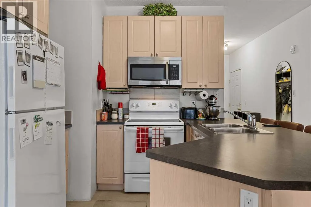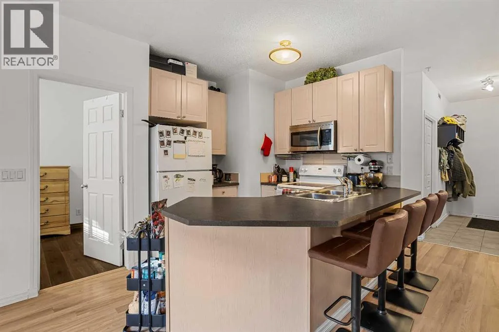 This bright and open 2-bedroom, 1 bath condo offers 654 sq. ft. of functional living space in a pet-friendly building. Enjoy the comfort of secure, heated underground parking with additional storage. Just steps from the Shops of Canmore, where youâll find restaurants, shopping, and access to public transit routes throughout Canmore and to Banff. Numerous walking and biking trails connect you to downtown and the surrounding natural beauty. Ideal for first-time home buyers or as a long-term rental investment, this well-cared-for condo is not to be missed.Please note: At least one occupant must work a minimum of 20 hours per week in the Bow Valley. (id:27476)