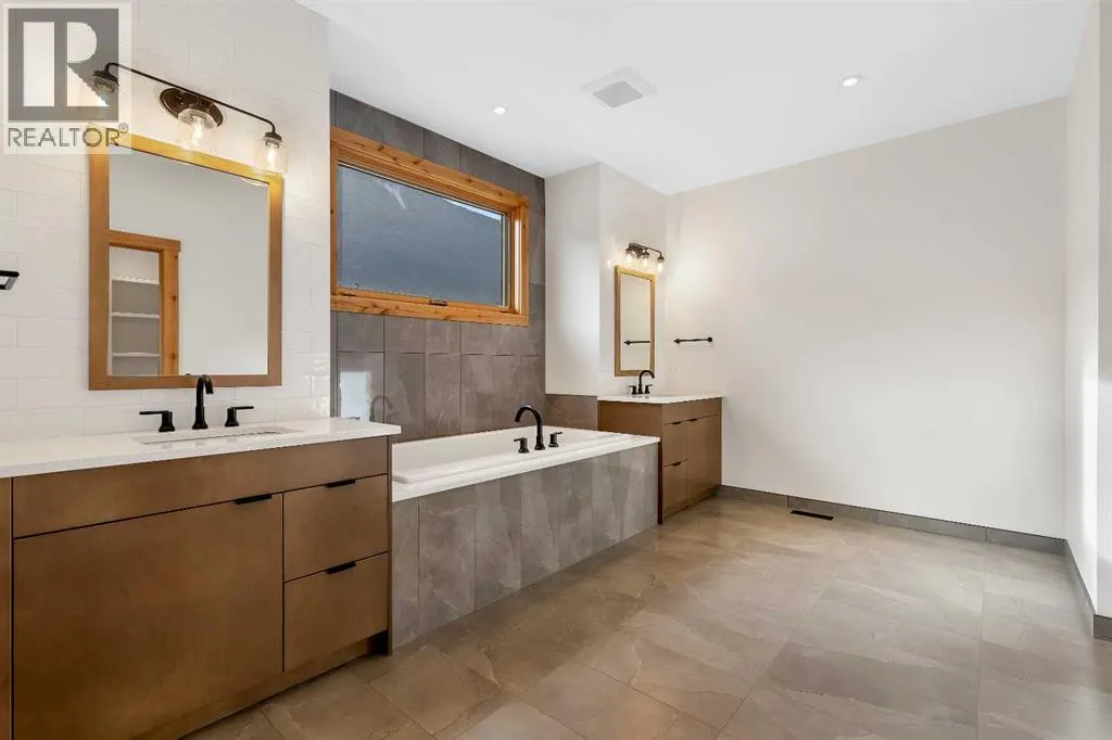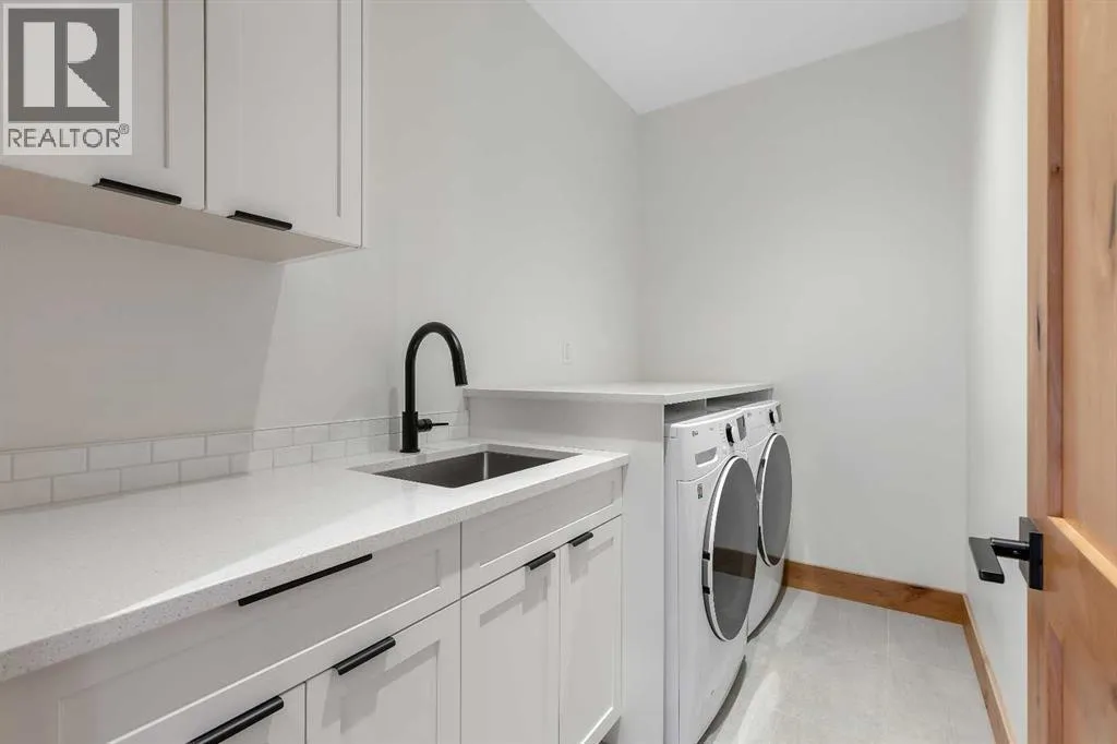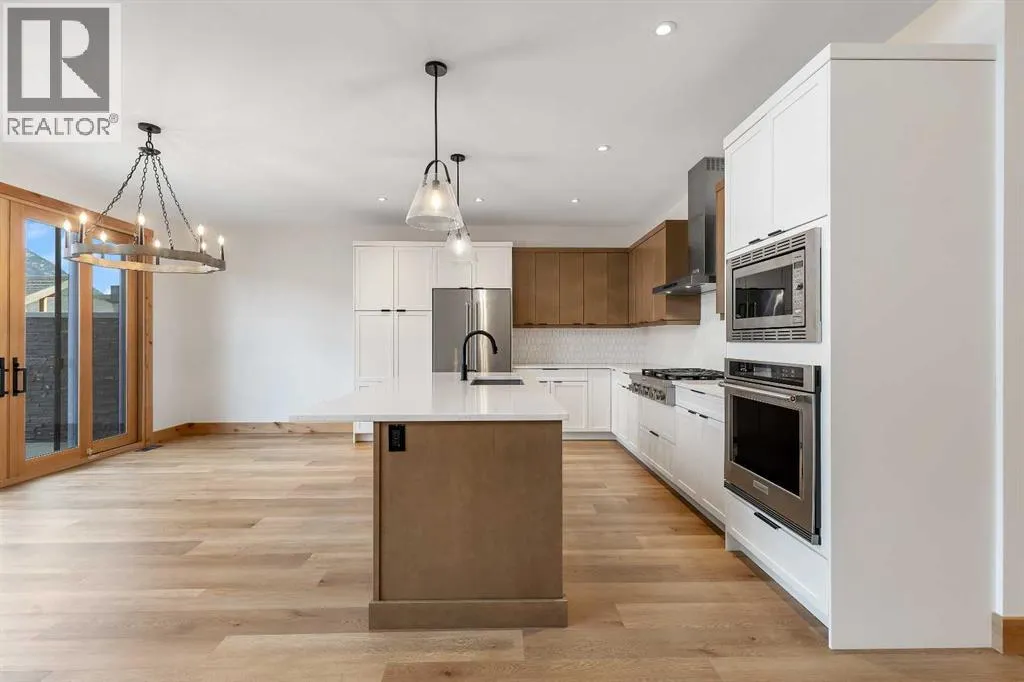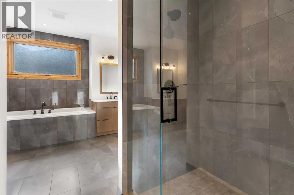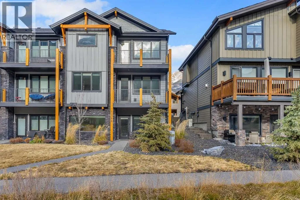 Luxury Duplex Panoramic Rocky Mountain & Golf Course Views.Discover the perfect blend of refined design and natural grandeur in this luxury duplex overlooking Stewart Creek Golf Course with sweeping, unobstructed views of the Rockies from the Three Sisters to the Rundle Range and all the way towards Banff. Built for both comfort and style, this exceptional residence offers a versatile ownership opportunity as a full-time sanctuary, retirement, vacation retreat, or income property.Step inside over 3,000 sq. ft. of total living space featuring an open-concept main living area with oversized windows that flood the interior with natural light and frame the mountain vistas. Thoughtfully planned for modern living, the home showcases high end finishes, clean lines, and functional design that elevates everyday living. The main floor welcomes you with a wide foyer featuring a barn-door-style closet crafted from premium materials, leading to a spacious mudroom and an oversized, fully insulated double garage with electrical rough-in for EV charging. This level also offers two generously sized bedrooms, one with its own private balcony and walk-in closet complete with a premium closet system, a functional 5-piece bathroom, and a laundry room with sink. Upstairs, vaulted ceilings and a stone fireplace greet you in the expansive living and dining area, flooded with natural light from huge windows and opening onto a full-size balcony with breathtaking mountain views. The gourmet kitchen is equipped with premium built-in appliances, dual stone cabinets, Silgranite sinks, and custom cabinetry. The upper-floor primary suite is a luxurious retreat, featuring its own balcony with sweeping mountain vistas, a 5-piece ensuite with dual sinks, an oversized tub, a standing shower, and a walk-in closet with custom wood cabinetry. An additional 2-piece bathroom and extra storage closet complete this level. The fully finished walkout basement is a legal 2-bedroom suite with a 4-piece bath, functional kitchen, dining, and living areas, plus abundant storage, all opening to a fully landscaped backyard â perfect for rental income, guests, or extended family. Every detail of this residence combines luxury, functionality, and the unparalleled Canmore mountain lifestyle. Ideally located just 10 minutes from all schools, elementary, junior high, and high school, as well as Canmore General Hospital, Three Sisters Park, Creek Trail Golf Course, soccer fields, and the Bow River Campground, this home offers unparalleled convenience alongside the breathtaking Bow Valley lifestyle. (id:27476)