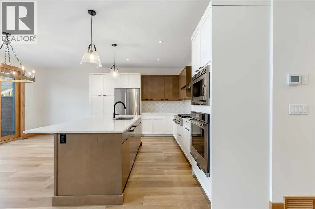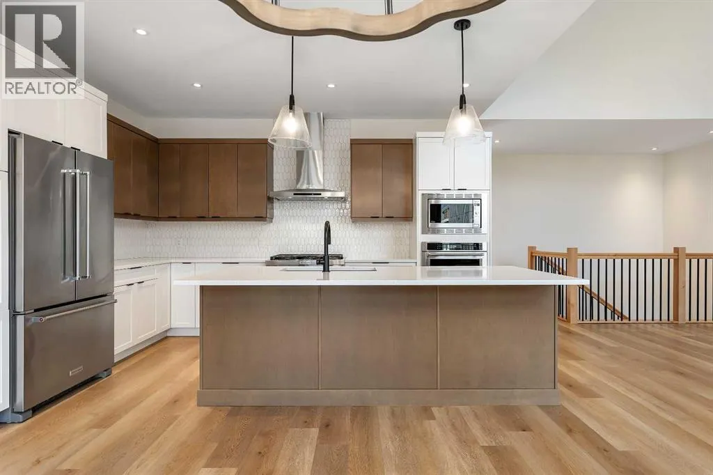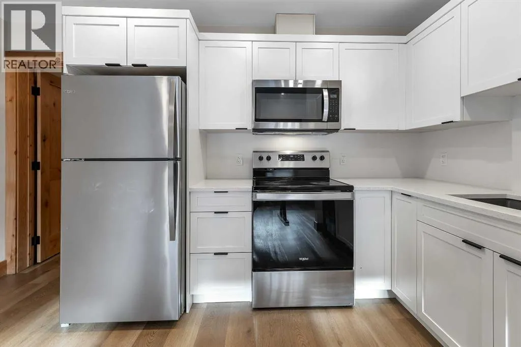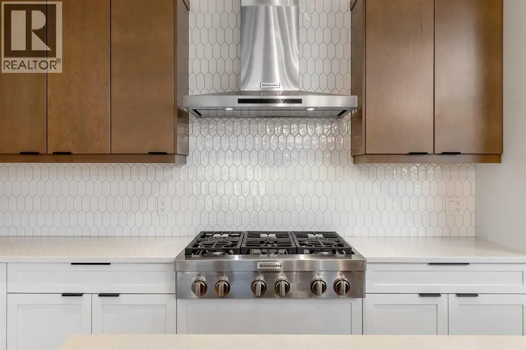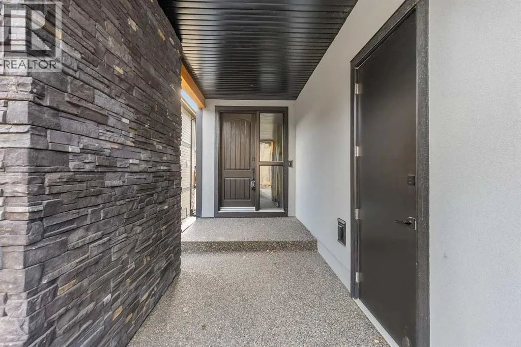 Luxury Duplex Panoramic Rocky Mountain & Golf Course Views.Discover the perfect blend of refined design and natural grandeur in this luxury duplex overlooking Stewart Creek Golf Course with sweeping, unobstructed views of the Rockies from the Three Sisters to the Rundle Range and all the way towards Banff. Built for both comfort and style, this exceptional residence offers a versatile ownership opportunity as a full-time sanctuary, retirement, vacation retreat, or income property.Step inside over 3,000 sq. ft. of total living space featuring an open-concept main living area with oversized windows that flood the interior with natural light and frame the mountain vistas. Thoughtfully planned for modern living, the home showcases high end finishes, clean lines, and functional design that elevates everyday living. The main floor welcomes you with a wide foyer featuring a barn-door-style closet crafted from premium materials, leading to a spacious mudroom and an oversized, fully insulated double garage with electrical rough-in for EV charging. This level also offers two generously sized bedrooms, one with its own private balcony and walk-in closet complete with a premium closet system, a functional 5-piece bathroom, and a laundry room with sink. Upstairs, vaulted ceilings and a stone fireplace greet you in the expansive living and dining area, flooded with natural light from huge windows and opening onto a full-size balcony with breathtaking mountain views. The gourmet kitchen is equipped with premium built-in appliances, dual stone cabinets, Silgranite sinks, and custom cabinetry. The upper-floor primary suite is a luxurious retreat, featuring its own balcony with sweeping mountain vistas, a 5-piece ensuite with dual sinks, an oversized tub, a standing shower, and a walk-in closet with custom wood cabinetry. An additional 2-piece bathroom and extra storage closet complete this level. The fully finished walkout basement is a legal 2-bedroom suite with a 4-piece bath, functional kitchen, dining, and living areas, plus abundant storage, all opening to a fully landscaped backyard â perfect for rental income, guests, or extended family. Every detail of this residence combines luxury, functionality, and the unparalleled Canmore mountain lifestyle. Ideally located just 10 minutes from all schools, elementary, junior high, and high school, as well as Canmore General Hospital, Three Sisters Park, Creek Trail Golf Course, soccer fields, and the Bow River Campground, this home offers unparalleled convenience alongside the breathtaking Bow Valley lifestyle. (id:27476)