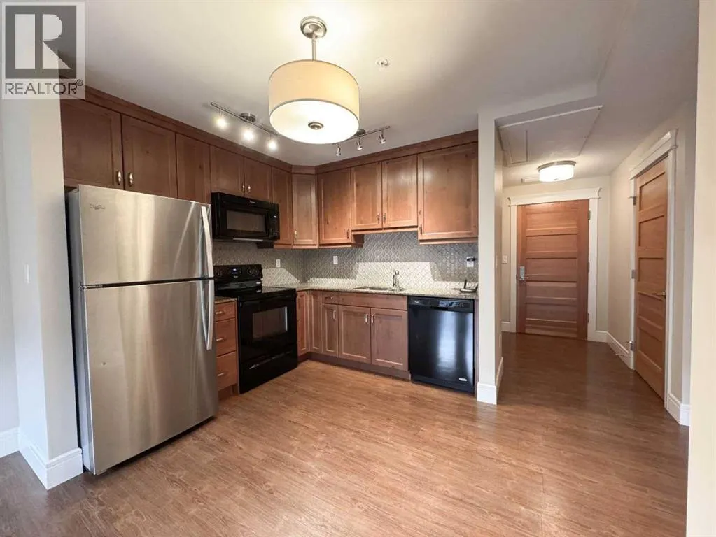 Catering to age 65+, this well appointed south facing 1 bedroom, 1 bathroom 3rd floor seniors condo at Origin at Spring Creek offers active living in a safe and secure building. On-site amenities include a pool, craft room, fitness rooms, theatre, weekly housekeeping, emergency call button to the front desk, and 12 meals per month at the dining room. Additional meals, parking and storage are available for a fee. There is a full service salon and a pub also located in the building. With great mountain views, this condo is ideal for investment or full time living. Origin is located close to all town amenities, with shops and restaurants just steps away. (id:27476)