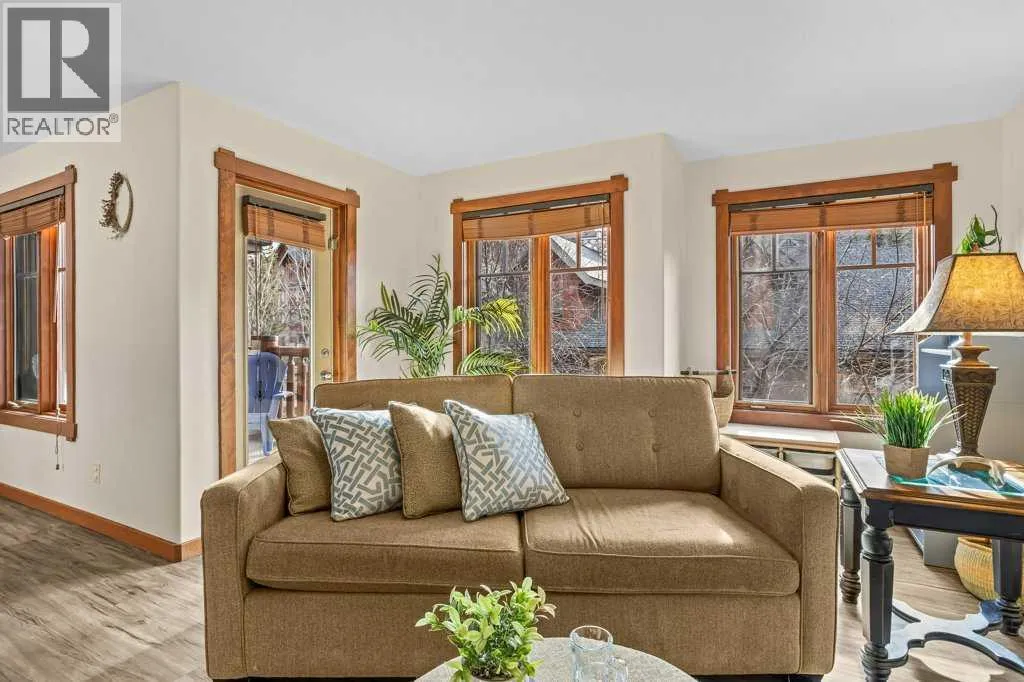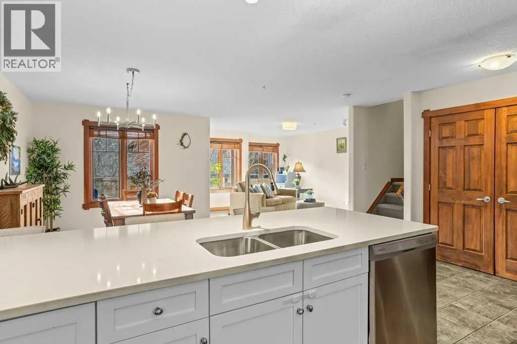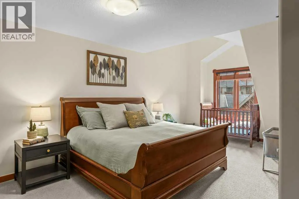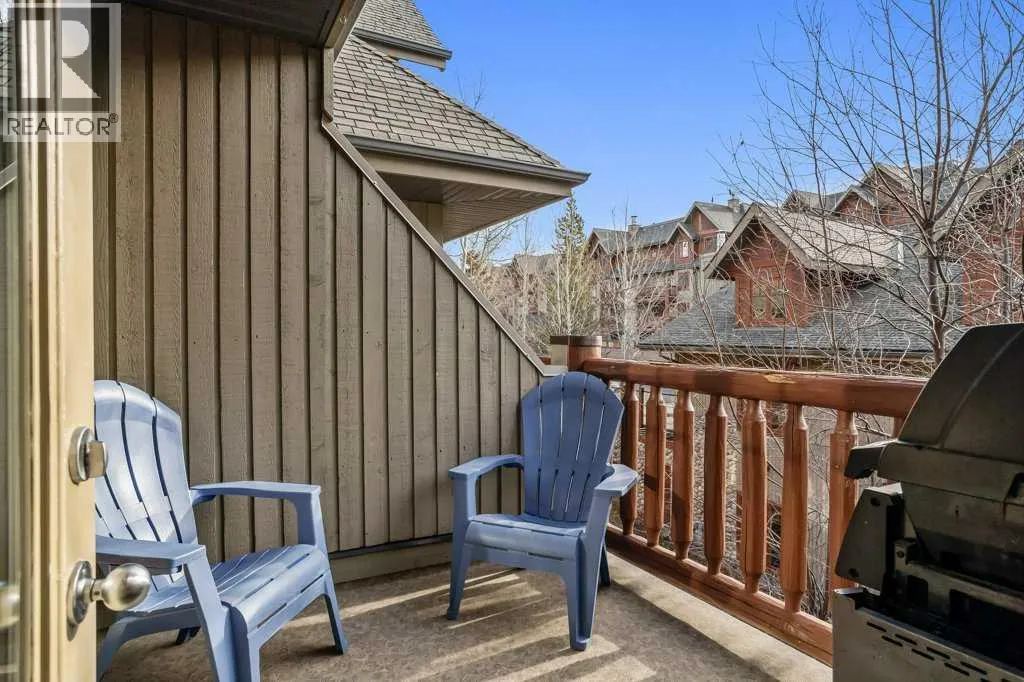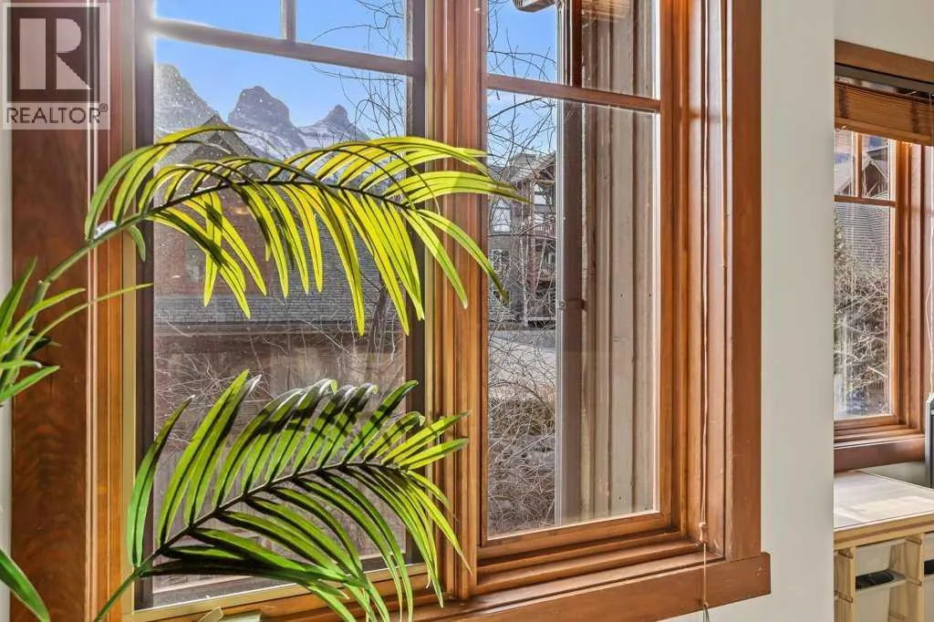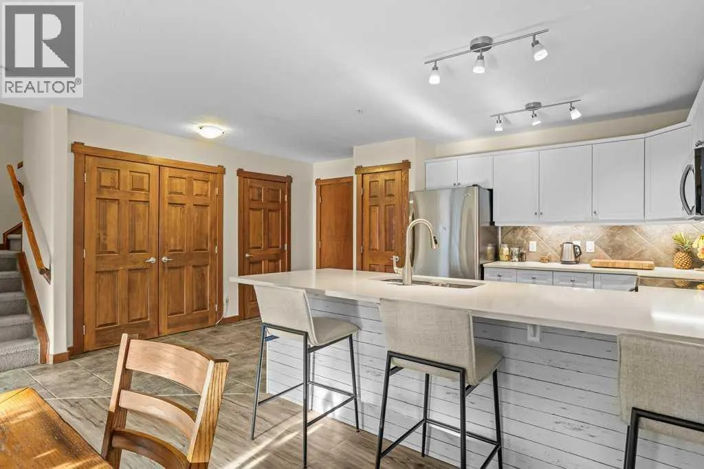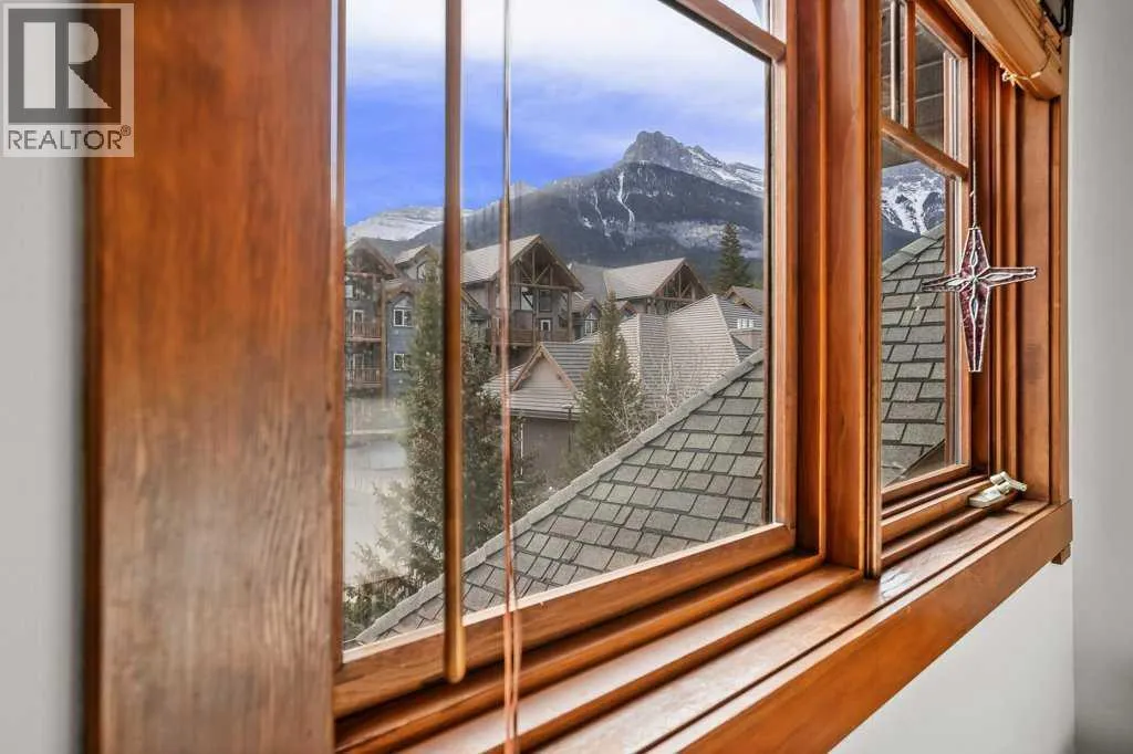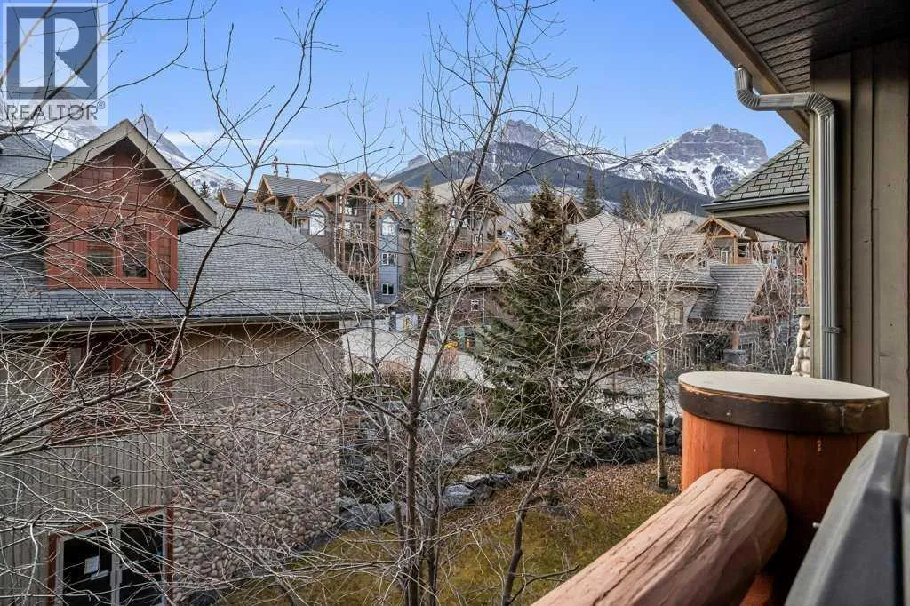 Direct views of the iconic Three Sisters mountains from every SW facing window from this top floor penthouse! Enjoy the expansive 1,348 sq.ft. living space spread across multiple levels, providing privacy and comfort for families or entertaining guests. The large kitchen / dining / living area is larger than most apartment or townhouse style properties in Canmore at the affordable end of the market creating a great place to relax and enjoy your time with others. There have been thoughtful and bright upgrades to the flooring, quartz kitchen counter top, and cabinets throughout giving it a warm mountain feel with a modern touch. The 2 large bedrooms upstairs have attractive ceiling lines, solid wood doors throughout and versatile layouts that allow for extra furniture like a sofa, work station, kids play area etc⦠A popular feature are the 2 titled parking stalls that come with the unit and a storage locker located at the end of the indoor parking stall. Crossbow has one of the best clubhouses in any building in Canmore with features you will not find elsewhere including: 2 hot tubs (one indoor and one outdoor), dry sauna, a sizable and well equipped gym, 2 pool tables, a ping pong table and lounge area / library. The Three Sisters area is a gateway to endless activities, including direct access to an extensive network of forest trails, from leisurely strolls along the Bow River Pathway to challenging scrambles up Ha Ling Peak. Explore the Three Sisters Pathway, enjoy kayaking or paddle boarding on Quarry Lake, disc golf, or cross-country skiing at the Canmore Nordic Centre. Crossbow is ideally located just a few steps away from the Bow River where you can catch the evening sun setting over Rundle Mountain or try your hand at fishing just out your door. The Three Sisters community is growing, with future plans for retail, office, and restaurant spaces at "The Gateway," including an IGA grocery store. Canmore's charming downtown is just a short drive or bike ride away . (id:27476)