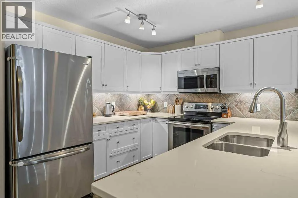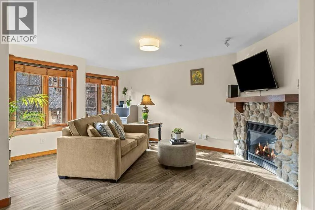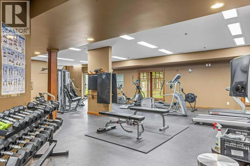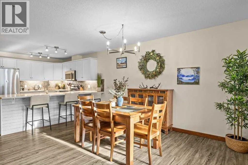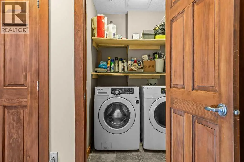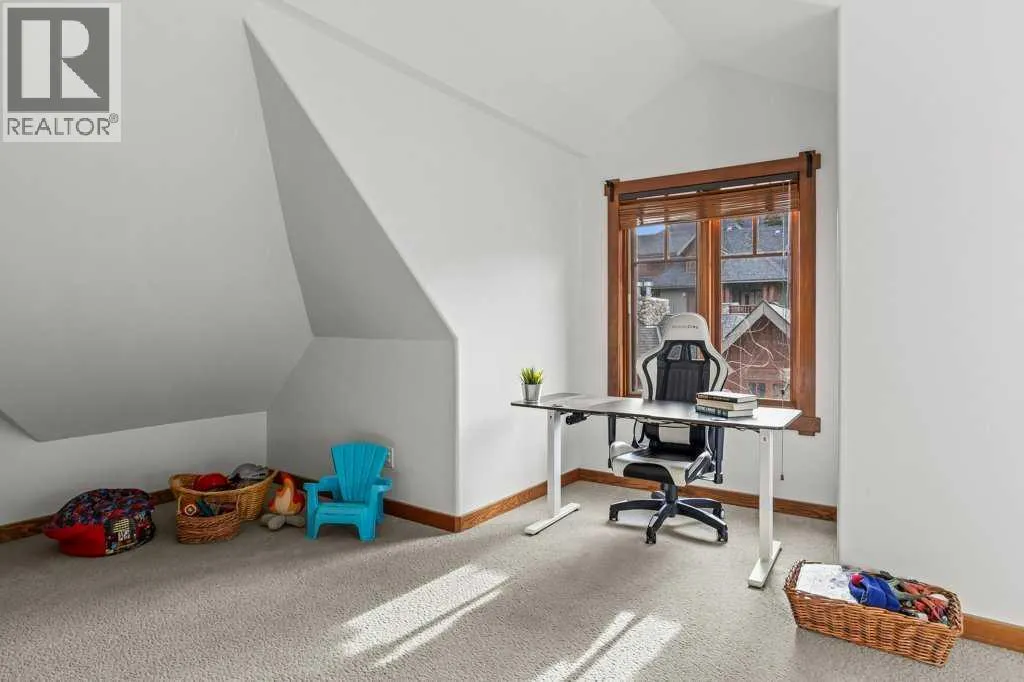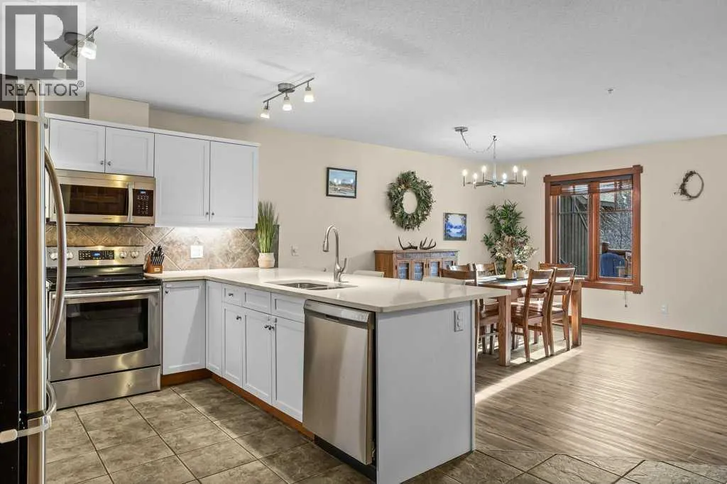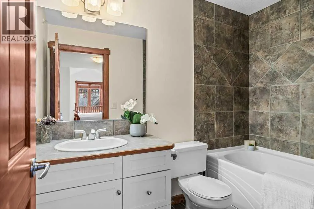 Direct views of the iconic Three Sisters mountains from every SW facing window from this top floor penthouse! Enjoy the expansive 1,348 sq.ft. living space spread across multiple levels, providing privacy and comfort for families or entertaining guests. The large kitchen / dining / living area is larger than most apartment or townhouse style properties in Canmore at the affordable end of the market creating a great place to relax and enjoy your time with others. There have been thoughtful and bright upgrades to the flooring, quartz kitchen counter top, and cabinets throughout giving it a warm mountain feel with a modern touch. The 2 large bedrooms upstairs have attractive ceiling lines, solid wood doors throughout and versatile layouts that allow for extra furniture like a sofa, work station, kids play area etc⦠A popular feature are the 2 titled parking stalls that come with the unit and a storage locker located at the end of the indoor parking stall. Crossbow has one of the best clubhouses in any building in Canmore with features you will not find elsewhere including: 2 hot tubs (one indoor and one outdoor), dry sauna, a sizable and well equipped gym, 2 pool tables, a ping pong table and lounge area / library. The Three Sisters area is a gateway to endless activities, including direct access to an extensive network of forest trails, from leisurely strolls along the Bow River Pathway to challenging scrambles up Ha Ling Peak. Explore the Three Sisters Pathway, enjoy kayaking or paddle boarding on Quarry Lake, disc golf, or cross-country skiing at the Canmore Nordic Centre. Crossbow is ideally located just a few steps away from the Bow River where you can catch the evening sun setting over Rundle Mountain or try your hand at fishing just out your door. The Three Sisters community is growing, with future plans for retail, office, and restaurant spaces at "The Gateway," including an IGA grocery store. Canmore's charming downtown is just a short drive or bike ride away . (id:27476)