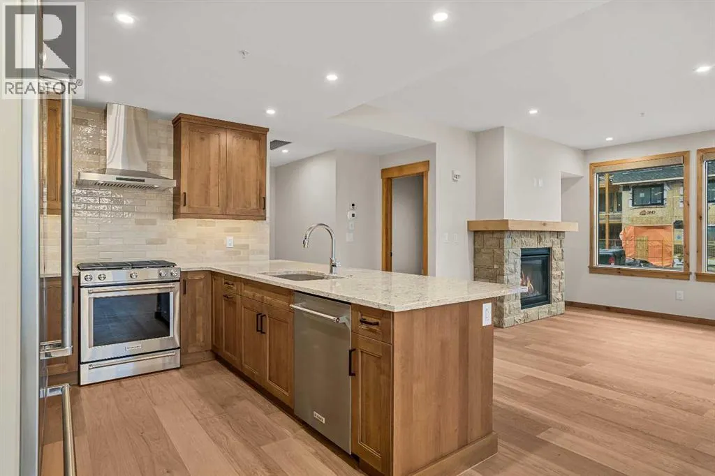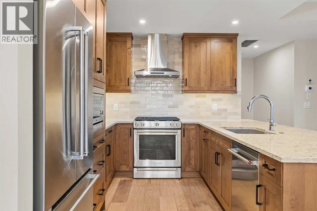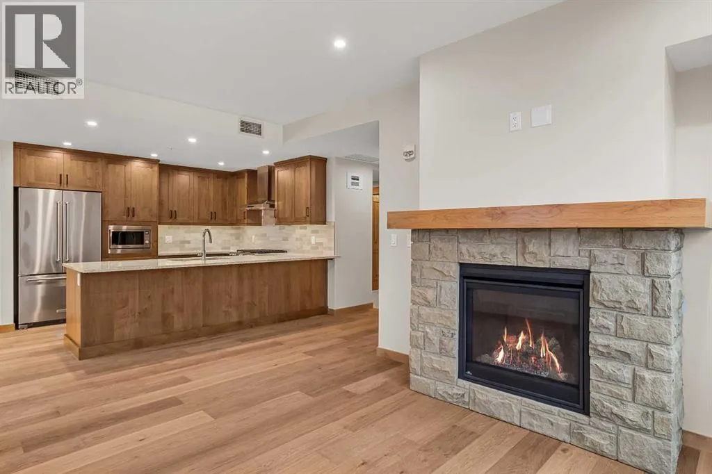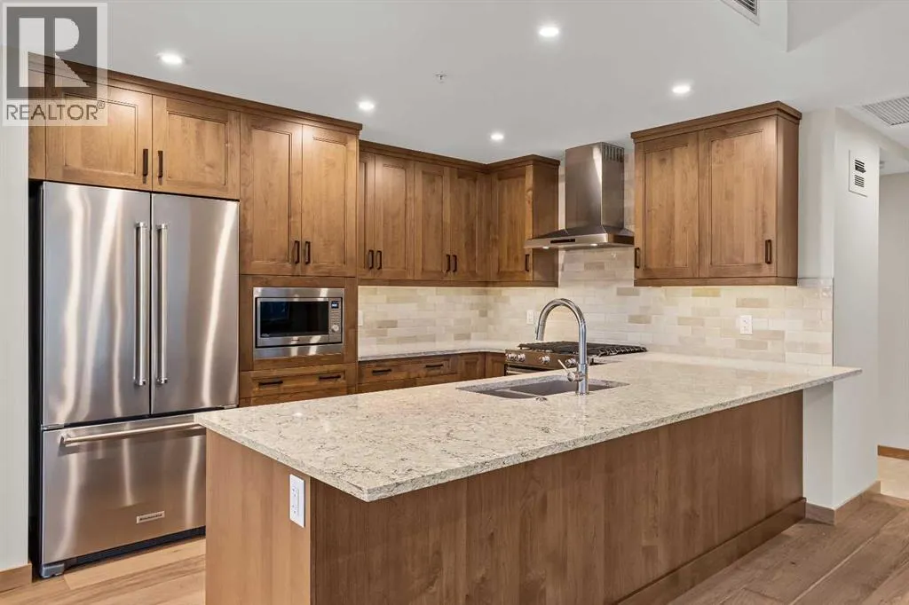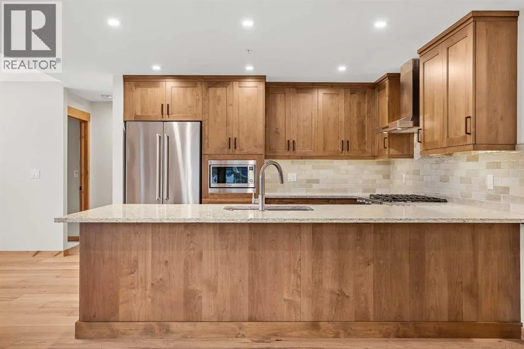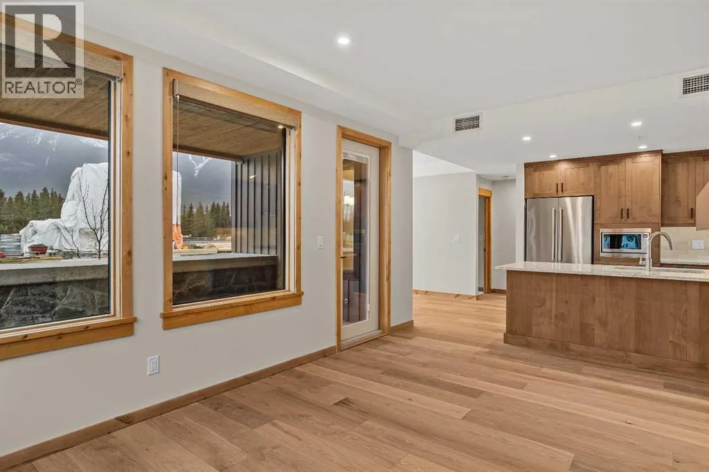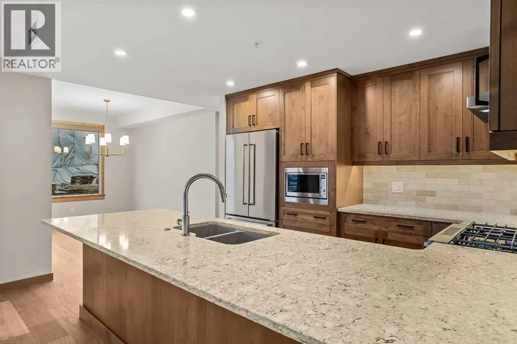Brand New and Never Lived In! Welcome to Black Swift Lodge, the newest luxury development in Spring Creek, Canmore. This corner unit offers 1,584 sq. ft. of refined mountain living with spectacular south-facing views of the Three Sisters.Featuring 3 bedrooms plus a den and 3 bathrooms, this residence combines contemporary design with high-quality craftsmanship. The open-concept living area is filled with natural light and showcases a gourmet kitchen with quartz countertops, premium appliances, and custom cabinetry â perfect for both entertaining and everyday living.The primary suite includes a spa-inspired ensuite and walk-in closet, while two additional bedrooms and a versatile den provide ample space for family, guests, or a home office. Enjoy sunshine and mountain vistas from your private patio all day long.This home has never been occupied, and GST has already been paid. As part of a brand-new building, the buyer receives full Alberta New Home Warranty coverage for added peace of mind. Additional features include underground parking, secure storage, and walkable access to Spring Creekâs shops, restaurants, trails, and downtown Canmore. (id:27476)