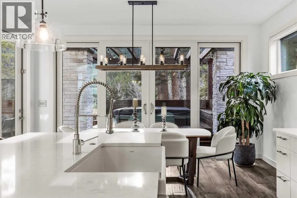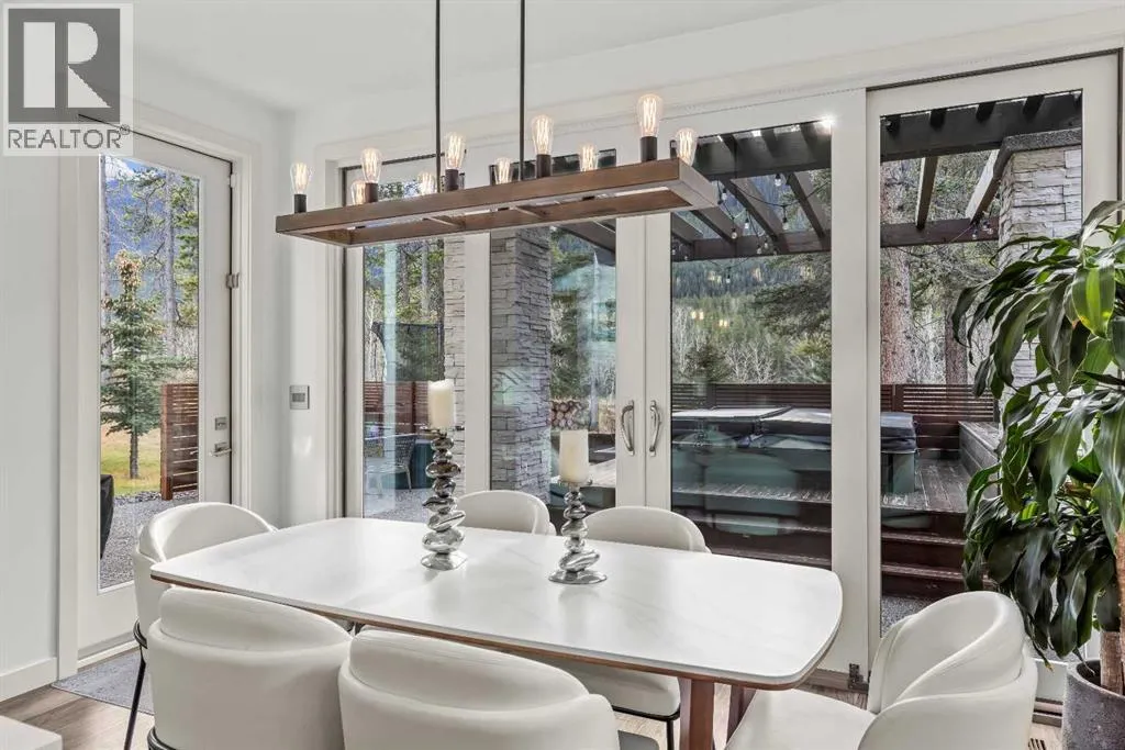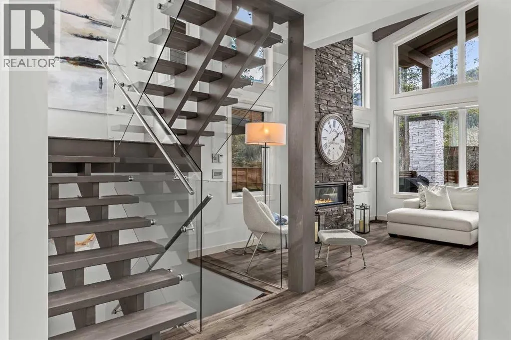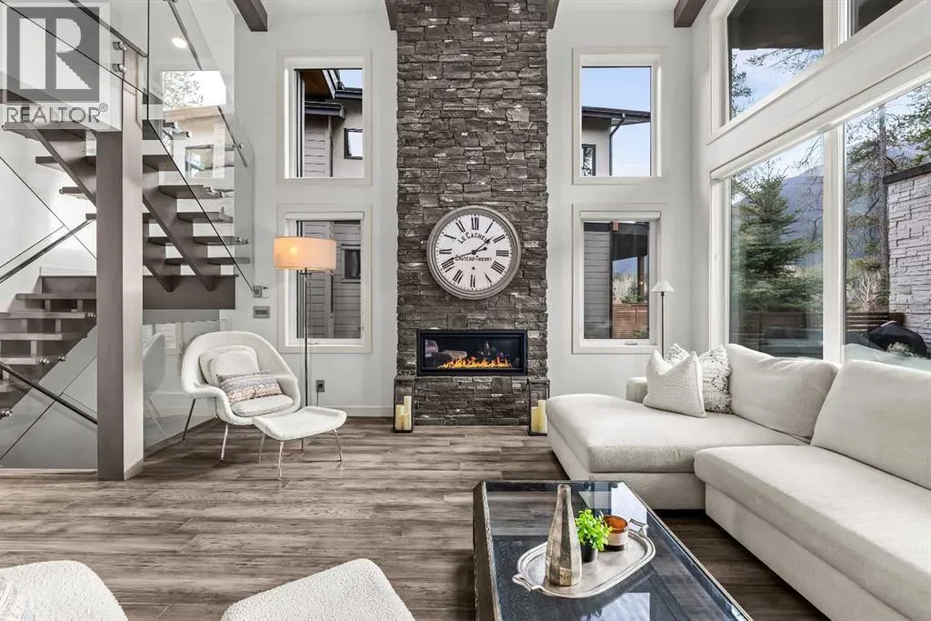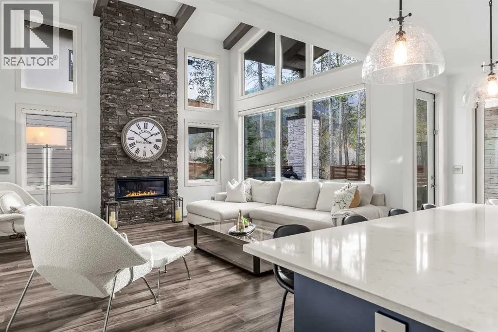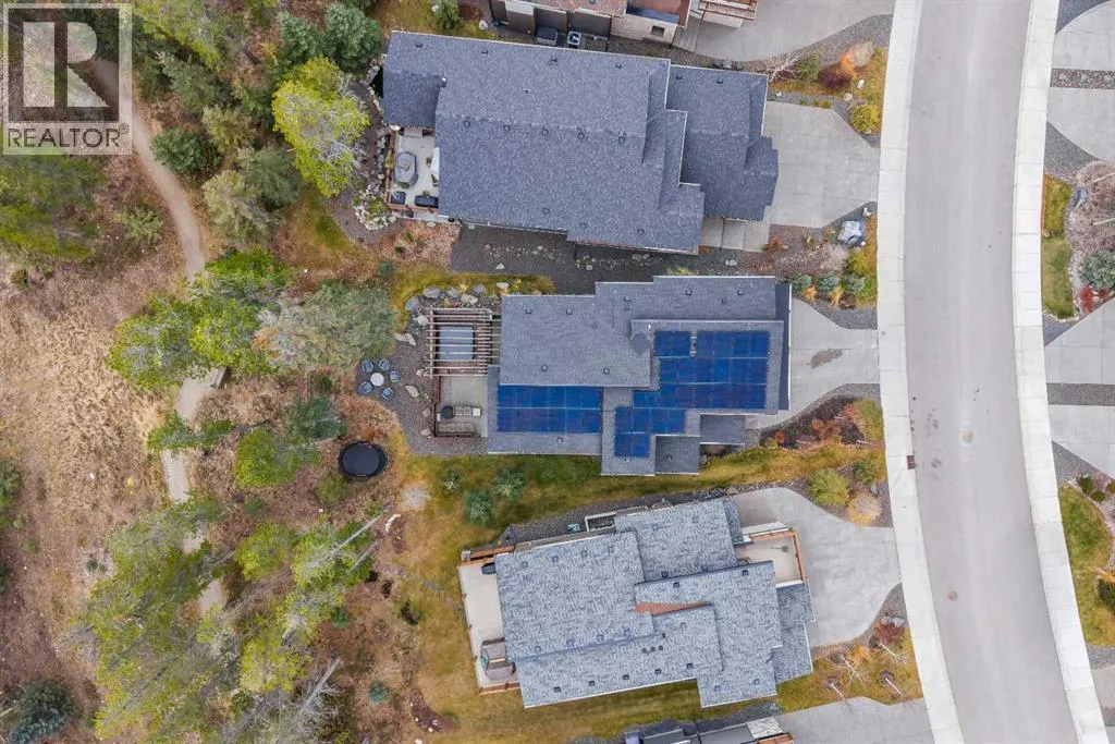 Mountain-Modern Living on the 10th Hole of Stewart Creek Golf Course! Welcome to a rare offering in one of Three Sistersâ most peaceful and private enclaves .A stunning mountain-modern single family home backing directly onto the 10th hole at Stewart Creek Golf Course. Thoughtfully designed with function, style, and environmental consciousness, this 4-bed, 4-bath residence offers over 3,500 sq ft of refined living with beautiful natural light, warm timber accents, and a true connection to the surrounding landscape. Natural timber beams, soaring ceilings, and expansive windows create an inviting alpine aesthetic while framing select views of the golf course and mountains. Enjoy an unobstructed and private backdrop, creating a sense of calm and separation rarely found. A commitment to sustainability and safety elevates this home beyond the ordinary. Featuring solar panels for energy efficiency and Fire-Smart roof sprinklers, the property is designed for both modern living and long-term peace of mind. Inside, the open-concept main level seamlessly blends the chef-inspired kitchen, dining space, and living room, creating a bright and functional hub ideal for gatherings and everyday life.Your private backyard retreat completes the experience. A sunken hot tub, built-in fire pit, underground irrigation system, and thoughtfully landscaped yard offer a peaceful place to unwind after a day on the trails or the golf course. This is true mountain serenity â quiet, sheltered, and designed for year-round enjoyment. (id:27476)