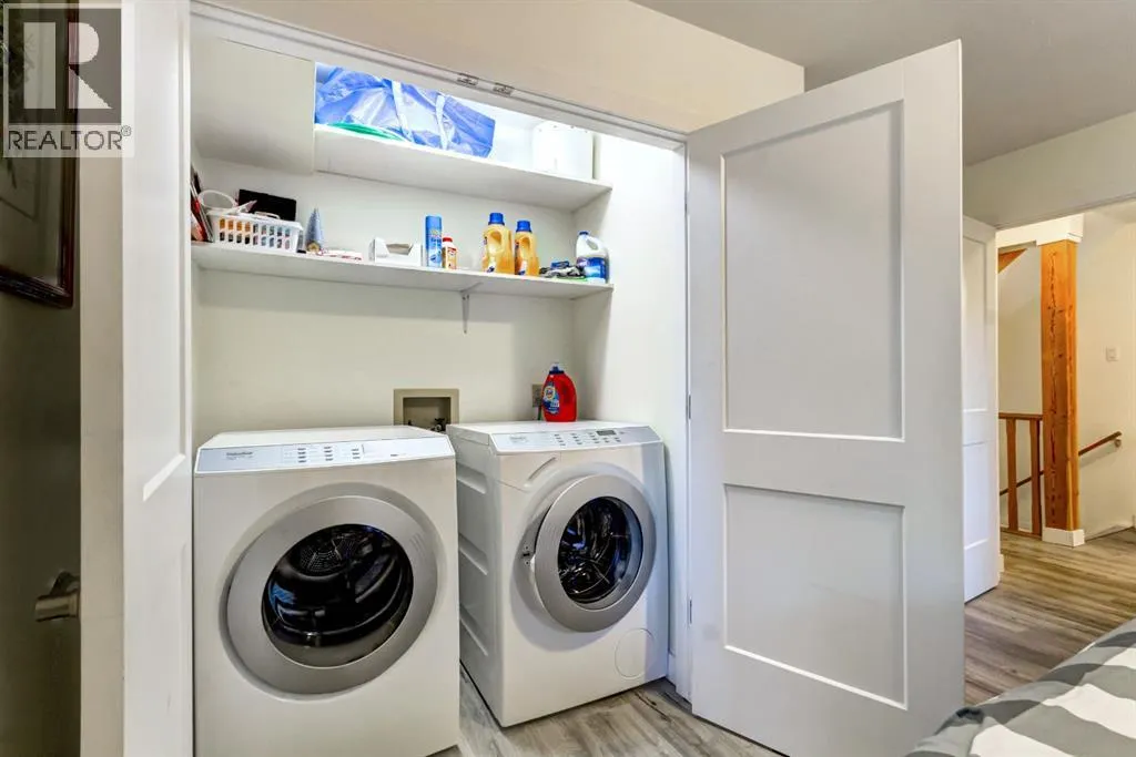 Single family home in the heart of Rundleview. Situated in one of Canmoreâs most sought-after neighbourhoods, this beautifully updated home offers four bedrooms, three bathrooms. A welcoming foyer leads into a bright, open kitchen that flows seamlessly into the dining room, where a wall of oversized windows brings in natural light and opens onto a generous outdoor deck. The inviting living room features a cozy fireplace, this level also includes a convenient bedroom and full bathroom - ideal for guests or home office needs. Upstairs, the primary suite is complemented by an additional bedroom, full bathroom and ample storage options. The fully developed lower level includes its own kitchen, creating the perfect setup for guests or roommates. The attached garage features a single door with the footprint of a double. Set on a spacious, private lot, this home blends character, comfort and practicality. With immediate access to world-class outdoor recreation - including the Canmore Nordic Centre and Quarry Lake. (id:27476)