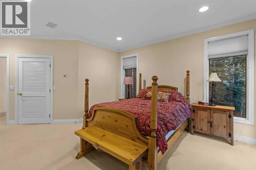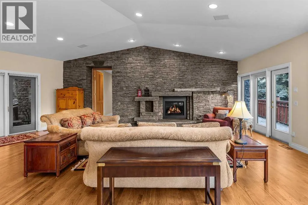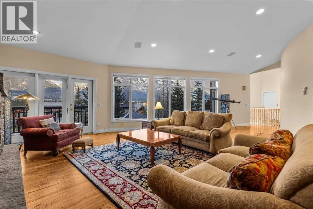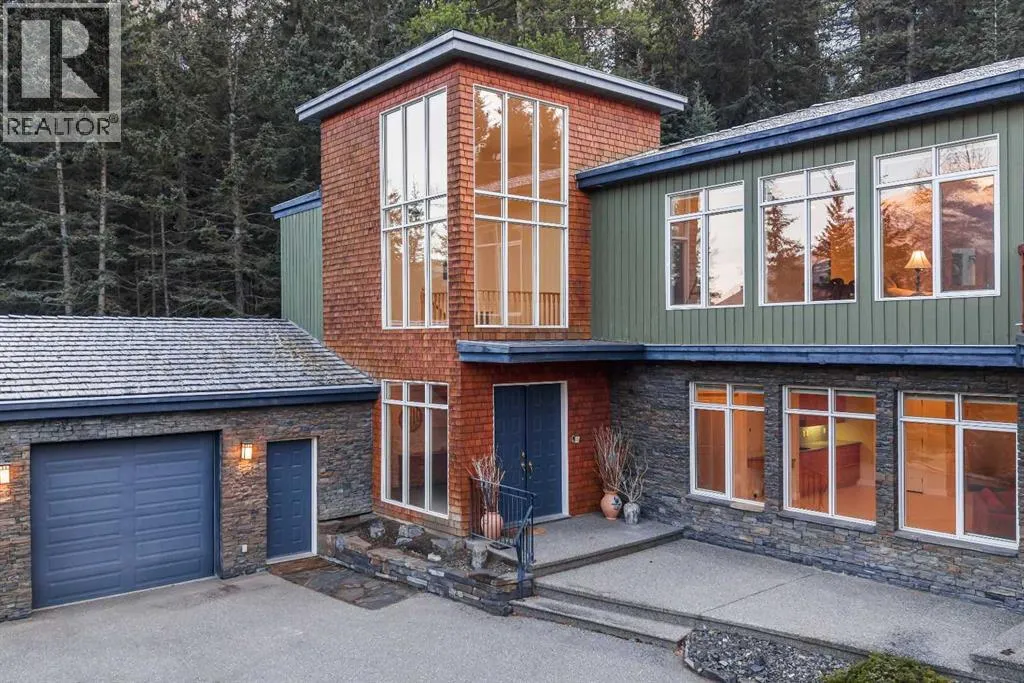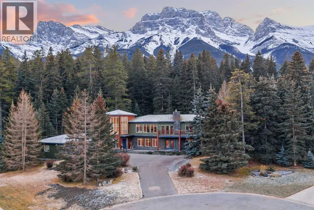 Set in one of Canmoreâs premier neighbourhoods, this custom-built Prospect residence captures panoramic mountain views from its elevated perch. Crafted for both everyday living and effortless entertaining, the homeâs main level brings together the kitchen, dining area, great room, and primary suite in a seamless layout that can be reached directly from the front entry or the triple-car garage via a private elevator.Resting on an impressive 21,786 sq ft lot, the property rises gently above the road and borders a natural forested slope, allowing the home to take full advantage of its stunning alpine backdrop. A selection of thoughtfully placed outdoor spaces lets you follow the sun and enjoy the changing seasons year-round.The lower level welcomes family and guests with a spacious family room and three well-appointed bedrooms. Upstairs, an additional guest roomâor a comfortable home officeâadds flexibility to the 4,341 sq ft floor plan. Timeless mountain-inspired finishes, including a striking Rundle stone fireplace, lend warmth and sophistication throughout.With Main Street just a short stroll away along the Bow River pathway, this remarkable home pairs mountain living with unbeatable convenience. (id:27476)