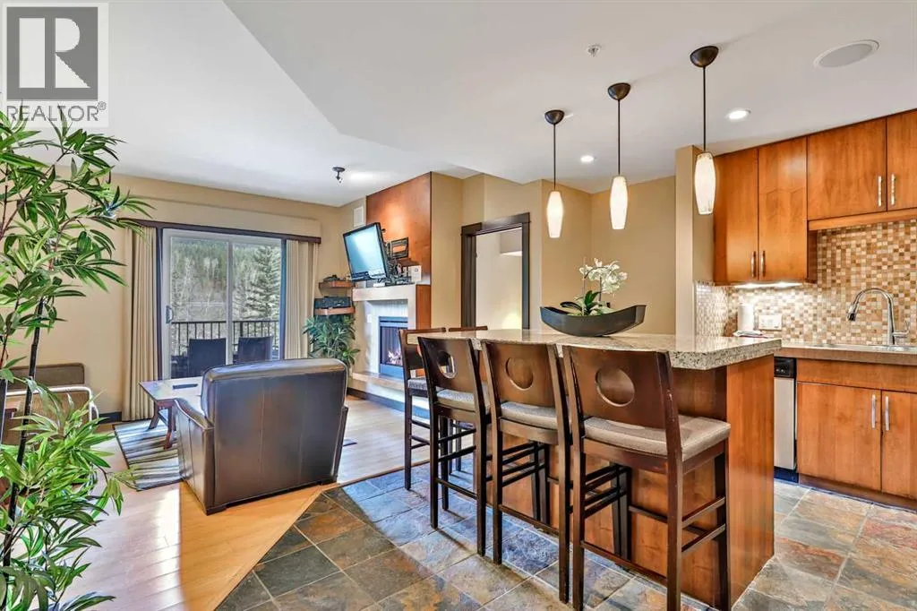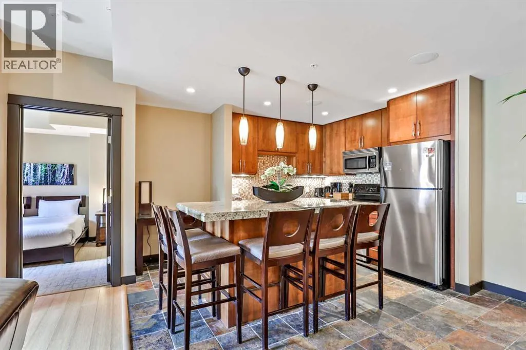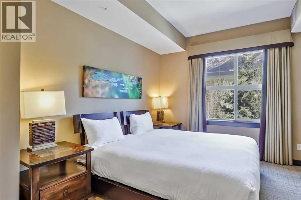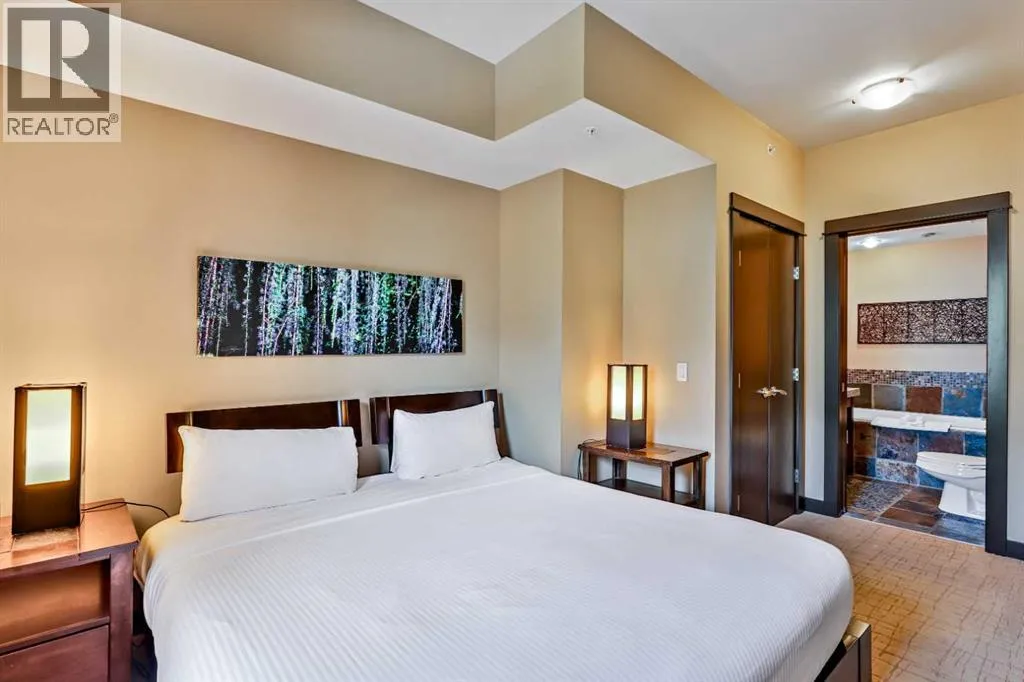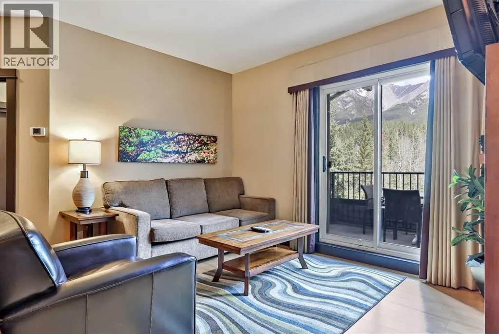 Prepare to be absolutely captivated by the unobstructed, panoramic mountain views from this top-floor, penthouse-style retreat in Canmore. Offering 12 WEEKS of ownership, this fractional property gives you the rare opportunity to enjoy one full week every month in the Rockiesâwithout the year-round commitment. And if you canât make it for any of your allotted weeks, simply place your time in the rental pool and earn revenue, making this both a lifestyle haven and a smart investment.Silver Creek Lodge delivers a boutique mountain experience with an impressive lineup of amenities: two outdoor hot tubs, a soothing sauna, fitness centre, private spa, and an on-site restaurant, all just a short walk from Main Street, cafes, shops, and miles of scenic pathways. Inside, the suite offers a thoughtful and spacious layout with two bedrooms, each paired with its own private ensuite, allowing the unit to comfortably sleep six when using the pull-out sofa. Both bedrooms enjoy their own stunning mountain views, creating a tranquil backdrop from the moment you wake. A fully equipped kitchen makes it easy to prepare meals after a day of adventure, while the inviting living roomâcomplete with a cozy gas fireplaceâsets the stage for warm, relaxing evenings. A mountain modern zen vibe with bamboo and slate floors and granite courntertops. The true showpiece, is the expansive penthouse balcony. Perched above the forest canopy and facing the dramatic Fairholme Mountain Range, this outdoor sanctuary offers incredible morning light, peaceful privacy, and unforgettable sunsets. Whether you're sipping coffee, sharing a glass of wine, or simply taking in the stillness of the peaks, this is a space that elevates every moment. A luxurious mountain escape with unbeatable views. PRICE GST INCLUSIVE - TALK TO YOUR TAX PROFESSIONAL ON HOW TO DEFER. (id:27476)