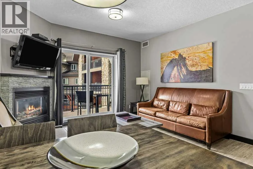 This 2-bedroom, 2-bath condo offers an efficient 692 sq. ft. layout and stunning mountain views of the iconic Three Sisters. Located in the desirable Grande Resort, youâll love the easy walk to downtown shops, the river, and an extensive network of biking and walking trails. After a day of adventure, unwind in the indoor/outdoor hot tub, enjoy the indoor pool with waterslide, or let the little ones splash in the kiddie pool. On-site amenities, including a restaurant, spa, and fitness room create a complete resort experience, perfect for owners and guests to rest and recharge. The cozy living space features a gas fireplace for relaxing evenings and a covered deck where you can take in unforgettable mountain sunsets. A rare opportunity, this unit shares a common foyer with its adjoining 1-bedroom neighbor (also available), allowing the potential to combine both into a 3-bedroom, 3-bath configuration. Zoned as a Tourist Home, the condo offers exceptional flexibility for short-term or long-term rentals, making it an ideal mountain retreat and investment. (id:27476)