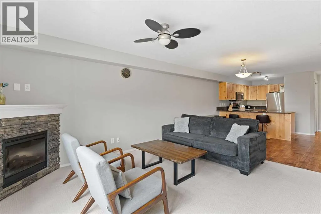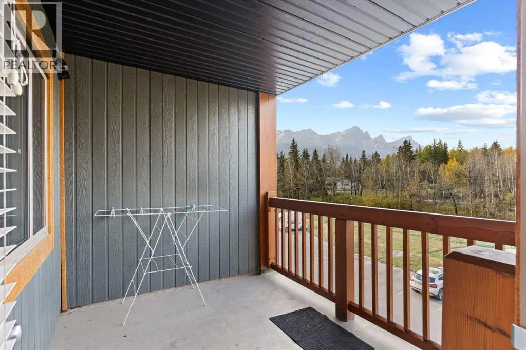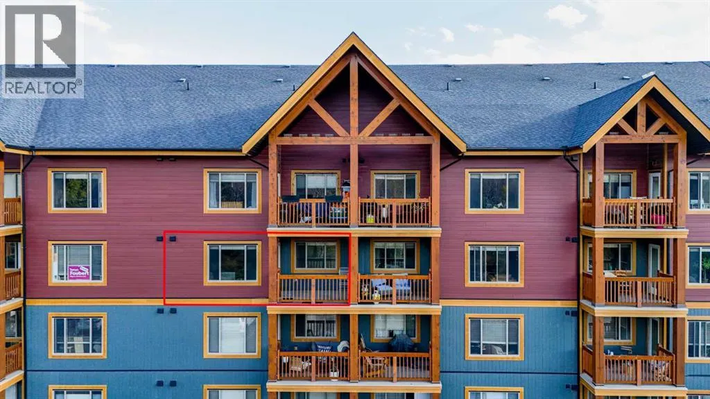 Wake up to uninterrupted mountain panoramas in this bright, refined 1-bedroom + den residence in Canmore. Elevated on the 3rd floor, the home is perfectly positioned to capture all-day natural light and sweeping Rocky Mountain views that frame every room. The gourmet kitchen, finished with granite countertops, seamlessly integrates with the dining and living areas, extending onto a private balcony where the mountains feel impossibly close. The primary bedroom enjoys the same breathtaking outlook, while the spacious den offers an ideal home office, reading room, or additional guest space. Convenience is unmatched with an outdoor parking stall steps from the entrance and an oversized 11' x 7' heated storage lockerâone of the largest in the building. The community enhances your lifestyle with a fully equipped fitness centre, childrenâs playground, dog park, and workshop, along with direct access to scenic trails that define the Canmore experience. Secure underground parking adds an extra layer of comfort, and residents enjoy exceptional amenities including a modern fitness facility, ski and snowboard tuning room, carpentry room, and a welcoming common lounge perfect for gatherings and celebrations. This is more than a homeâitâs a luxury vantage point to the Rockies and a gateway to the Canmore lifestyle. (id:27476)